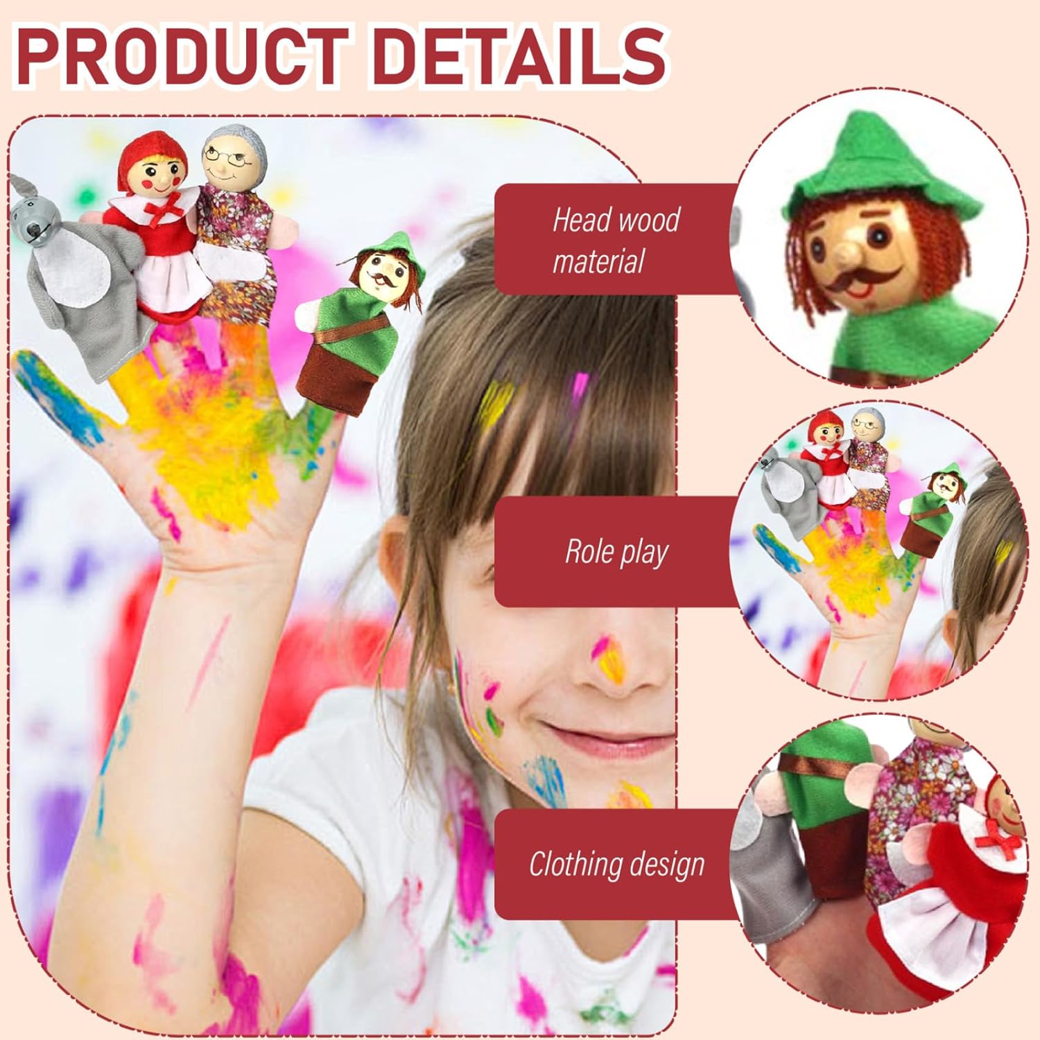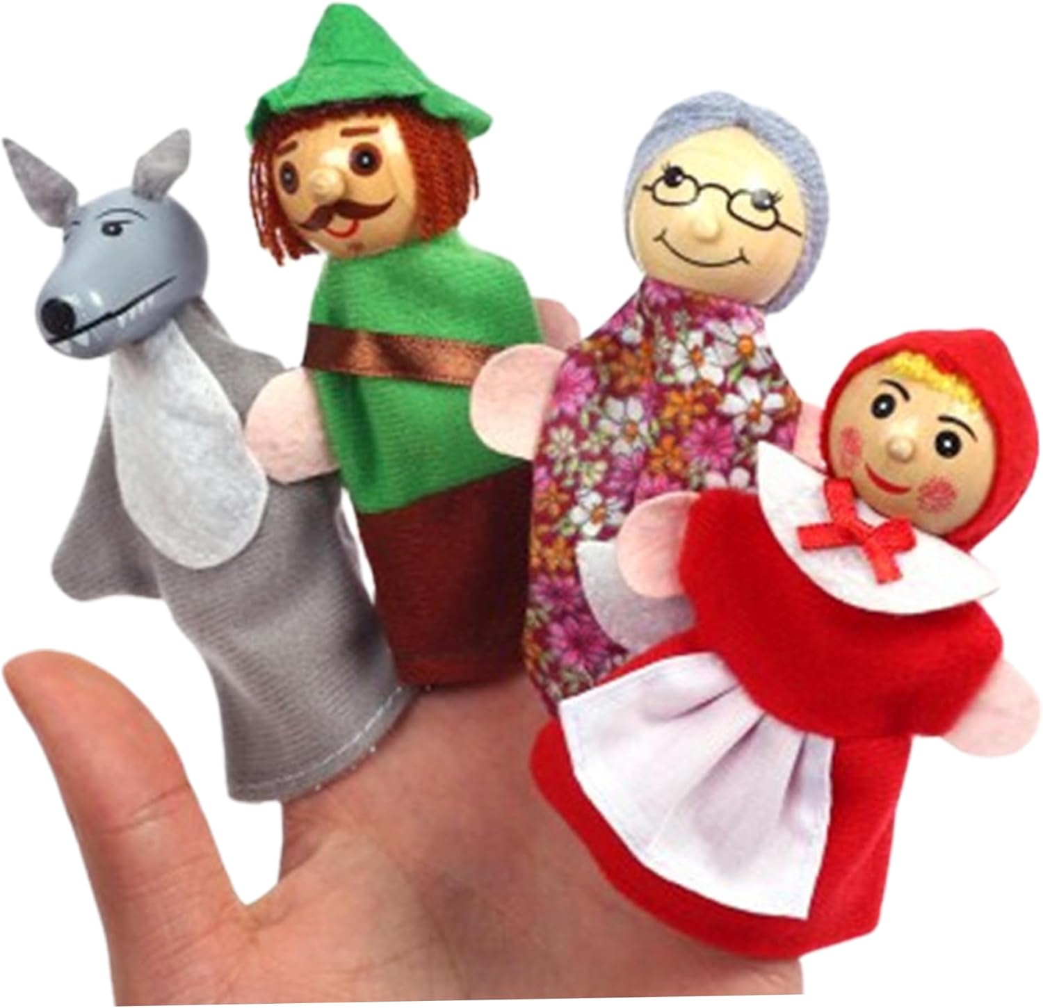 Dai vita al classico: con i personaggi di Cappuccetto Rosso, queste marionette permettono ai bambini di immergersi nelle storie classiche..Possono recitare ruoli, rendendo l'apprendimento divertente e sviluppando allo stesso tempo abilità linguistiche, comprensione ed espressione. Promuove lo sviluppo sociale ed emotivo: il gioco di ruolo con le marionette favorisce le abilità sociali e l'intelligenza emotiva..I bambini imparano a comunicare, lavorare insieme ed esprimere i propri sentimenti mentre impegnano in giochi fantasiosi con amici o familiari. Perfetto per i più piccoli: queste marionette da mano sono perfette per compleanni, vacanze o qualsiasi occasione speciale..Sono adatti a neonati e bambini piccoli e offrono ore di intrattenimento e valore educativo. Divertimento narrativo interattivo: queste marionette da 4 pezzi/set incoraggiano la narrazione interattiva, rendendolo uno strumento ideale per i bambini per ricostruire il loro preferito..Perfetti per i legami familiari o gli ambienti educativi, questi pupazzi stimolano la creatività e l'immaginazione. Materiali affidabili e sicuri: realizzati con materiali morbidi e sicuri, questi pupazzi sono durevoli e progettati per resistere ore di gioco..I genitori possono sentirsi sicuri che i loro figli giocano con giocattoli sicuri e a misura di bambino.
