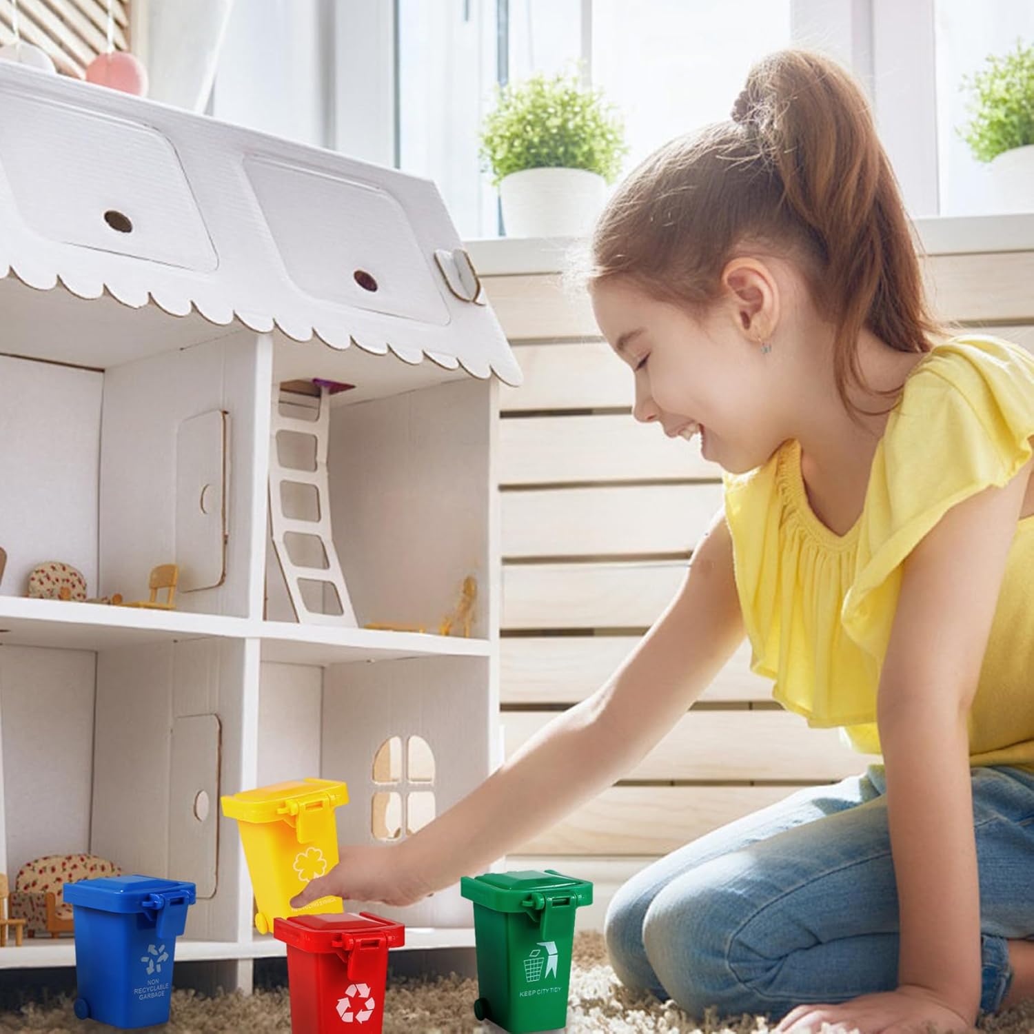 Perfetto per il gioco interattivo: questi mini bidoni della spazzatura sono perfetti per giochi di ruolo e attività di gruppo, consentendo ai bambini di esercitarsi nella raccolta differenziata dei rifiuti divertendosi..Possono essere utilizzati in classe, a casa o durante le giornate di gioco all'aperto. Design luminoso e colorato: questo set include quattro mini bidoni della spazzatura in blu, verde, rosso e giallo, che rendono lo smistamento divertente e coinvolgente..I colori vivaci catturano l'attenzione dei bambini e incoraggiano la partecipazione alle attività di riciclaggio. Materiale sicuro e durevole: realizzati in plastica ABS di sicurezza, questi mini contenitori per il riciclaggio sono robusti e sicuri per far giocare i bambini..La loro struttura resistente garantisce che possano resistere a un uso regolare pur rimanendo uno strumento educativo divertente. Ottima idea: questo mini set di bidoni della spazzatura è eccellente per compleanni, vacanze o occasioni speciali..Promuove la creatività, il lavoro di squadra e la consapevolezza ambientale, rendendolo un'aggiunta premurosa alla collezione di giocattoli di ogni bambino. Giocattolo educativo e didattico: progettati per insegnare ai bambini la raccolta differenziata e il riciclaggio dei rifiuti, questi mini contenitori aiutano a sviluppare la loro comprensione della responsabilità ambientale..Rendono l'apprendimento della gestione dei rifiuti divertente e interattivo.