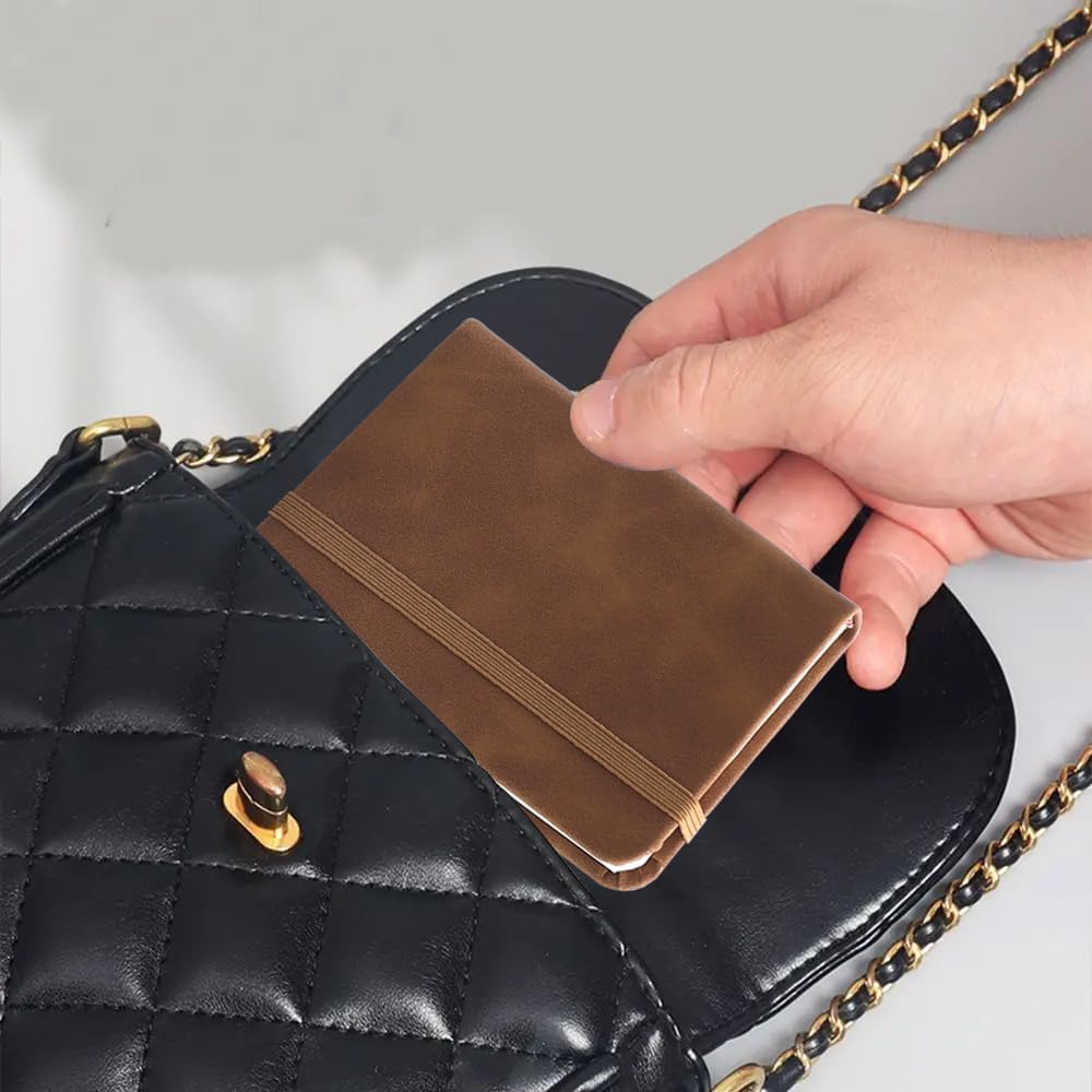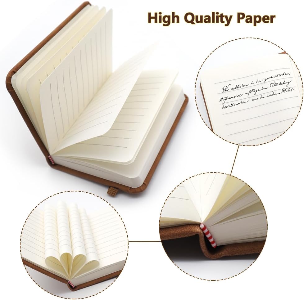 【Contenuto della confezione】Riceverai 4 quaderni piccoli, 2 neri, 1 marrone e 1 grigio. Ha una dimensione di 11x8 cm e occupa poco spazio. Può essere messo in una tasca o nel portafoglio e portato con te 【Alta qualità】Quaderno realizzato in pelle artificiale e carta Dowling, la carta è spessa e liscia, la scrittura è liscia, l'inchiostro non è facile da penetrare e ci sono 100 pagine fronte-retro che possono essere scritte 【Stile classico】Piccolo taccuino tascabile con copertina in pelle vegana, semplice e generoso, stile con copertina rigida di fascia alta. Adatto a casa, ufficio, scuola, viaggi, ecc. 【Multifunzionale】Il taccuino tascabile può essere utilizzato quotidianamente diario, diario di viaggio, quaderno, blocco note, diario di scrittura personale, ecc. L'elastico elastico assicura che la carta all'interno non venga spiegazzata o rotta a causa di detriti.,Regali pratici: il raffinato taccuino in pelle può essere usato come regalo per la tua famiglia, amici o colleghi. Adatto a studenti, adulti, viaggiatori, a casa o a scuola