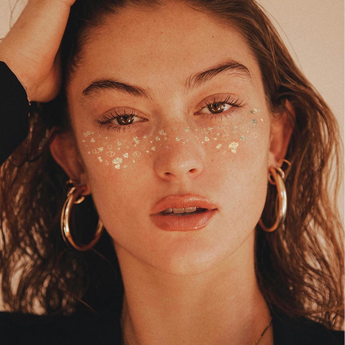 Descrizione prodotto Lentiggini glitterate per il viso: i nostri cerotti glitterati sono progettati per tutti i tipi di pelle per fornire un bagliore sottile ma luminoso. Scatena il tuo splendore interiore con i nostri scintillanti patch per il trucco. Queste macchie glitterate sono perfette per aggiungere un tocco di brillantezza a qualsiasi look,da tutti i giorni alle occasioni speciali. Facile da usare: applica la nostra maschera glitterata con facilità. Staccare la carta trasparente e posizionare il lato adesivo sulla pelle; Picchiettare delicatamente l'intero cerotto con una spugna o un asciugamano umido; Dopo 20-30 secondi,rimuovere delicatamente la carta di supporto; Aspetta che si asciughi e vedi le lentiggini glitterate naturali dopo qualche minuto. Come rimuovere le lentiggini finte: questi cerotti glitterati possono essere rimossi con un detergente a base di olio come struccante,olio per bambini o alcol,e poi asciugati delicatamente,facendo attenzione a non bagnare il viso prima di applicare lo struccante. Cerotti per il trucco glitterati: Ottieni un bagliore naturale con i nostri cerotti glitterati facili da usare. Queste lentiggini si fondono perfettamente con la carnagione e sono resistenti,il che le rende perfette per rimanere impeccabili in situazioni come sudare,nuotare e altro ancora. Distinguiti a feste ed eventi con la nostra vasta gamma di accessori per il trucco glitterati. Tatuaggi multifunzionali per il viso glitterati: aggiungi un tocco di glamour alla tua routine di trucco con i nostri cerotti glitter cosmetici. Queste lentiggini per il trucco sono perfette per feste di trucco,compleanni,serate tra ragazze,fine settimana in spiaggia,addii al nubilato o feste di matrimonio. Perfetto per bordo piscina,vacanze,festival,compleanni o come parte del tuo outfit! Indicazioni Applicare la nostra maschera scintillante con facilità. Staccare la carta trasparente e posizionare il lato appiccicoso sulla pelle; toccare delicatamente l'intera toppa con una spugna o un asciugamano umido; dopo 20-30 secondi, rimuovere delicatamente la carta di supporto; attendere che si asciughi e vedere le lentiggini naturali dopo pochi minuti. Queste macchie scintillanti possono essere rimosse con un detergente a base di olio come struccante, olio per bambini o alcool, quindi asciugate delicatamente, facendo attenzione a non bagnare il viso prima di applicare lo struccante.