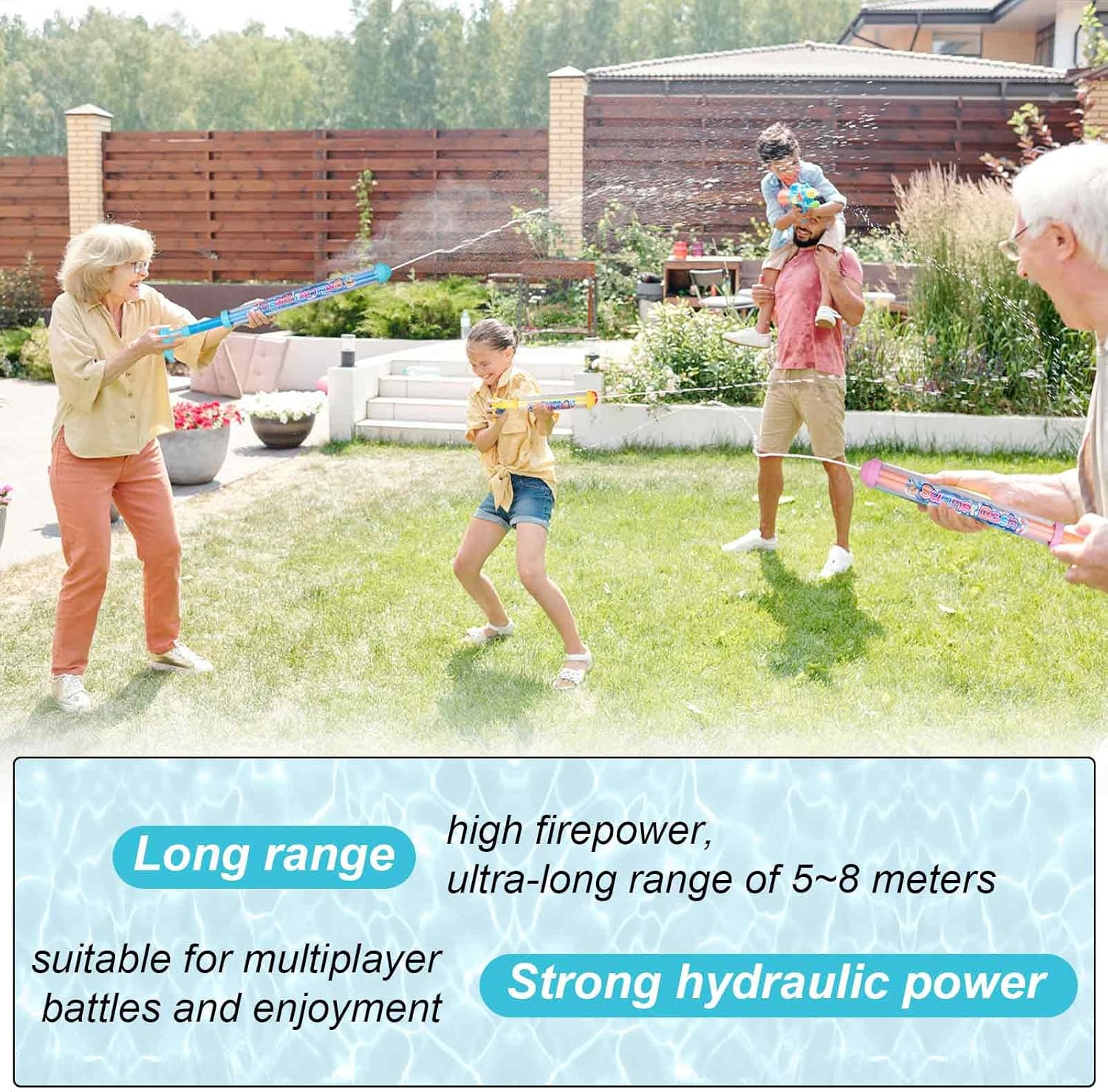 Splendidi effetti pirotecnici combinati con l'acqua: crea una cortina d'acqua con forme pirotecniche mozzafiato, perfetta per catturare momenti magici, scattare foto o portare gioia e sorpresa! Facile da usare e veloce da riempire: Comodo ugello retrattile: basta immergere nell'acqua, pompare e spruzzare. Non servono batterie, il piacere è immediato! Serbatoio dell'acqua di grande capacità: non è necessario aggiungere costantemente acqua, per un gioco più lungo, ideale per vivaci battaglie acquatiche e avventure estive. Utilizzo versatile: sia all'interno che all'esterno, per una festa in piscina, una giornata in spiaggia, in campeggio o un servizio fotografico, questa pistola ad acqua garantisce momenti divertenti e ricordi indimenticabili! Il regalo ideale per adulti e bambini: robusto, leggero e sicuro, realizzato in plastica di alta qualità, è il regalo ideale per feste di compleanno per bambini, matrimoni o feste estive!