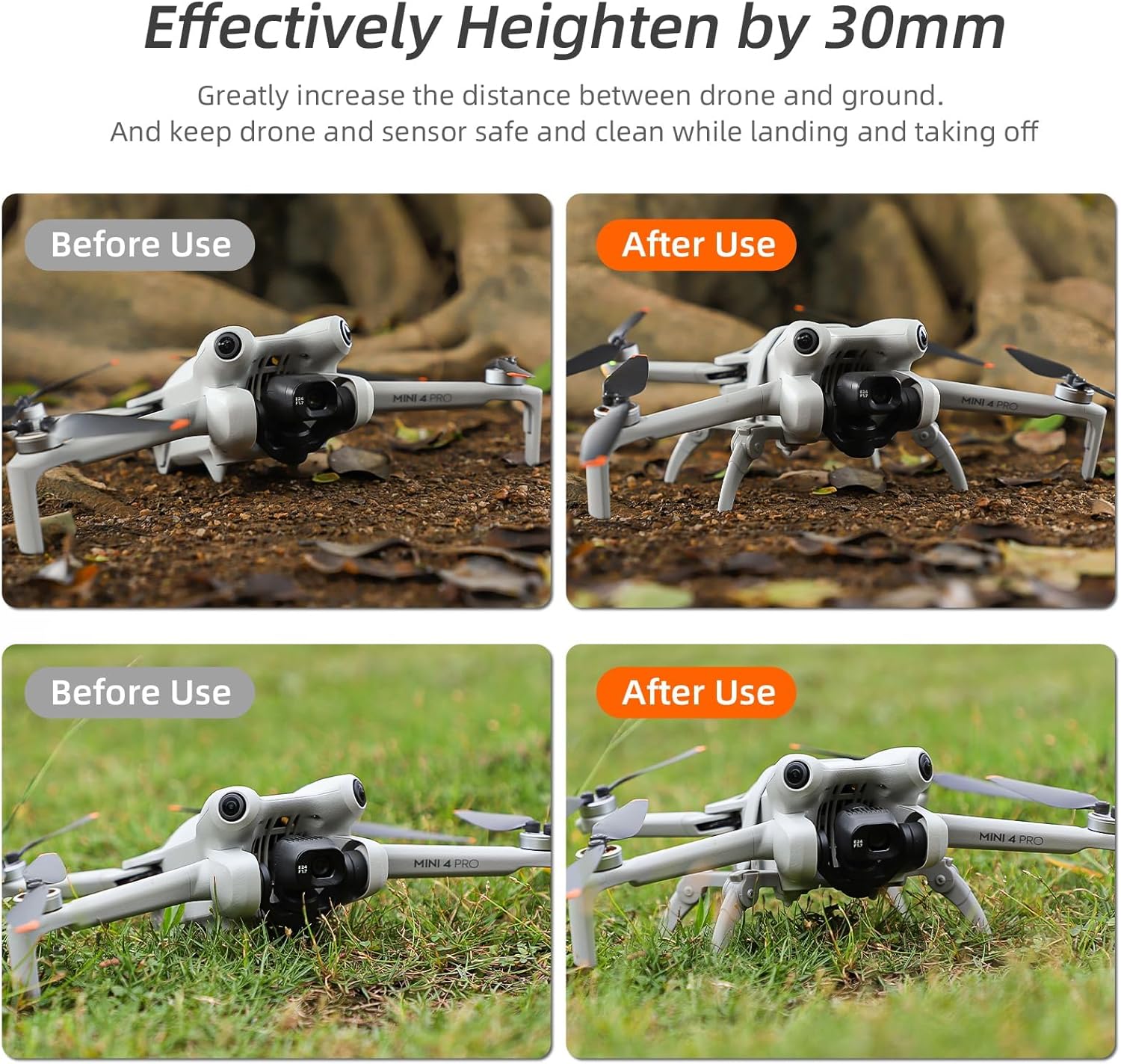 【Alzata efficace】 Il carrello di atterraggio 4 Pro alza efficacemente il drone 4 Pro di 30 mm. Aumenta notevolmente la distanza tra il drone 4 Pro e il terreno. Mantiene il drone 4 Pro sicuro e pulito durante l'atterraggio e il decollo. 【Leggero】Il peso dell'intero carrello di atterraggio 4 Pro è di soli 21 g/0,04 libbre, il design ultraleggero non aggiunge ulteriore peso ai voli del drone 4 Pro, mantenendolo stabile for lunghi tempi di volo 【Design pieghevole】 4 Pro con il design delle gambe pieghevoli del carrello di atterraggio non interferisce con la sostituzione della batteria 4 Pro, rimozione rapida, facile da installare, facile da riporre e può essere trasportato in giro 【Stampaggio preciso】Il gar di atterraggio è uno stampaggio preciso for 4 Pro. Gli accessori 4 Pro non bloccano il sistema di visione verso il basso, il sistema di rilevamento a infrarossi e la luce di riempimento 4 Pro carrello di atterraggio, 4 Pro gamba, 4 Pro accessori, 4 Pro
