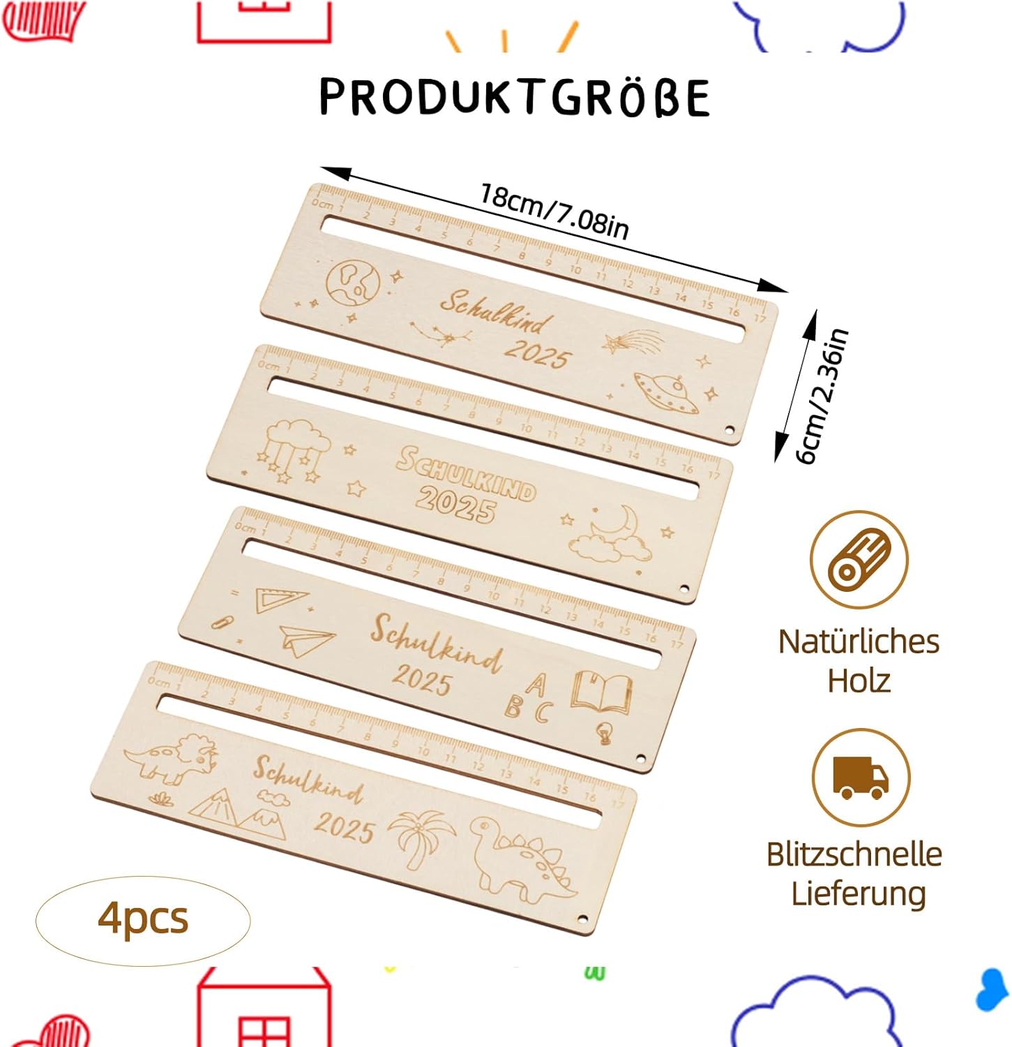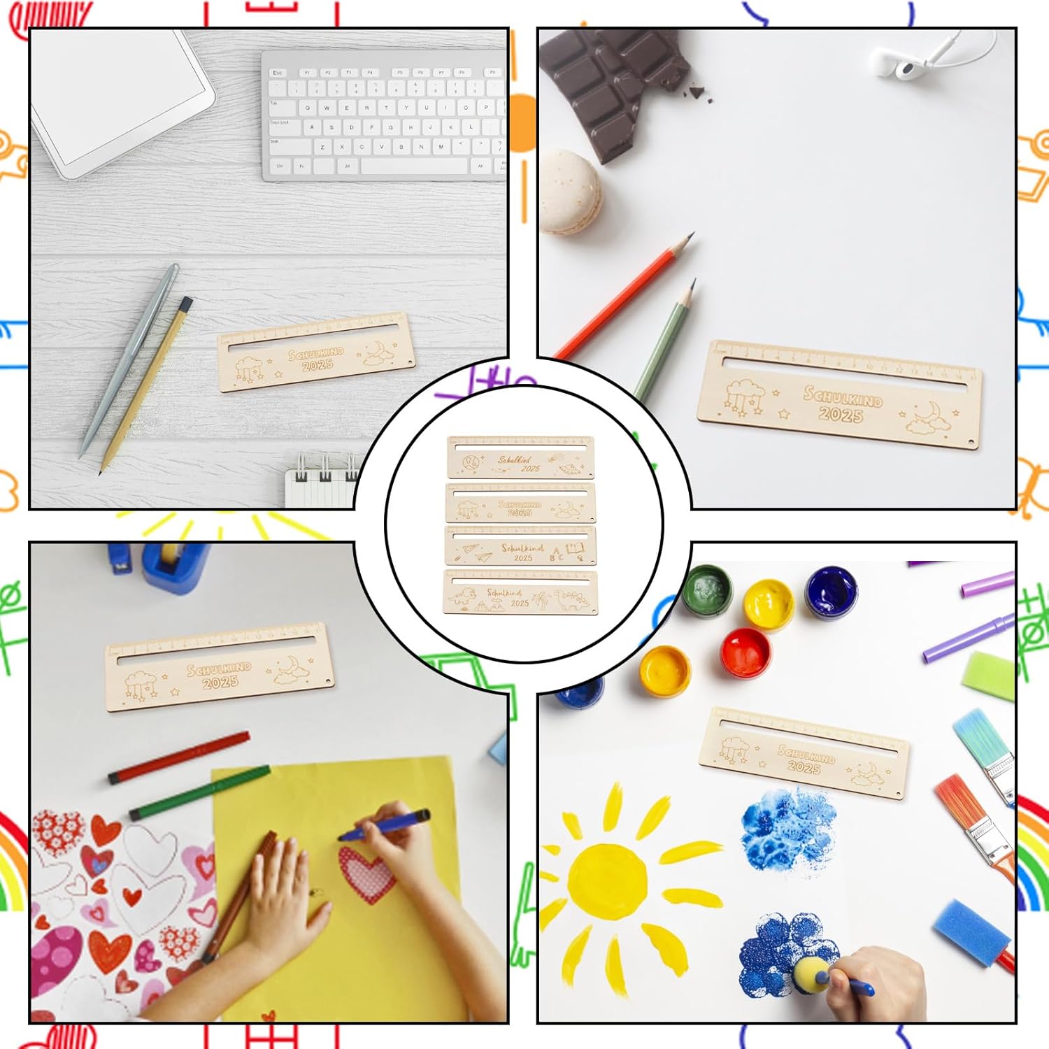 Righello Personalizza l'inizio della scuola: questo aiuto di lettura favorisce la concentrazione durante la lettura ed è ideale per bambini dai 5 agli 8 anni; il design personalizzato rende il righello un compagno di apprendimento unico Lettura Bambini 1 Classe: il righello aiuta i bambini a leggere riga per riga e quindi migliora la capacità di lettura; la marcatura chiara supporta l'orientamento e rende la lettura più facile Righello personalizzato per la scuola: un ottimo regalo per l'inizio della scuola, utile sia pratico che emotivo; il righello può essere personalizzato con nomi o motivi La confezione contiene: 18 cm x 6 cm, per bambini contiene quattro righelli, perfetti per l'uso a scuola o a casa; le dimensioni maneggevoli si adattano a qualsiasi astuccio Ideale per l'inizio della scuola e i compiti a casa: il righello è versatile e supporta i bambini nei primi passi a scuola; favorisce l'autonomia e rende l'apprendimento divertente