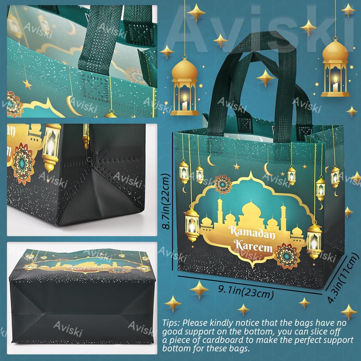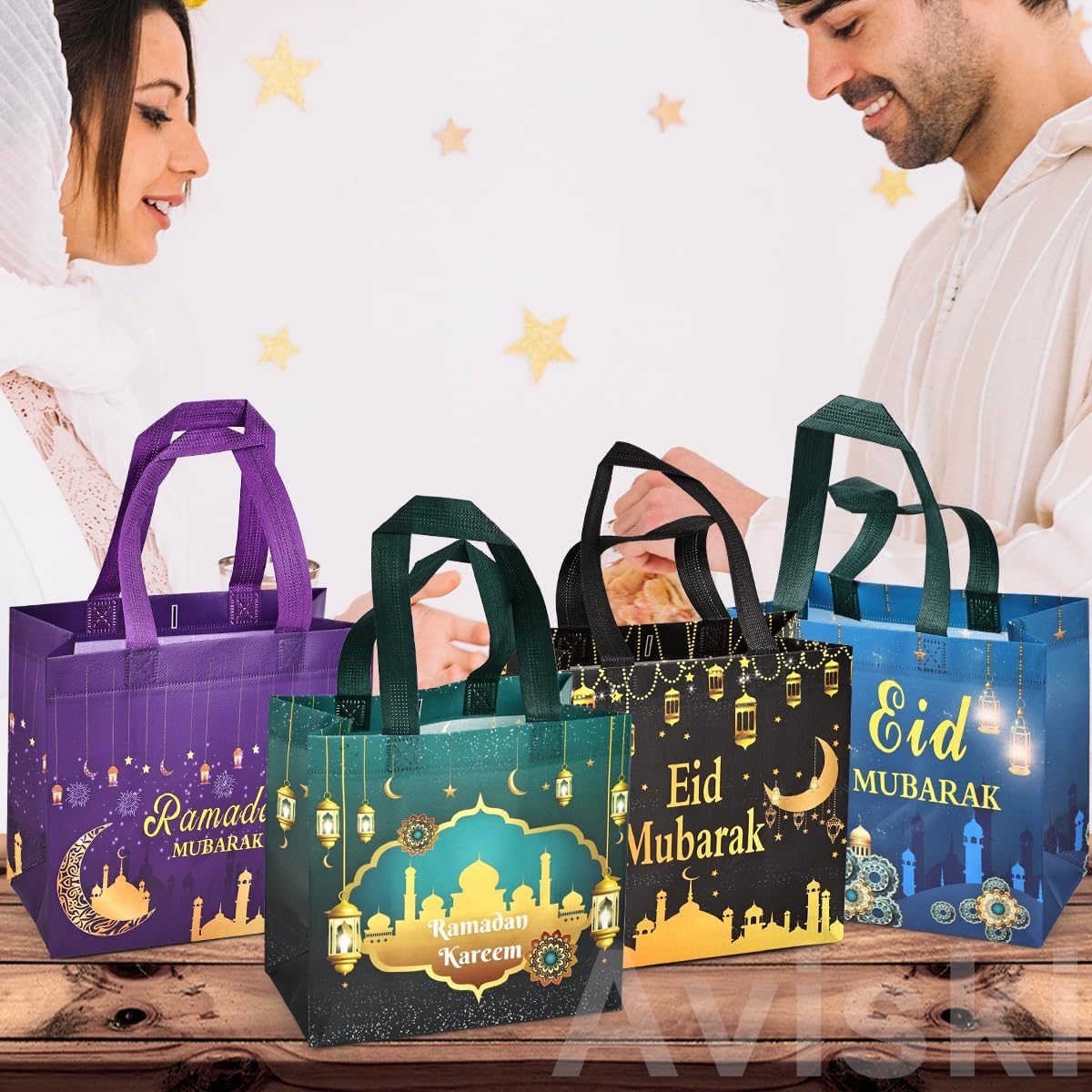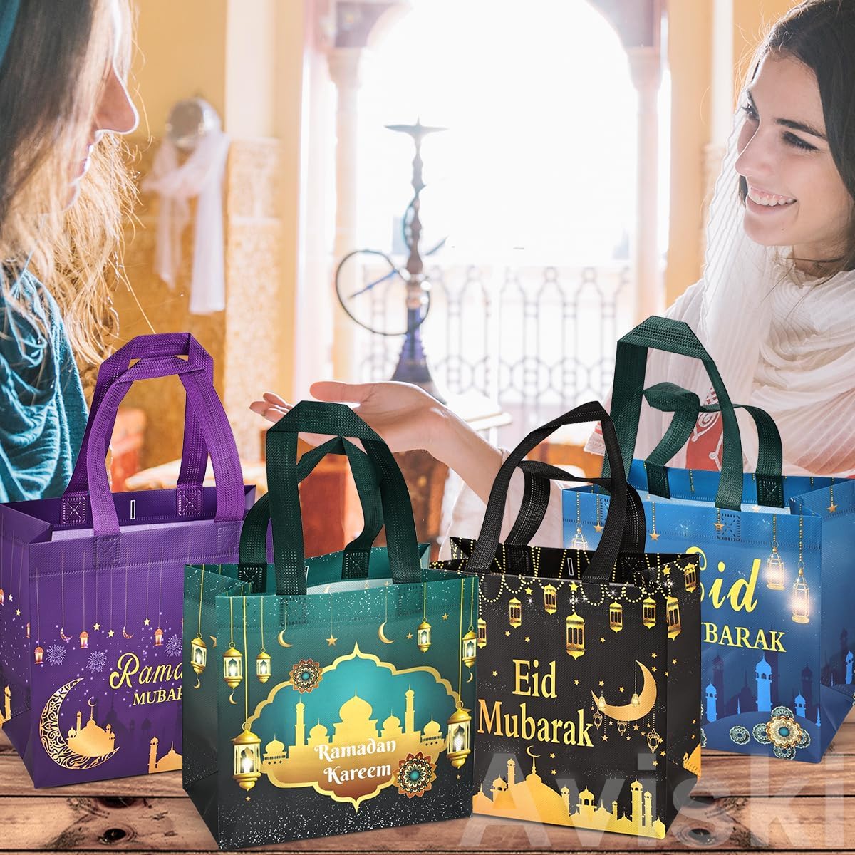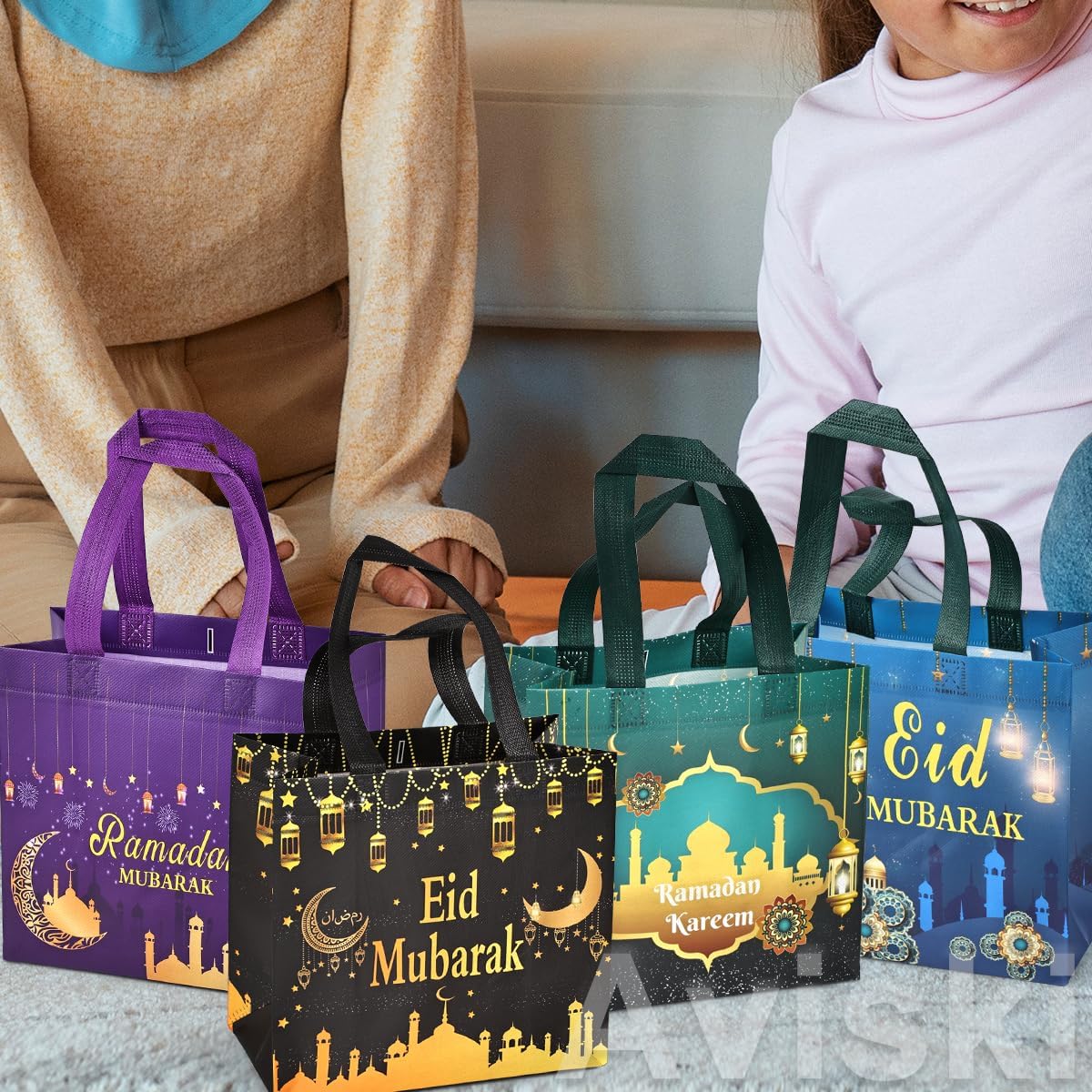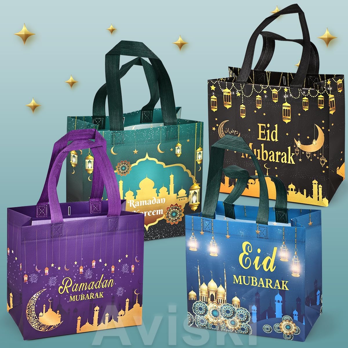 4 sacchetti regalo riutilizzabili Eid Mubarak, sacchetti per feste Ramadan Mubarak, sacchetti Eid multifunzionali in tessuto non tessuto per confezioni regalo, forniture per feste Ramadan Kareem, 23×22×11 cm