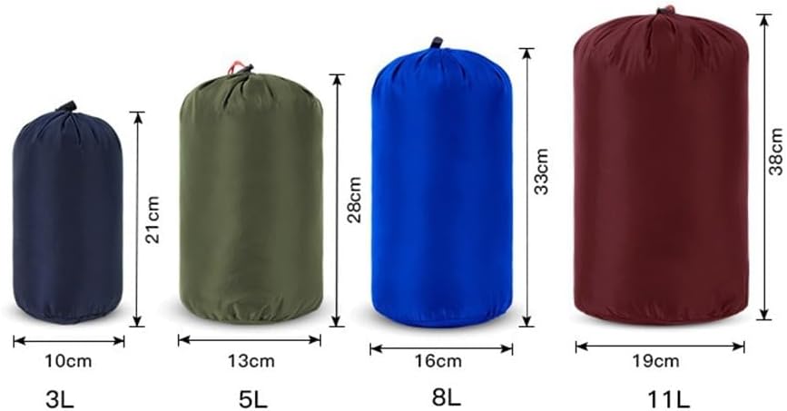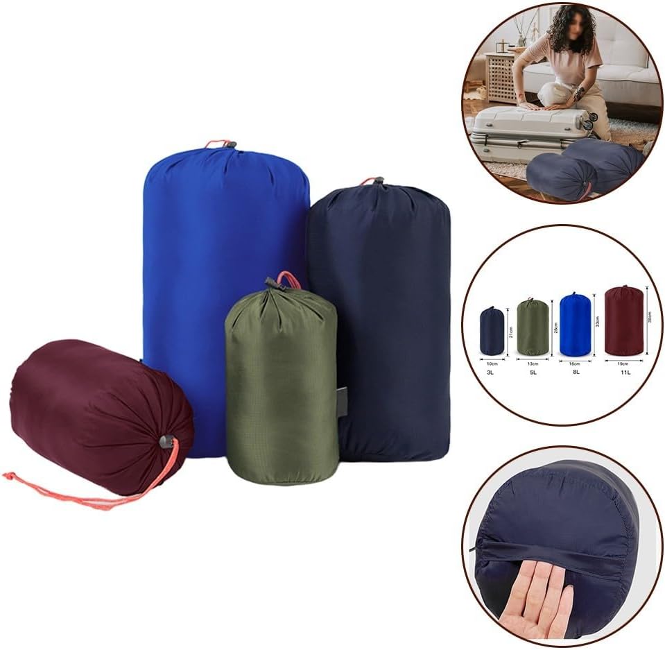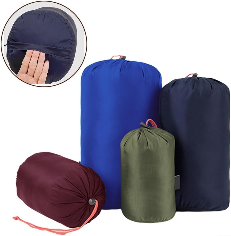 Ultraleggeri e durevoli: realizzati in morbido e confortevole tessuto di nylon 400T, questi sacchetti con coulisse sono leggeri e in grado di resistere alle condizioni di campeggio all'aperto. Conservazione versatile: perfetti per riporre piumini, sacchi a pelo e biancheria intima, questi sacchetti a compressione per sacco a pelo sono progettati per comprimere gli oggetti entro una certa gamma, massimizzando l'efficienza dello spazio. Comodo design con coulisse: dotati di una chiusura a coulisse forte e durevole, questi sacchi a pelo a compressione consentono una facile regolazione e una conservazione sicura dei tuoi effetti personali. Diverse dimensioni e colori: questi sacchi a pelo a compressione sono disponibili in diverse dimensioni per soddisfare le tue diverse esigenze di archiviazione. Contenuto della confezione: ogni set include quattro sacchetti a compressione, fornendo ampie opzioni di archiviazione per le tue avventure all'aperto.