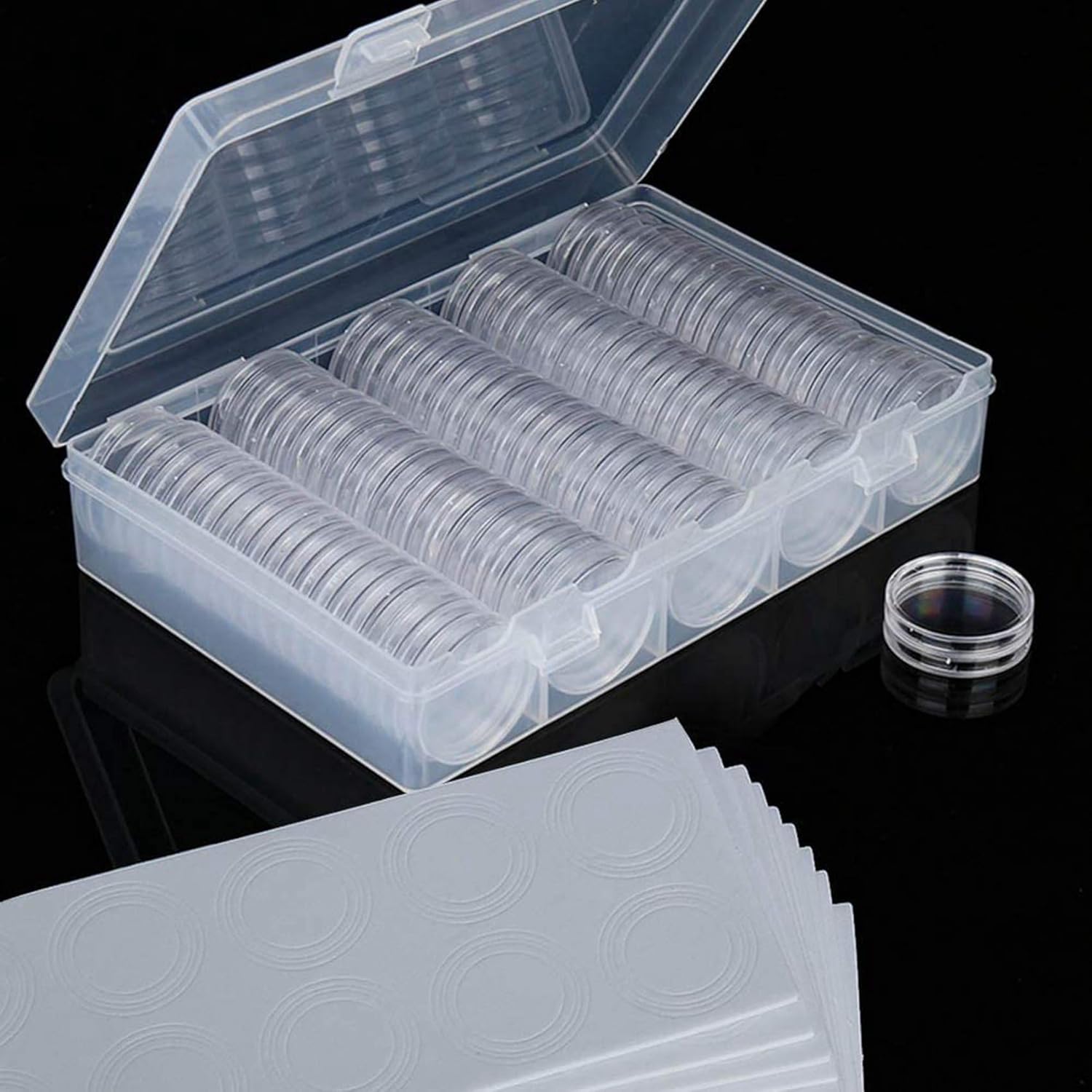 ORGANIZZATORE PER CAPSULE MONETE: il coperchio e la base sono agganciati saldamente insieme. Ha alla polvere e all'ossidazione. La scatola per monete può essere utilizzata come protezione per le monete ed è appositamente progettata per la raccolta delle monete. È una scelta saggia per i collezionisti di monete vestito per contenere la maggior parte dei tipi di monete. A seconda della dimensione della tua , scegli di utilizzare diverse dimensioni di guarnizioni in schiuma per separare l' in schiuma dal cuscinetto in schiuma Eva MISURE (DIAMETRO x PROFONDITÀ): il diametro del porta monete tondo è di 30 mm, può contenere monete non più di 30 mm, monete commemorative, perfetto per monete commemorative dello zodiaco o altre monete con diametro inferiore a 30 mm e monete antiche innocuo per le monete, elevata durezza, non facile da danneggiare, il processo dettagliato porta alta trasparenza, tecnologia ad angolo regolare, design è più conveniente, capsula per monete resistente Proteggere la guarnizione con la scatola 'organizzatore per i materiali di raccolta delle monete