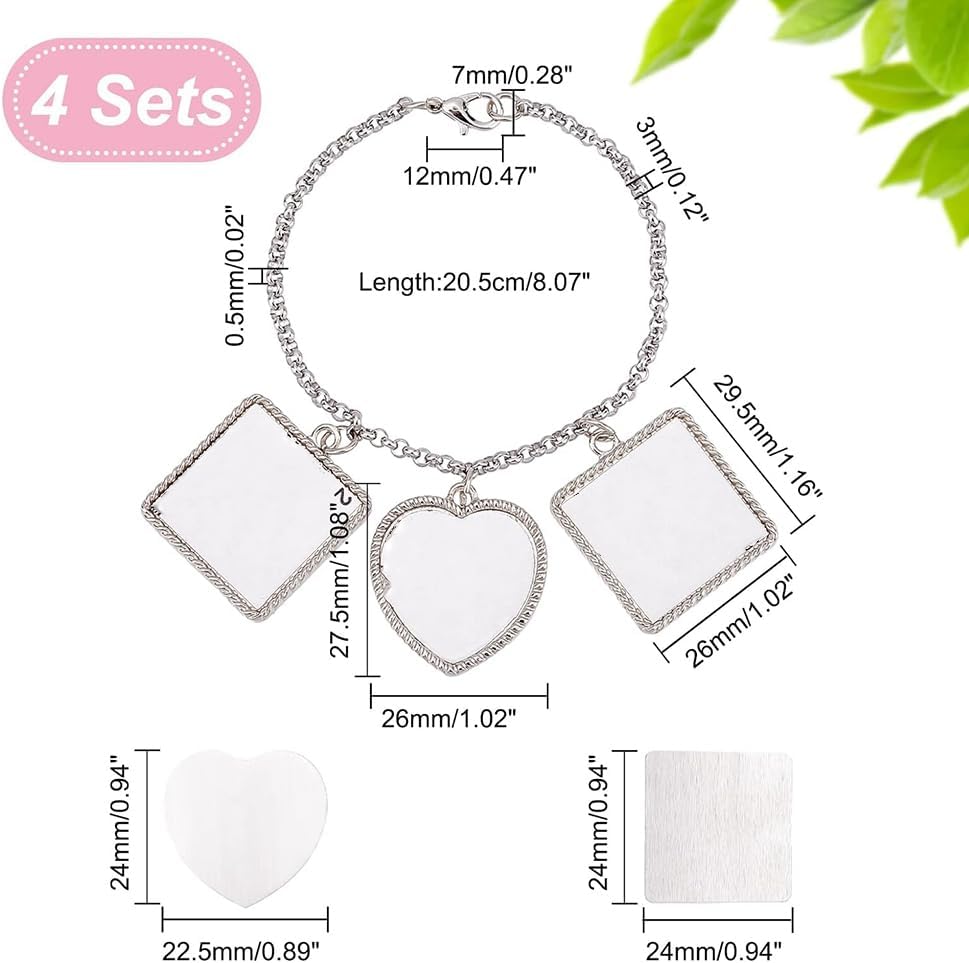 Materiale di qualità: realizzato con catena di di alta qualità e cabochon in lega, e durevole, può essere utilizzato a lungo, non facile da rompere o deformare, leggero e non appesantisce, li indossi. regalo: il braccialetto può essere un bel regalo per i tuoi amici, familiari, parenti in occasioni come compleanno, anniversario, Ringraziamento, Natale, San-, festa della mamma, Capodanno e così via. DIY il tuo braccialetto: modello con castone DIY, puoi utilizzare una pressa a caldo per le immagini e le immagini che preferisci su dischi vuoti di sublimazione per progettare le tue creazioni, usa semplicemente la tua immaginazione e goditi il processo DIY. Braccialetti vuoti per sublimazione: vieni con 4 braccialetti, combina 12 pezzi grezzi, larghi circa 3 mm, lunghi 8-1/8 pollici (20 cm), il colore rende i braccialetti finiti classici e si abbina con vestiti diversi. Occasioni applicabili: possono essere utilizzati come braccialetto 'amicizia, braccialetto per animali domestici, che può essere indossato per partecipare a feste, inaugurazioni di case, riunioni di famiglia, riunioni di compagni di classe e altre occasioni.