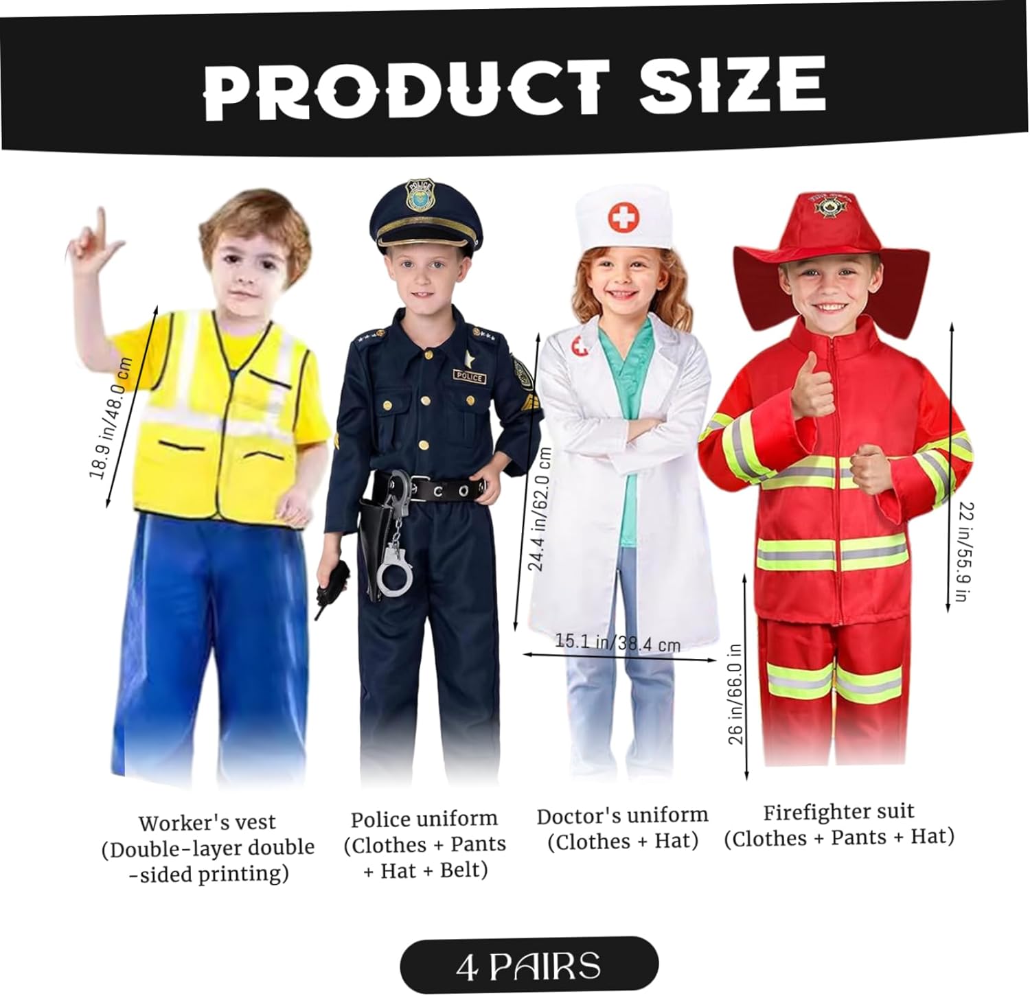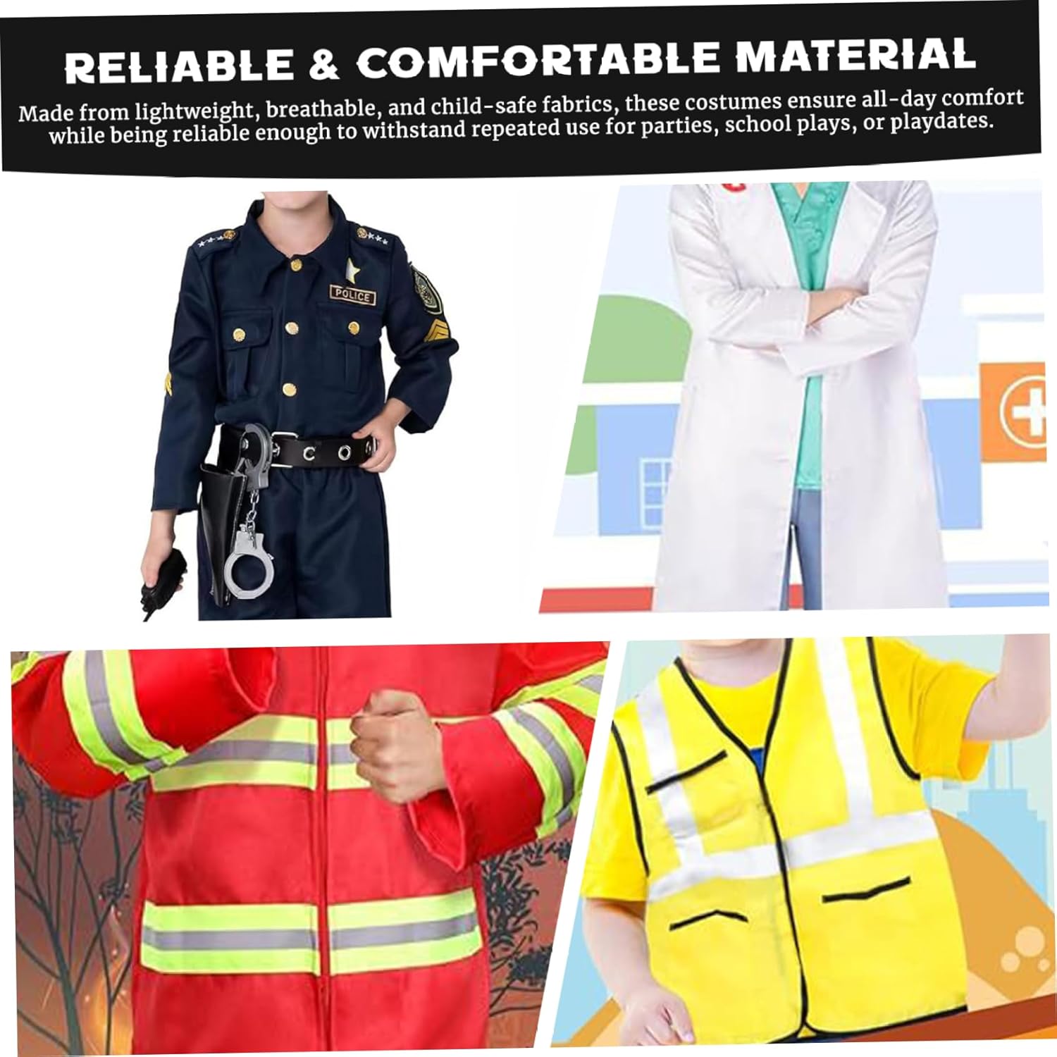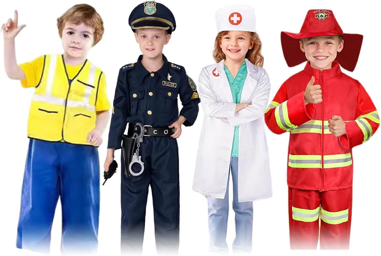 Perfetto per ragazzi e ragazze: progettati con uno stile unisex, questi abiti di gioco adattano sia ai ragazzi che alle ragazze, incoraggiano il lavoro di squadra, la creatività e il divertimento durante le attività di gruppo o il gioco dei fratelli. Costumi per bambini vestiti vestiti Materiale affidabile e confortevole: realizzato con tessuti leggeri, traspiranti e sicuri per bambini, questi costumi assicurano il comfort per tutto il giorno abbastanza affidabile da resistere all'uso ripetuto per feste, giochi scolastici o date da gioco..Testo di vestiti per bambini in costumi di Halloween Quattro costumi di gioco di ruolo in un set: questo set comprende costruzioni per operazioni edili, agente di polizia, pompieri e dottori, dando ai bambini più personaggi divertenti da esplorare durante Halloween o il gioco di tutti i giorni..Costumi di Halloween per bambini costume di Halloween Accessori completi inclusi: ogni costume viene fornito con accessori corrispondenti come cappelli, strumenti o oggetti di scena, rendendo l'esperienza di gioco di ruolo più coinvolgente ed eccitante per i bambini che amano le avventure fantasiose..Bambini costumi di costume costumi costumi per bambini Ottimo per Halloween e altro: non solo per Halloween, questi costumi sono ideali per angoli di travestimento, feste di compleanno, eventi a tema e gioco quotidiano, offrendo ai bambini innumerevoli opportunità per innescare la loro immaginazione..Costumi cosplay per bambini di Halloween