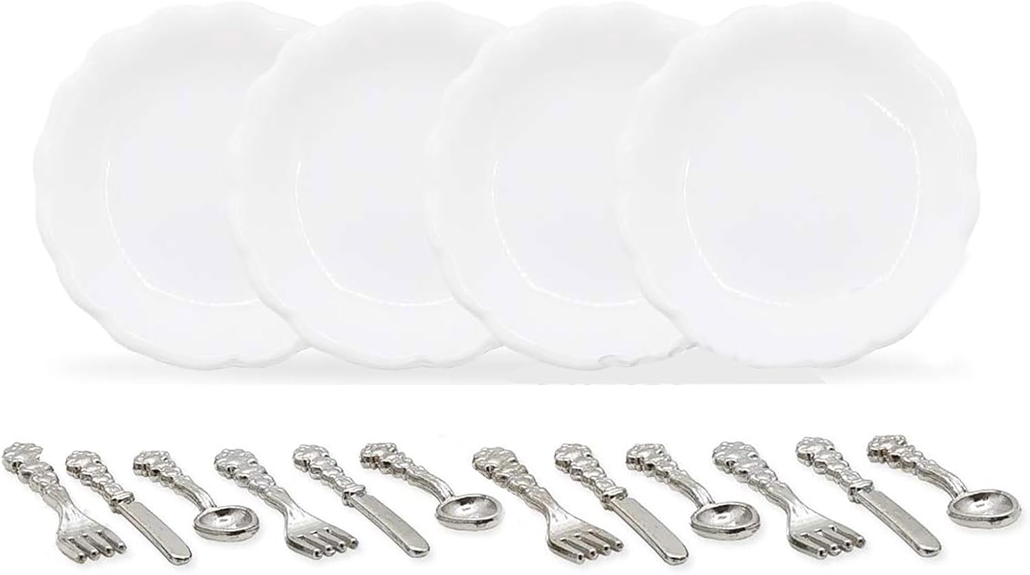 Queste miniature sono perfette per creare scene diverse e sono abbastanza versatili da poter essere utilizzate in cucine, bagni, soggiorni, giardini e altro ancora per migliorare il gioco di ruolo e giocare a un gioco fantasioso. Migliora le tue case delle bambole in modo realistico con il piatto e le posate in miniatura, un artigianato sradicato che porta l'eleganza classica in qualsiasi ambiente in miniatura. Usa metallo e ceramica selezionati. Questo set contiene quattro piatti e posate in miniatura che garantiscono resistenza e sono adatti per decorazioni realistiche delle case delle bambole. Esplora il mondo in miniatura con le stoviglie, design per ispirare la creatività e offrire infinite possibilità di personalizzazione e design nei progetti delle tue case delle bambole. Ideale per appassionati e collezionisti di miniature. Questo prodotto è ottimo per coloro che apprezzano gli accessori dettagliati e autentici per la casa delle bambole