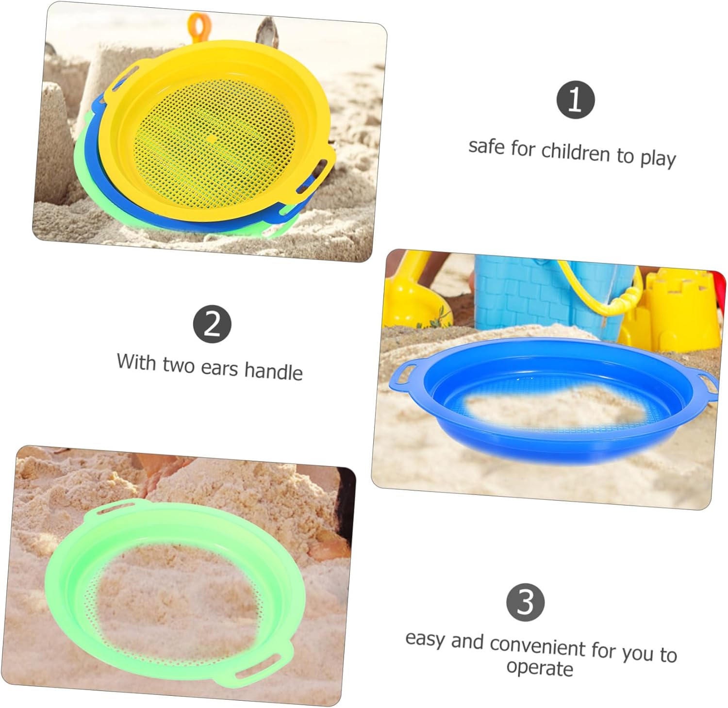 Setaccio per sabbia da spiaggia: ottima scelta per giochi in spiaggia, giochi in giardino, sabbiere, attività scolastiche, ecc., setaccio da spiaggia per Piccolo setaccio per la sabbia: è leggero, da usare, facile da usare per i , setaccio da spiaggia Filtro per sabbia da spiaggia: filtra e pietre grandi, consentendo passaggio ghiaia, sabbia e , filtro per sabbia a maglie piccole Colino per la sabbia: sono progettati appositamente per far divertire i , setaccio per la sabbia per Setaccio per sabbia per : con a due orecchie, rende facile usare, strumenti per giocare con la sabbia