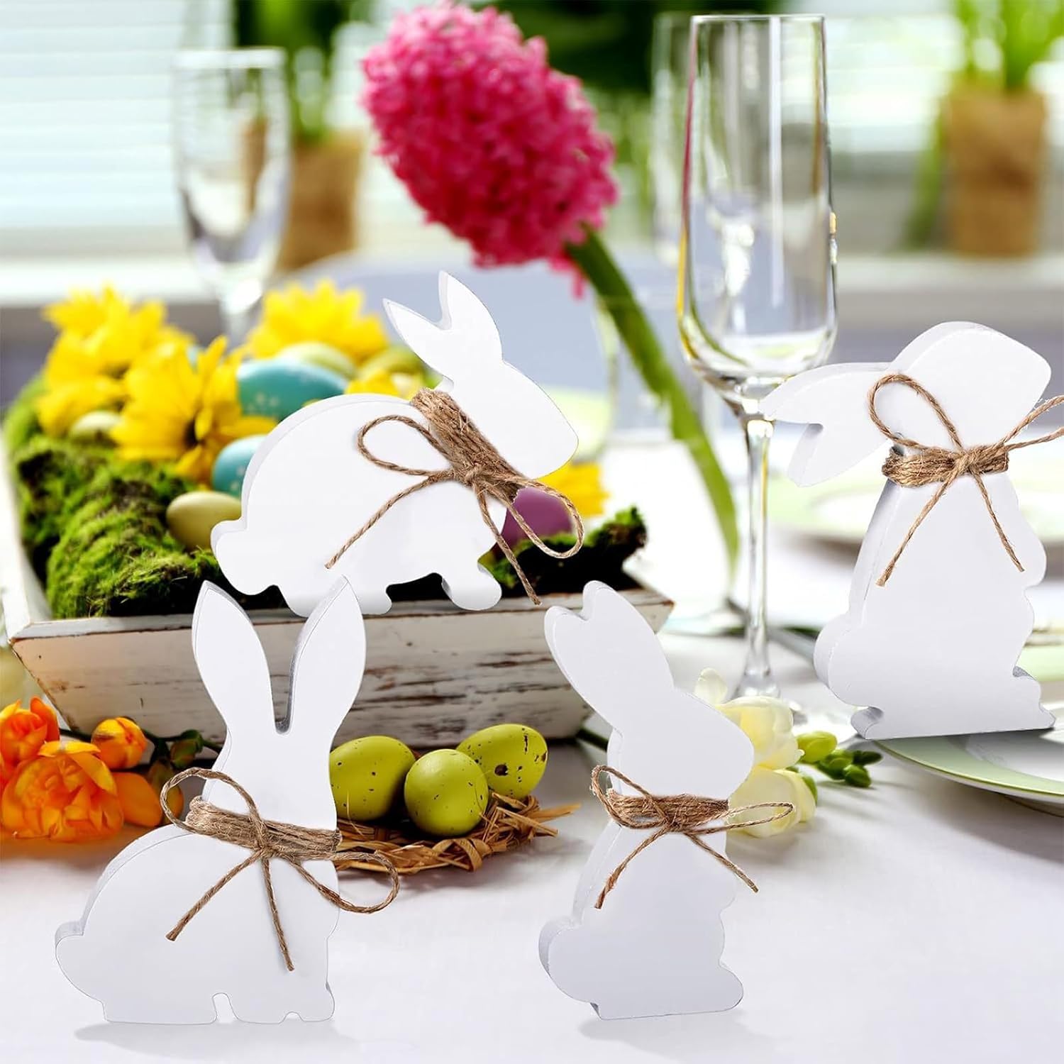 Molto adatto per la famiglia, soprattutto quelli con bambini, nonché educatori e rivenditori che cercano di creare un ambiente invitante e felice Questo cartello in legno è anche un regalo premuroso per la speranza, diffondendo allegria e ambiente festivo unico tra amici, familiari e vicini Migliora la tua celebrazione del festival di primavera con le nostre 4 statuette a forma di coniglio in legno, decorazione in legno splendidamente realizzata che porta fascino festival a qualsiasi spazio Realizzato in legno, leggero e non sbiadisce e non si rompe facilmente, questa decorazione da scrivania in legno con coniglietti è una buona durata, garantendo che rimanga fondamentale nella decorazione delle vacanze Ideale per decorare vassoi a più livelli per festival primaverili, librerie, tavoli da pranzo o davanzali, aggiunge un tocco di calore ed elegante cahrm a salotti, aule o negozi