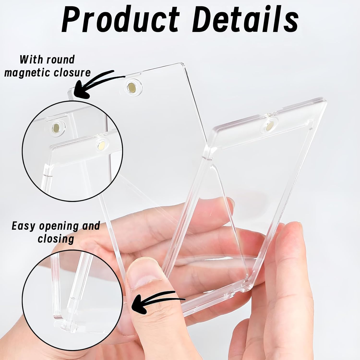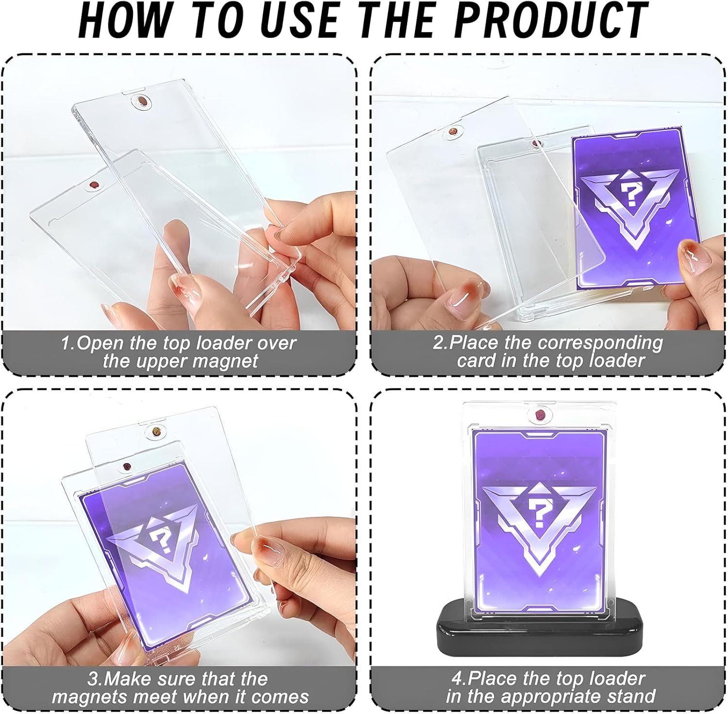 Pratico porta carte magnetiche: confezione da 4 porta carte con 4 porta carte da collezione neri, carte toploader pokemon misura 11 x 7,3 x 0,8 cm, porta carte PSA nero misura 9,9 x 3,7 x 1,3 cm, può essere utilizzato con il porta carte magnetiche per un comodo posizionamento, adatto per riporre carte sportive o da gioco di dimensioni standard. Chiusura magnetica: la parte superiore della plastica rigida toploader Pokemon è dotata di una chiusura magnetica rotonda che consente di riporre le carte in modo sicuro e si apre e si chiude facilmente senza attrezzi. La protezione per carte può prevenire efficacemente acqua, polvere, sudore, impronte digitali, rughe e graffi danneggiano le carte e fornisce una protezione completa. Protezione UV + Diamond Corner: le carte Toploader Pokemon sono realizzate in polistirolo (PS) con protezione UV, è durevole e il porta carte è realizzato in ABS. Il porta carte è dotato di una protezione UV integrata che impedisce lo sbiadimento delle carte e assicura che le tue carte mantengano i loro colori vivaci a lungo. Il design a forma di diamante del supporto magnetico impedisce efficacemente la piegatura degli angoli delle carte e mantiene intatti i bordi delle carte. Chiaro e trasparente: entrambi i lati della carta toploader pokemon sono trasparenti in modo da poter vedere chiaramente i dettagli della carta senza estrarre la scheda e supporta la scansione di codici a barre o codici QR. Le informazioni della carta nel titolare della carta sono chiaramente visibili a colpo d'occhio e possono essere cercate e identificate rapidamente. Multiuso: le carte toploader pokemon possono essere utilizzate per toploader TCG, scatole di carte MTG, custodie per carte da collezione, ecc; le custodie sono adatte come regalo di compleanno, premio per i compiti a casa o per le calze di Natale per bambini, e sono anche ideali per collezionisti e giocatori per proteggere carte preziose.