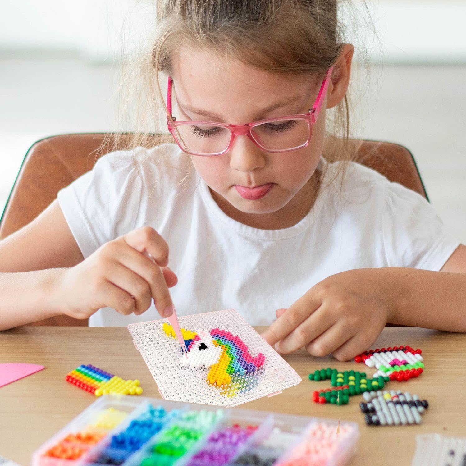 Contenuto del prodotto: riceverai 4 tavolette per fagioli e 2 pinzette in acciaio inossidabile. La dimensione del fagiolo è di circa 15 x 15 x 0,6 cm e il colore è trasparente; La dimensione delle pinzette è di circa 10 x 1 cm e il colore è rosa, adatto per il lavoro fai-da-te. 【Materiale del prodotto】 La tavola del puzzle Bean è realizzata in materiale Ps, che è durevole e trasparente, aiutando i bambini a vedere chiaramente la disposizione dei pezzi del puzzle. Le pinze sono in metallo, sono robuste e durevoli, hanno un colore brillante, non arrugginiscono facilmente e sono adatte per lavori delicati. 【Design creativo】 Il design di questo prodotto presenta una tavola multifunzionale per fagioli e pinzette. Il Bean Board è di medie dimensioni e adatto a varie creazioni di fagioli. Le pinzette hanno un design sottile e facilitano la cattura di piccole particelle. Ciò consente ai bambini di completare facilmente i loro progetti artigianali e di sviluppare la loro creatività e abilità pratiche. 【Facile da usare】 Questi poggiapolsi e clip sono facili da usare, il poggiapolsi può essere riutilizzato e la pulizia è facile. Le pinzette sono facili da usare e adatte ai bambini. Può aiutarti ad apprendere le abilità per raccogliere e organizzare i fagioli, rendendo il processo di produzione manuale più interessante. Ampia applicazione: questo set di articoli è molto adatto per l'artigianato e le attività creative dei bambini, non solo per i giochi di costruzione di fagioli, ma anche per vari altri progetti di artigianato. È adatto per l'uso a casa, a scuola e nei laboratori artigianali ed è uno strumento ideale per promuovere le abilità pratiche e la creatività dei bambini.