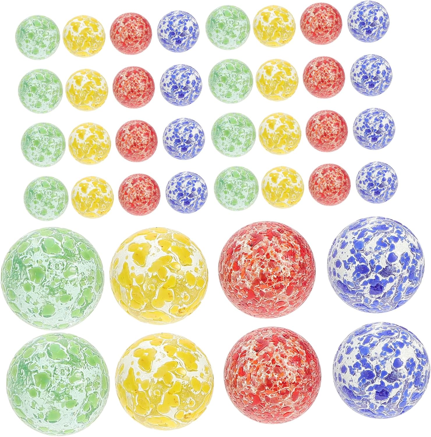 La quantità di biglie visibile nelle foto non è rappresentativa del tuo acquisto, queste biglie sono vendute in confezioni da 4. Per evitare un imballaggio eccessivo, MesBilles ti consegna tutte le tue biglie in un'unica rete, contattaci se desideri ricevere più reti. Possibile variazione di 2 mm sul diametro delle sfere erogate.