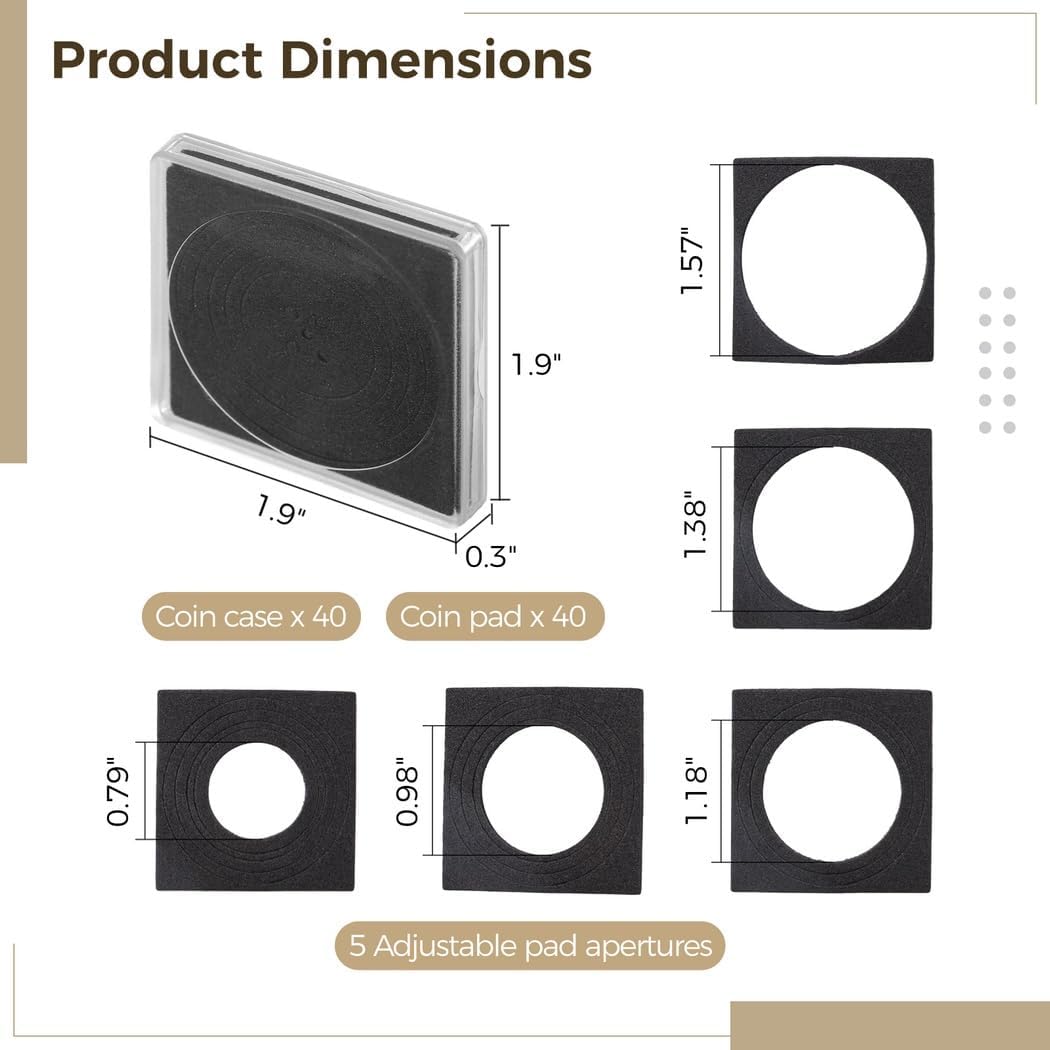 Supporti regolabili in schiuma: dispone di inserti in schiuma con fessure regolabili per diverse dimensioni, da 0,79 a 1,57; può ospitare una varietà di Previene i danni alle monete: i cuscinetti in schiuma tengono saldamente, proteggendoli da graffi e urti durante la conservazione e il movimento Custodie per monete: 40 porta monete per confezione; sufficienti per una vasta collezione di medaglie e gettoni Custodie multiuso: ideali per l'uso a casa, in ufficio o nei negozi; per conservare, esporre o scambiare oggetti commemorativi Alta durata: custodie in plastica robuste combinate con cuscinetti in schiuma morbida per una protezione duratura delle monete e una conservazione senza graffi