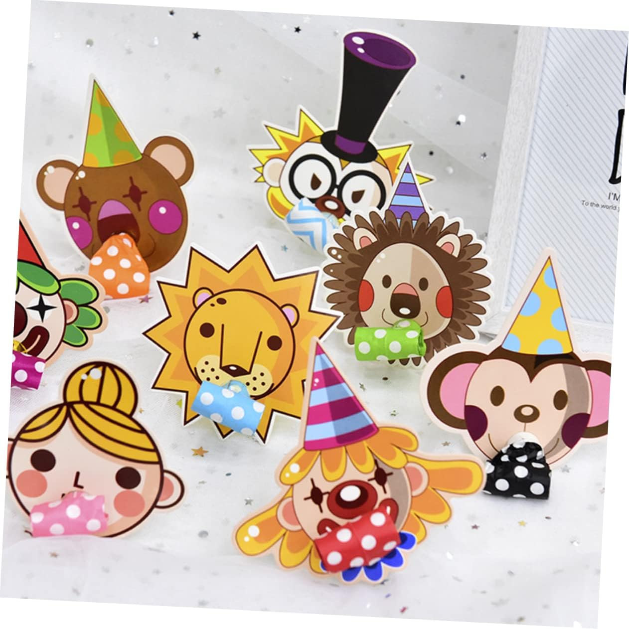 Soffiatore per: plastica e carta di alta qualità sono i materiali principali di questi fischietti, che possono servirti a lungo. Giocattoli soffianti: il rotolo di carta sulla parte anteriore dei fischietti di carta viene levigato quando si soffia, il che è molto interessante. Giocattoli con fischietto per feste con soffiatore di carta per feste: questi fischietti incoraggianti portano la festa sul palco in anticipo e rendono la tua festa divertente e attraente. Fischietto da festa per bambini: questi fischietti sono squisitamente realizzati e molto delicati e adorabili. Soffiatore di carta per fischietto per feste: questo set contiene diversi tipi di animali per soddisfare la curiosità e aiutarti a saperne di più sugli animali. tubo di carta per