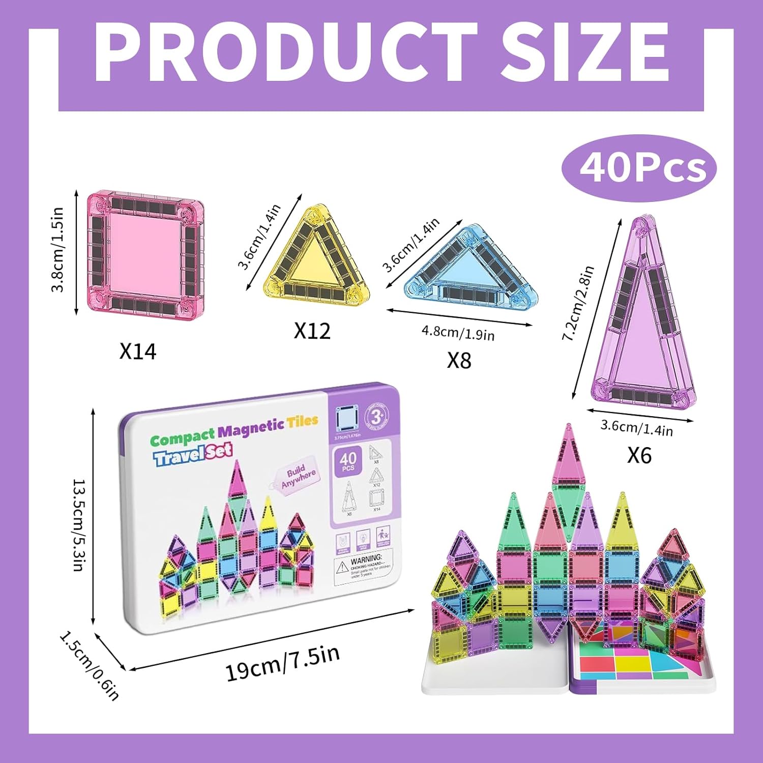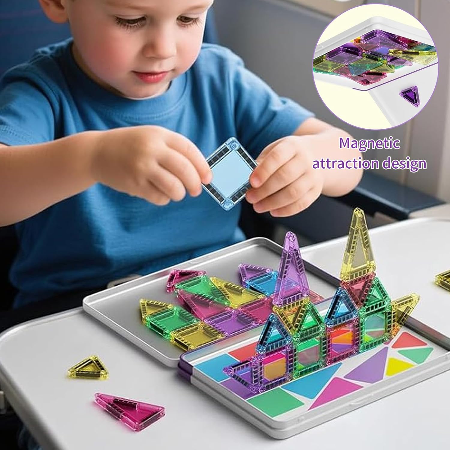 Piccoli costruttori, grandi avventure. I nostri blocchi magnetici da 40 pezzi trasformano ogni viaggio in un'esplorazione creativa. I magneti al neodimio extra forti sostengono anche le creazioni più selvagge. Perfetto per i bambini dai 3 anni in su, sia in macchina che in sala d'attesa. Buon divertimento in movimento! Questi mattoncini magnetici trasmettono le conoscenze di base della geometria e della fisica in modo divertente. I bambini possono così costruire strutture bi e tridimensionali e promuovere così il loro pensiero spaziale. Le 4 diverse forme consentono più di 20 varianti di costruzione, dal castello al razzo. Sicurezza che puoi sentire. I nostri elementi costitutivi sono: ✓ Angoli arrotondati al 100% ✓ Plastica ABS senza BPA ✓ Magneti sigillati - Nessun rischio di ingestione Scatola di ferro: la scatola di ferro misura 19,5 × 13,46 × 1,5 cm, si inserisce facilmente in uno zaino ed è facile da trasportare. Inoltre, la scatola di ferro può fungere da base magnetica per evitare che il "castello" crolli. Il regalo perfetto per ragazzi e ragazze: che si tratti di compleanno, Natale o altre occasioni, questo giocattolo magnetico è il regalo ideale per bambini dai 3 anni in su. Creativo, educativo e divertente!