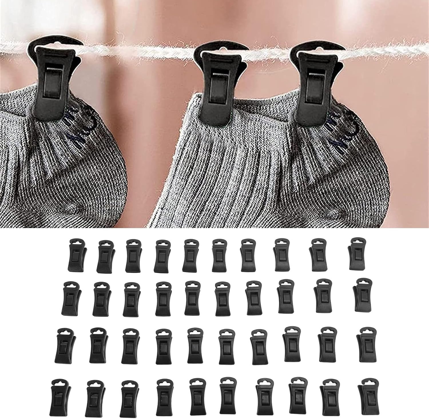 Materiale plastico resistente: questi fermagli per calzini per bucato sono realizzati in materiale plastico di alta qualità che garantisce una lunga durata e consente molteplici soluzioni di risparmio sui costi a lungo termine Multifunzionale e: le clip per calzini non solo possono tenere saldamente i calzini, ma possono anche essere usate per appendere vari altri vestiti sullo stendibiancheria, offrendoti opzioni più versatili per le tue esigenze quotidiane di bucato. Design portatile: queste clip per calzini presentano un design leggero e compatto che le rende facili da trasportare e adatte sia per interni che per esterni e così puoi asciugare comodamente i vestiti sempre e ovunque Design antiscivolo: le mollette in plastica antiscivolo adottano uno speciale design antiscivolo che garantisce un fissaggio sicuro dei tuoi vestiti e previene efficacemente lo scivolamento anche in condizioni di Grande capacità di 40 pezzi: con una confezione generosa di 40 clip per calzini avrai una quantità sufficiente per soddisfare tutte le tue esigenze di bucato e asciugatura, offrendoti un'esperienza eccezionale