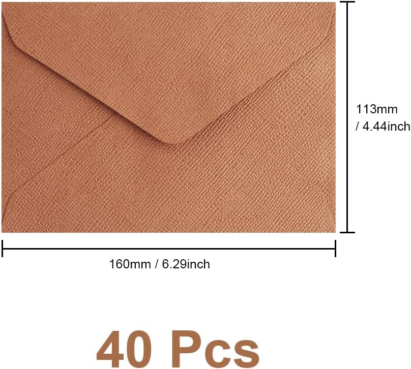 Contenuto della confezione: 40 pezzi di busta marrone, quantità sufficiente per l'uso quotidiano. Fate sentire speciale il vostro destinatario con biglietti e buste dal design creativo e decorato. Formato C6: La busta standard C6 misura 16,2*11,4 cm, l'interno è leggermente più piccolo dell'esterno e non contiene una carta. Busta testurizzata: questa mini busta è realizzata in carta a coste di alta qualità, dall'aspetto accattivante. Fai da te: sui biglietti vuoti si può scrivere ciò che si vuole dire o disegnare un bel motivo. È anche possibile inserire adesivi e fiori e inviarli alla famiglia o agli amici per esprimere i propri sentimenti in diversi stili. Regalo speciale: matrimonio, lettera standard, Natale, lutto, lettere d'amore, inviti, compleanno, nascita e artigianato.