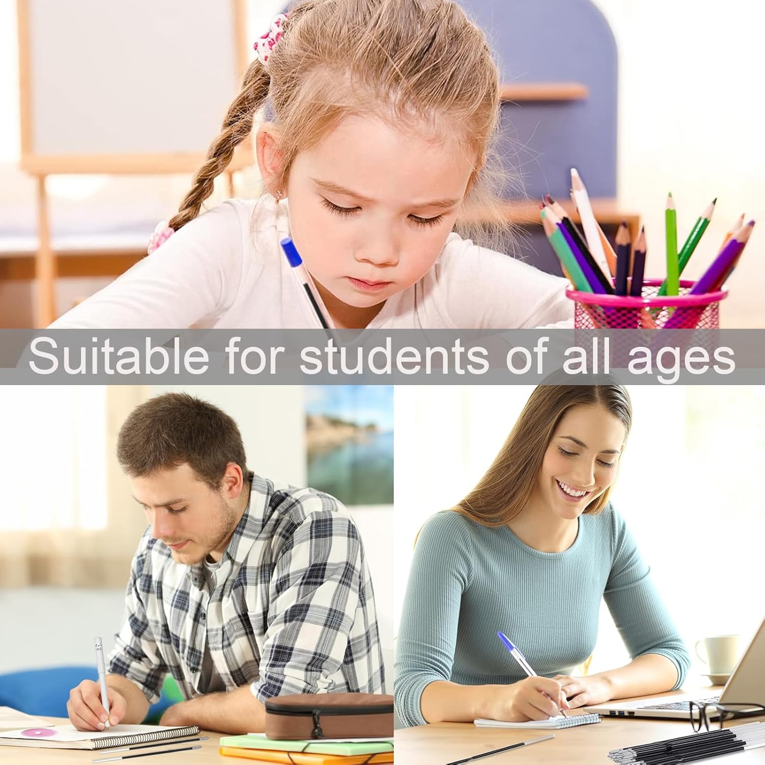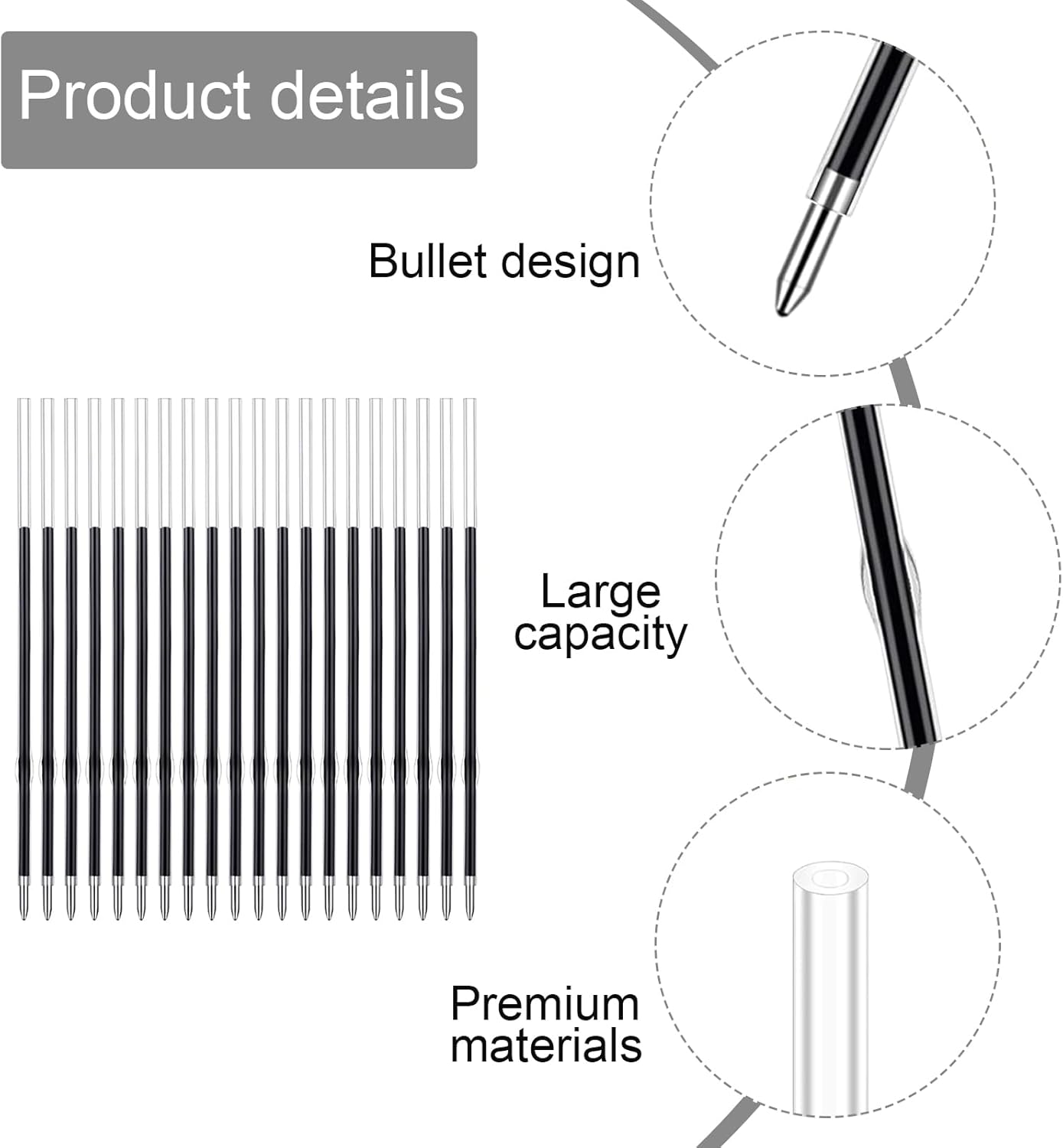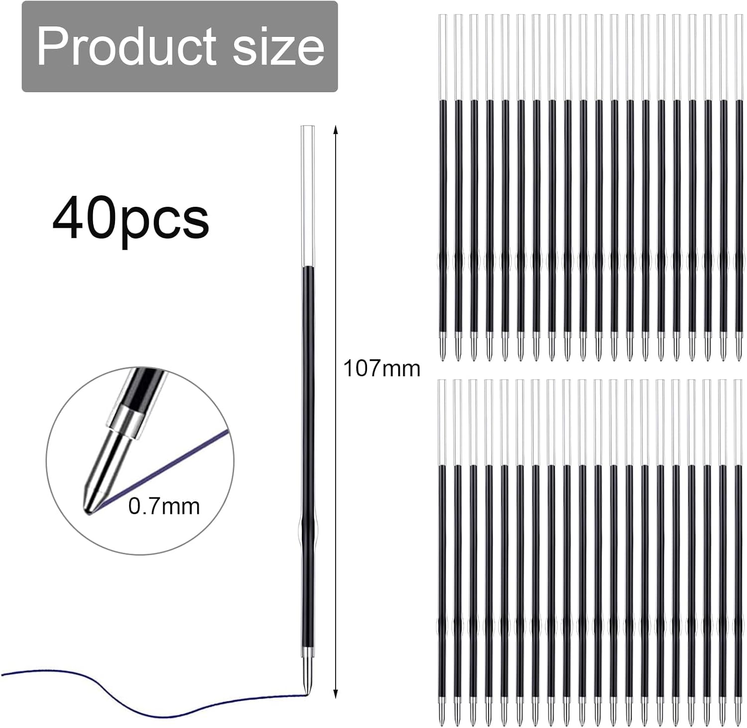 🖊Pacchetto incluso: La ricezione di 40 pezzi blu 0,7 millimetri penna a sfera retrattile ricariche di ricambio, 4,2 pollici/107 millimetri di lunghezza, abbastanza per soddisfare le vostre varie esigenze di scrittura, di apprendimento e di lavoro, è possibile condividere con i tuoi amici e compagni di classe. 🖊Eccellenti prestazioni: la ricarica a sfera è dotata di una punta da 0,7 mm che consente di scrivere o tracciare linee sottili sulla carta in modo fluido e semplice, che si abbina perfettamente alla penna retrattile, facile da sostituire e aiuta a ridurre gli sprechi Scegliere una penna diversa nel tempo. 🖊 Comoda da usare: È possibile accorciare la lunghezza della ricarica retrattile per adattarla a diverse penne, risparmiando tempo ed energia; sono portatili e comode, se la lunghezza della ricarica è troppo lunga, è possibile accorciarla per adattarla all'astuccio della penna, e infine installarla nell'astuccio della matita pronta per l'uso. 🖊 Occasioni applicabili: queste ricariche sono adatte a qualsiasi occasione, anche a casa, in classe, in ufficio, in negozio, ecc. Le confezioni di ricarica abbastanza tascabili sono più facili da conservare e possono anche essere regalate ad altri. 🖊Servizio soddisfacente: Se avete domande sui nostri prodotti, non esitate a contattarci a