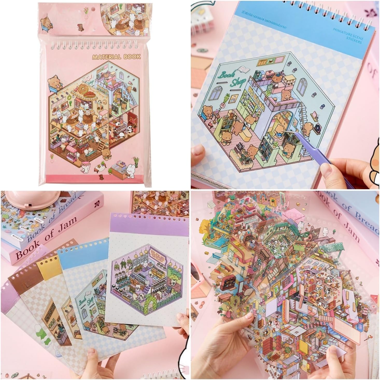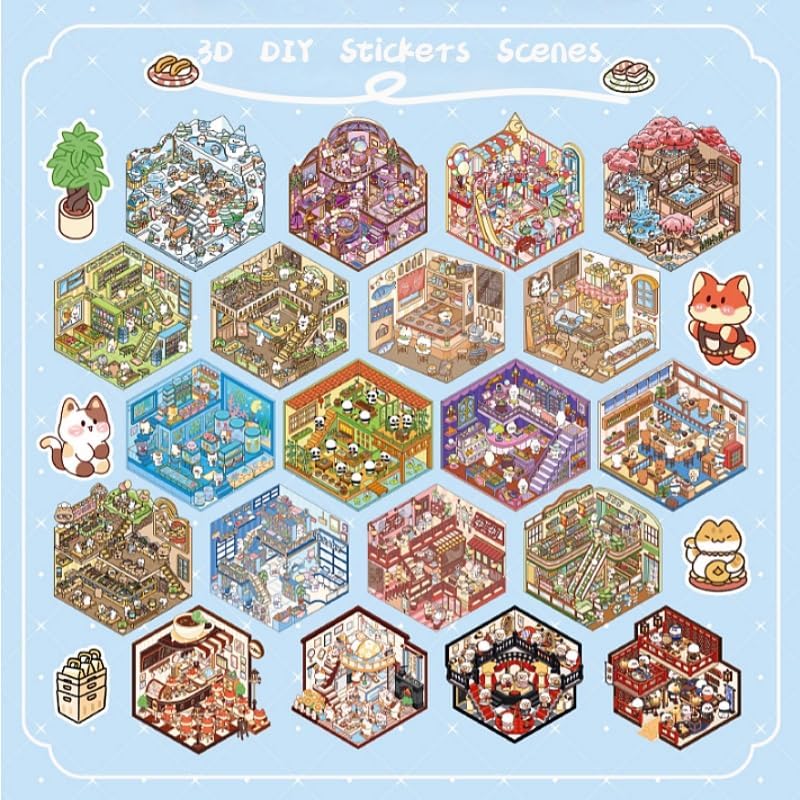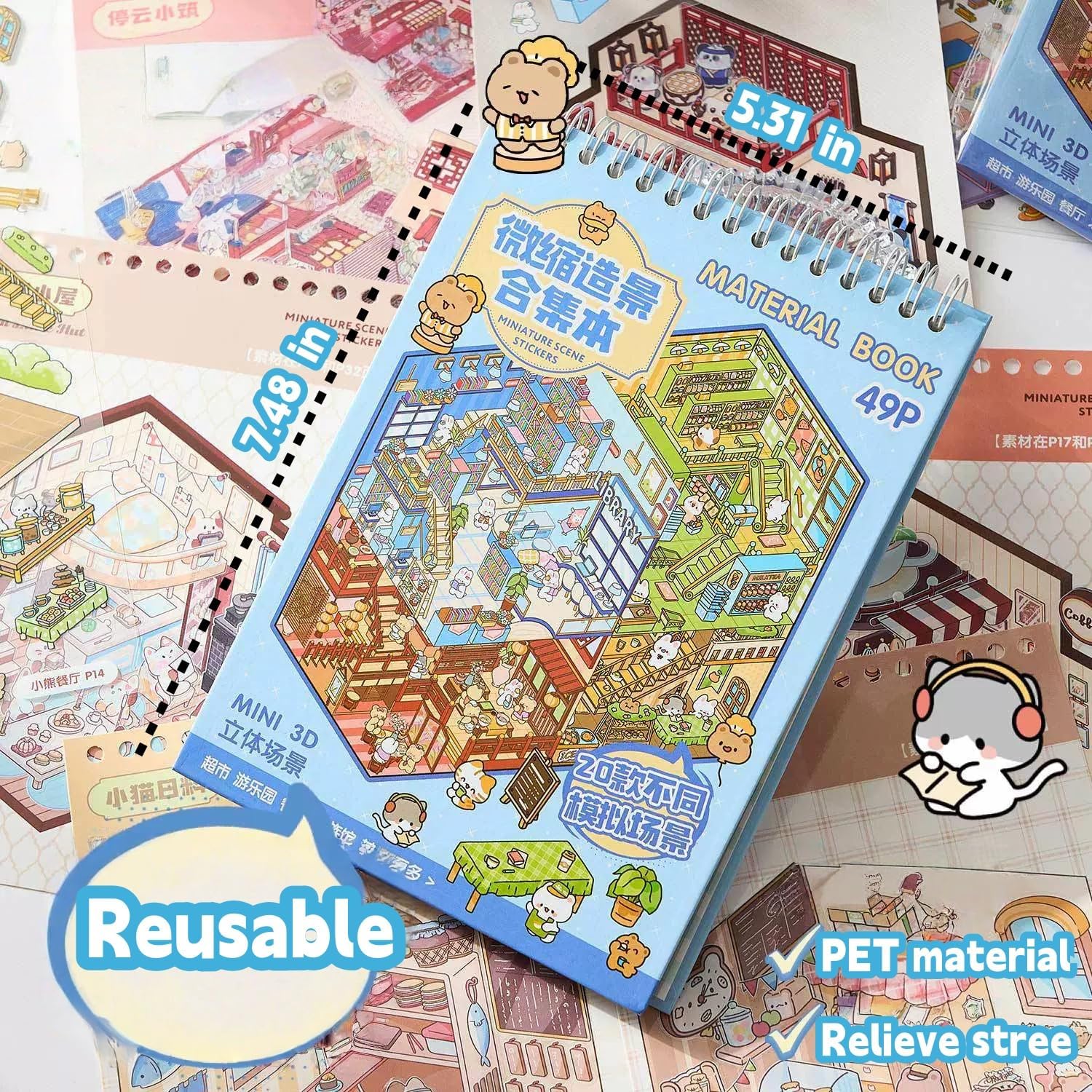 Adesivo creativo per casa 3D fai-da-te: il set di libri con scene di adesivi 3D comprende 40 set di adesivi, piastre di sfondo e pinzette. Gli adesivi della casa hanno una varietà di sfondi paesaggistici, che puoi riorganizzare liberamente secondo la tua immaginazione e il tuo stile. Materiali di alta qualità: gli adesivi per la casa 3D fai-da-te sono realizzati con materiali durevoli, sicuri e non tossici. Il motivo della scena dell'adesivo ad alta definizione fornisce uno straordinario effetto tridimensionale e la superficie dell'adesivo è rivestita per garantire che non si strappi facilmente. Facile da usare: queste scene adesive 3D sono adatte a tutte le situazioni e a tutti i tipi di luoghi con staffe, gli adesivi sono impermeabili e riutilizzabili e hai la libertà di riorganizzare e personalizzare la scena secondo la tua immaginazione e il tuo stile. Divertimento antistress: per gli appassionati di artigianato, studenti e adulti, la nostra decalcomania per casa 3D fai-da-te offre un'attività rilassante e divertente. Costruire queste scene può servire come hobby terapeutico per aiutarti a rilassarti e alleviare lo stress. Scena della mini stanza: perfetti per regali di compleanno, vacanze o qualsiasi occasione, questi adesivi per la casa sono una sorpresa premurosa e unica. Adatto ai bambini e ai creativi, sorprenderà le persone che ami e darà loro uno sbocco creativo e una fonte di gioia.