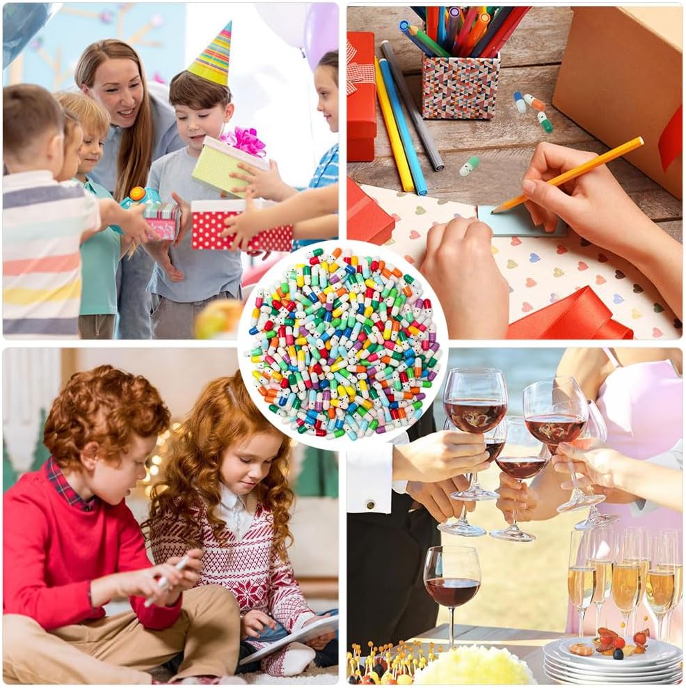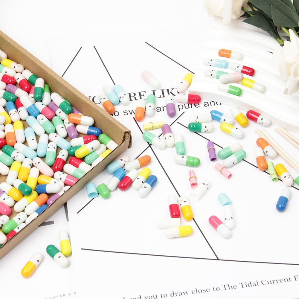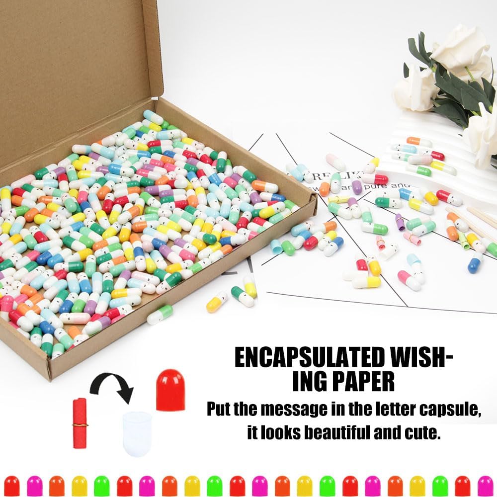 💖【Design carino della pillola】400 Pcs capsule per messaggi + 4 bastoncini di carta da rotolo, confezione mista multicolore, vari colori e quantità sufficiente per soddisfare le vostre esigenze di fai da te. 💖【Ampiamente utilizzato】Ogni capsule lettere messaggio ha una piccola striscia di carta bianca su cui è possibile scrivere ciò che si vuole dire. Utilizzatele come biglietti della lotteria per la festa di compleanno del vostro bambino. Organizzare lotterie in occasione di feste di compleanno, festival scolastici è un'ottima attività. 💖【Regalo creativo】Le pillole messaggi possono esprimere i desideri e i desideri più sentiti dell'altro, scrivere promesse e desideri sinceri e genuini l'uno per l'altro, adatti per i regali di Natale, per i compleanni dei bambini, per San Valentino e per altre celebrazioni. 💖【Materiale】La mini capsule messaggio è realizzata in carta di alta qualità e anello di metallo, sicuro, non tossico e insapore, la carta è morbida e colorata, l'anello di metallo è robusto, non facile da rompere, non facile da sbiadire, splendidamente realizzato. 💖【Dimensione】Dimensione della capsula: 7,4*23 mm, mini messaggio di carta: 10*0,3 cm, facile da aprire, scrivere e richiudere, per annotare il vostro stato d'animo, le vostre parole e i vostri desideri.