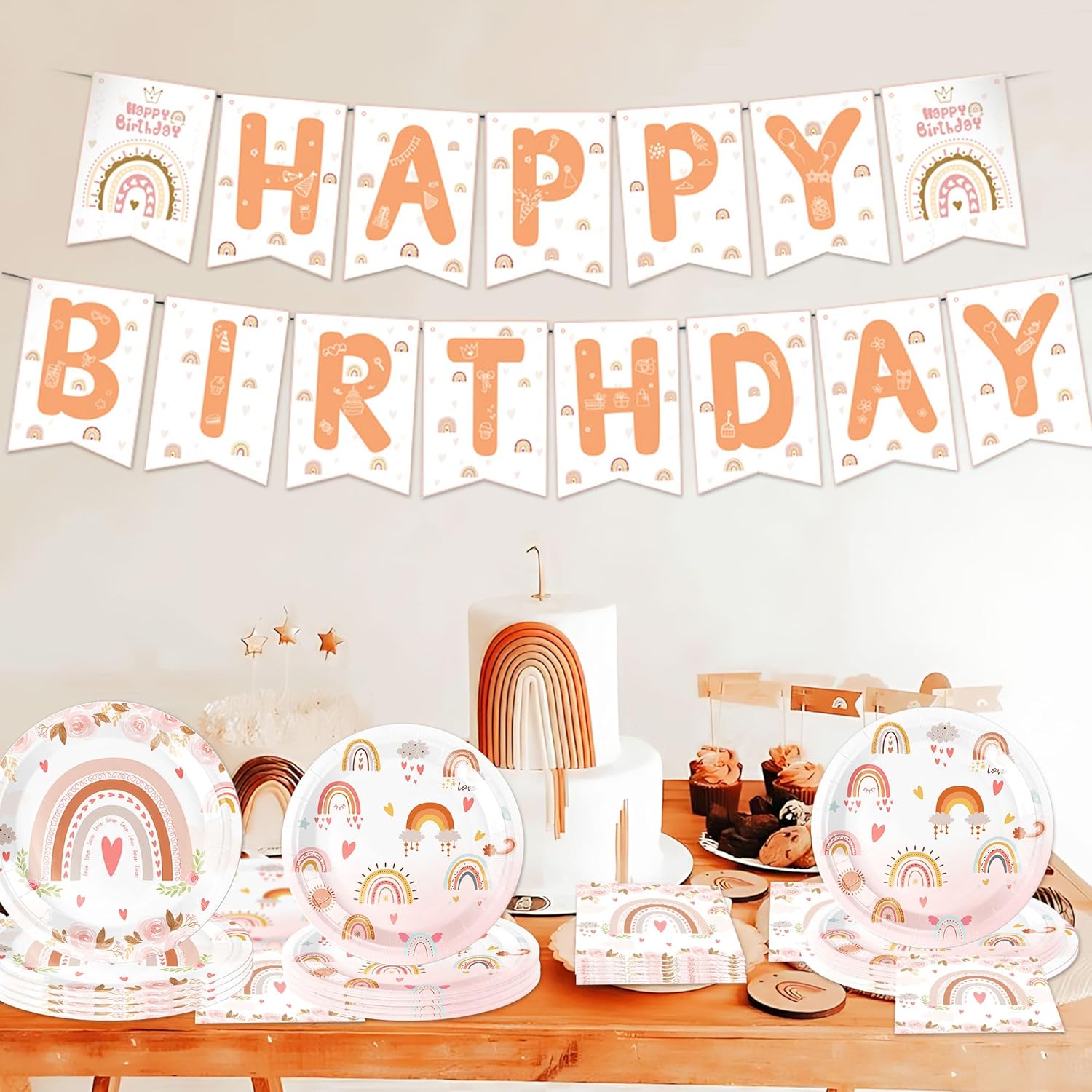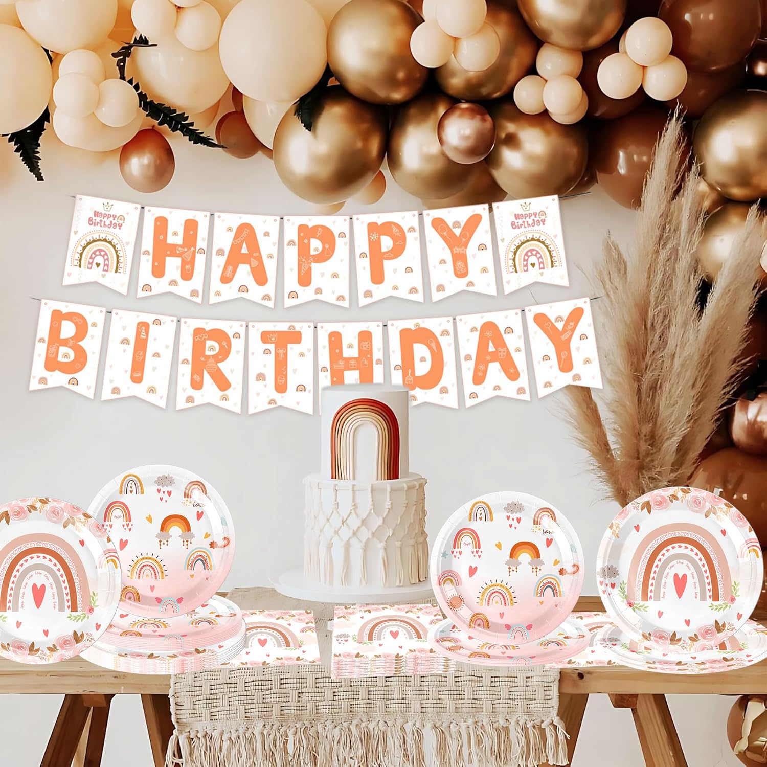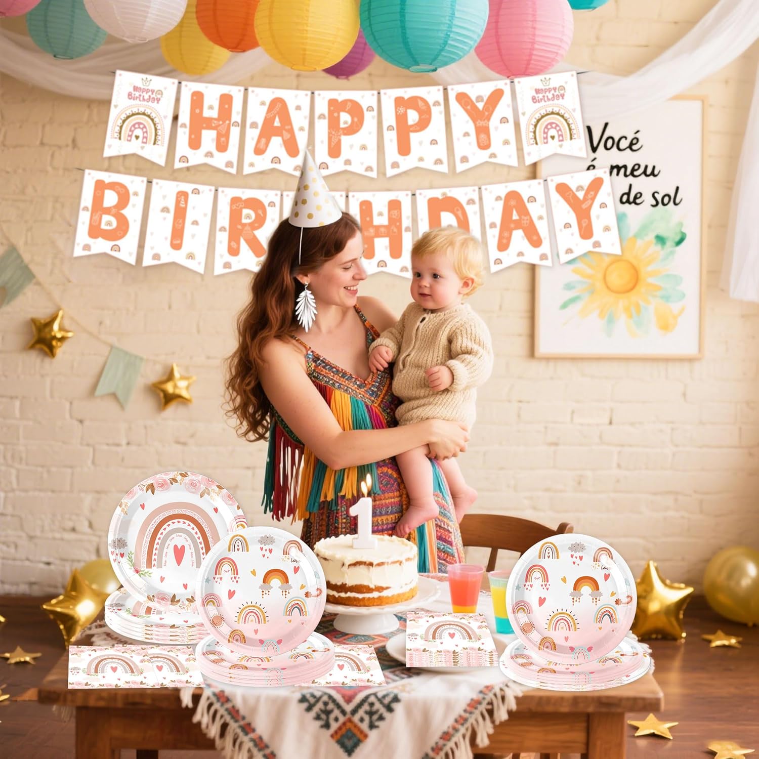 Decorare con il set di stoviglie per feste Boho Rainbow porta un'atmosfera onirica e una bellissima decorazione alla tua festa Le decorazioni per feste di compleanno Boho Rainbow offrono decorazioni fantastiche per creare un ambiente magico per la festa di compleanno. Il banner è anche lo sfondo perfetto per foto speciali Riceverai: 1 x banner 'Happy Birthday', 20 x tovaglioli, 10 x piatti 9inch, 10 x piatti 7inch Il design accattivante Boho - Rainbow crea un'atmosfera allegra e colorata ad ogni festa per bambini Se hai domande su questo prodotto, siamo felici di aiutarti