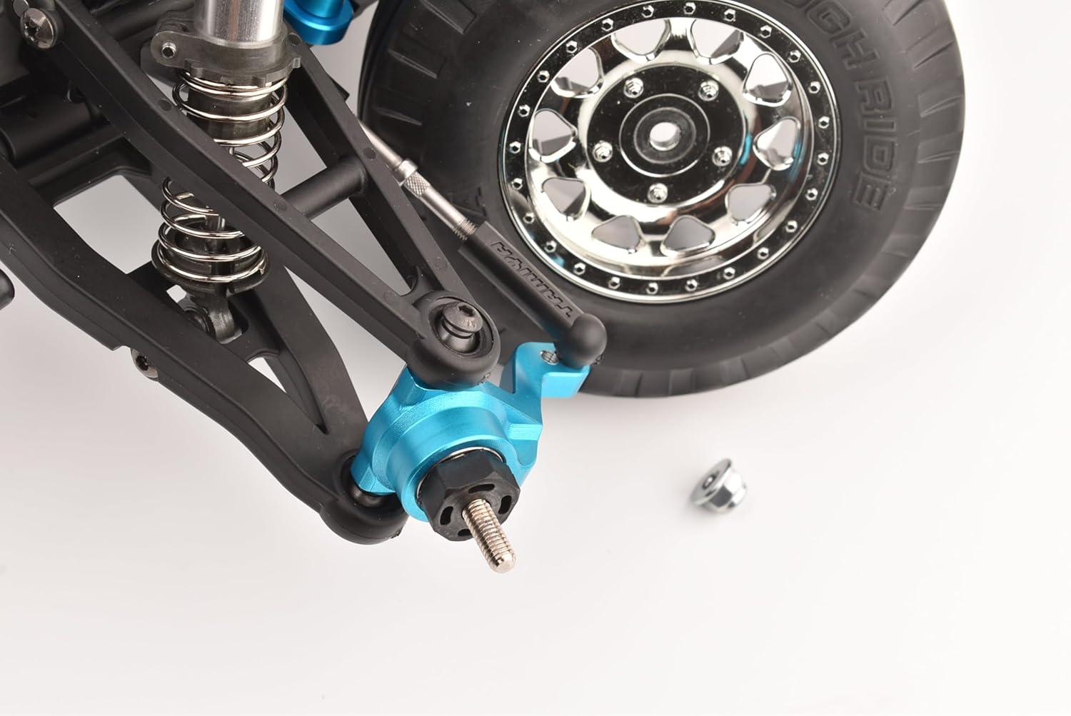 Made from 4140 medium carbon steel. This new high-precision reinforced freewheel axle set reduces rotating mass and will give you faster acceleration. Improve the stability and performance your Tamiya R/C. Package includes : Front freewheel axle set - 2pcs. Suitable model : Tamiya 1/10 BBX BB-01 Chassis 58719.