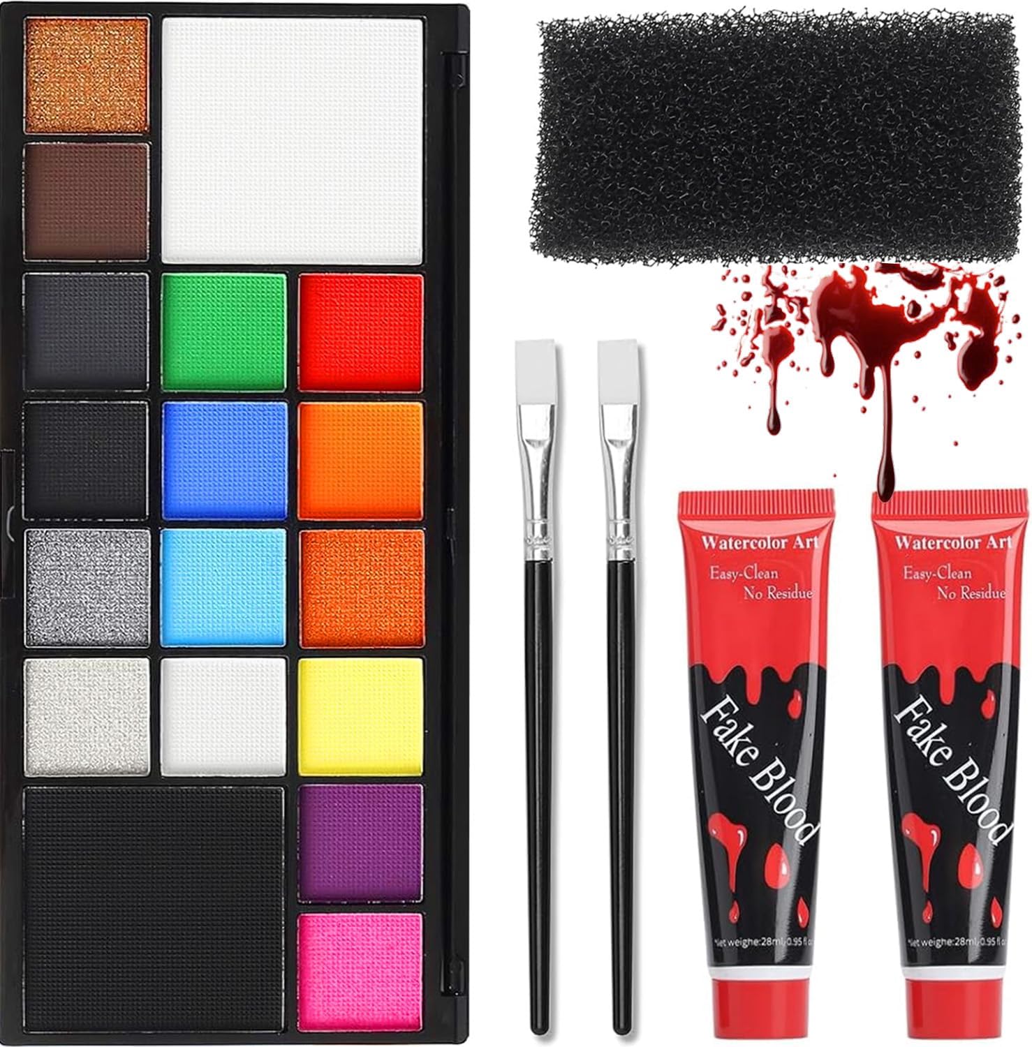 Truccabimbi kit:Il kit contiene 42 colori di pittura per il viso+6 pennarelli coloranti sgargianti (rosso, blu, viola, rosa, verde, arancione)+2 pennelli trucco+6 Stampini+1 Adesivi+2 spugna.I numerosi colori e la polvere scintillante permettono di liberare la tua immaginazione e creare svariati look,rappresentando la scelta perfetta Pigmenti di alta qualità:Il nostro truccabimbi kit utilizza pigmenti di alta qualità,dolci e morbidi,adatti a bambini e adulti.È facile creare look impressionanti e rimuovere il maquillage senza sforzo,perfetto per l'uso da parte dei bambini Facile da usare e pulire:Prima dell'uso, esegui un test cutaneo;in caso di allergia,non usarlo.Aggiungi alcune gocce d'acqua al colore desiderato per ottenere una consistenza morbida e pastosa,quindi applicalo uniformemente sulla pelle con un pennello.La pittura per il viso si pulisce facilmente con acqua dolce e acqua sapona calda Nuovo divertimento per l'interazione genitori-bambini:Questo kit di maquillage per bambini rende le attività tra genitori e bambini più speciali!Le istruzioni sono semplici,anche i principianti possono usarlo.I genitori possono creare liberamente look per i bambini Amplia gamma di utilizzi:Per Natale, Halloween, Carnevale, Compleanno, Scenario, Festa,questo kit di maquillage per bambini è una scelta ideale come regalo e attività,in grado di trasformare ogni occasione in un momento indimenticabile