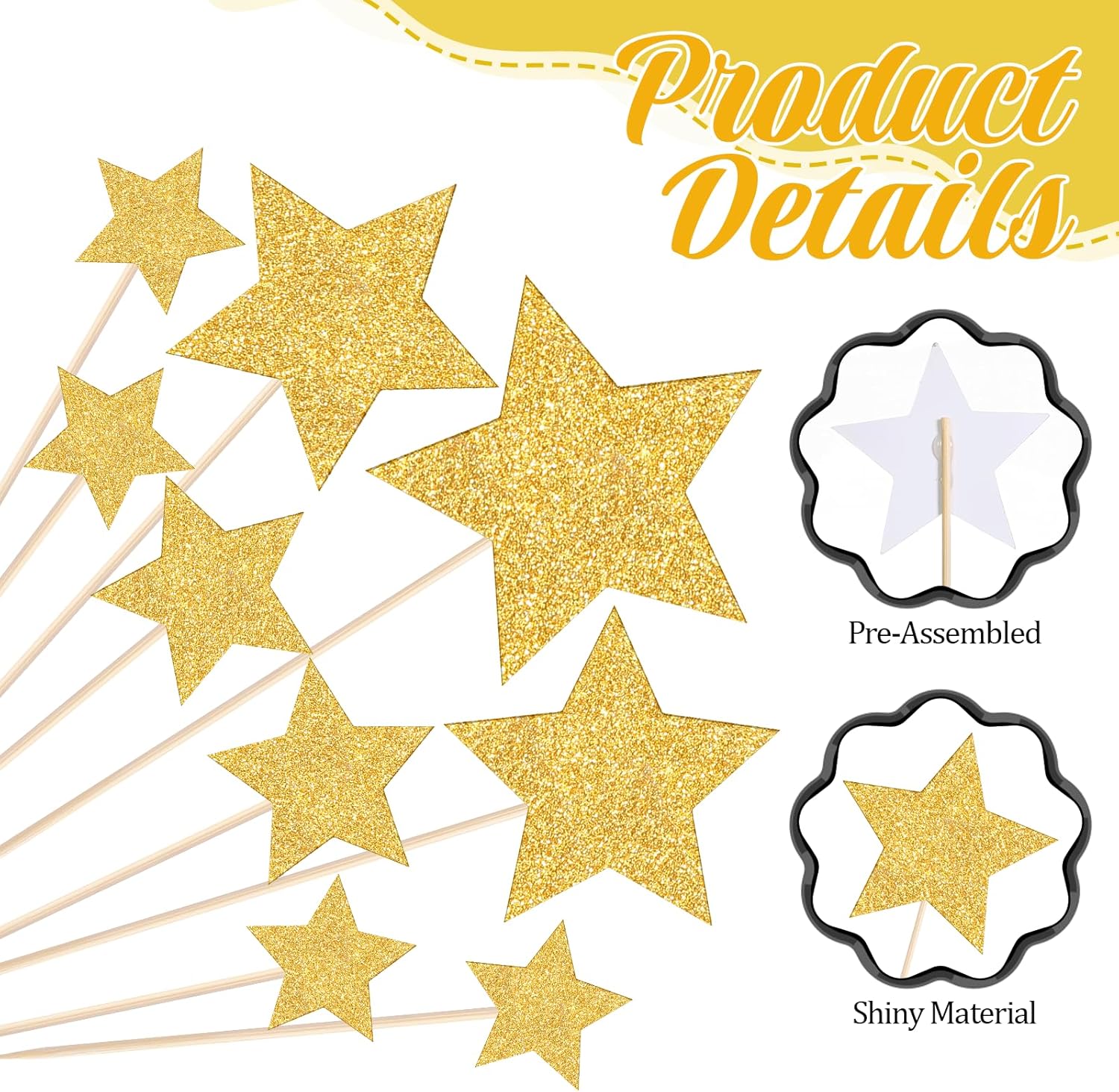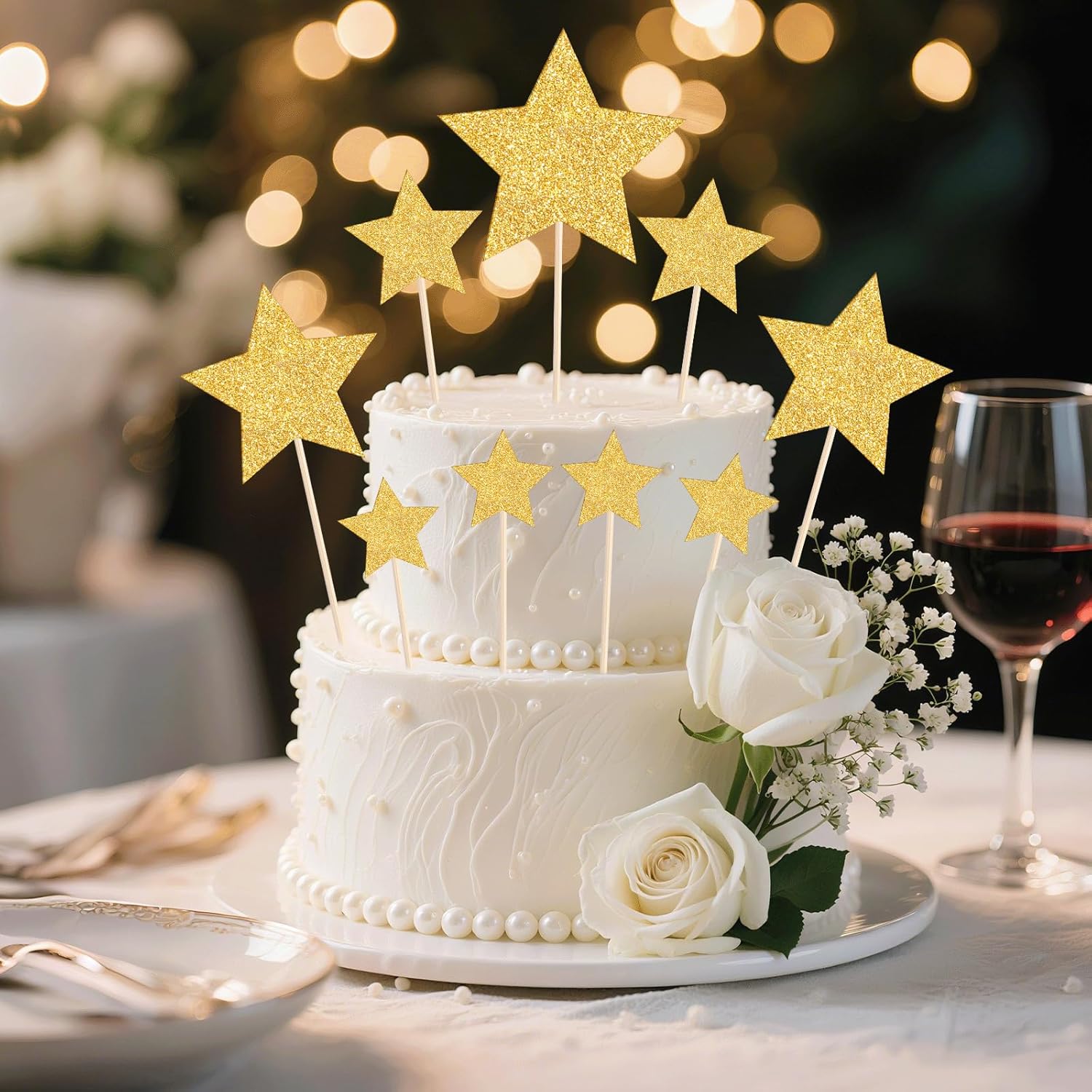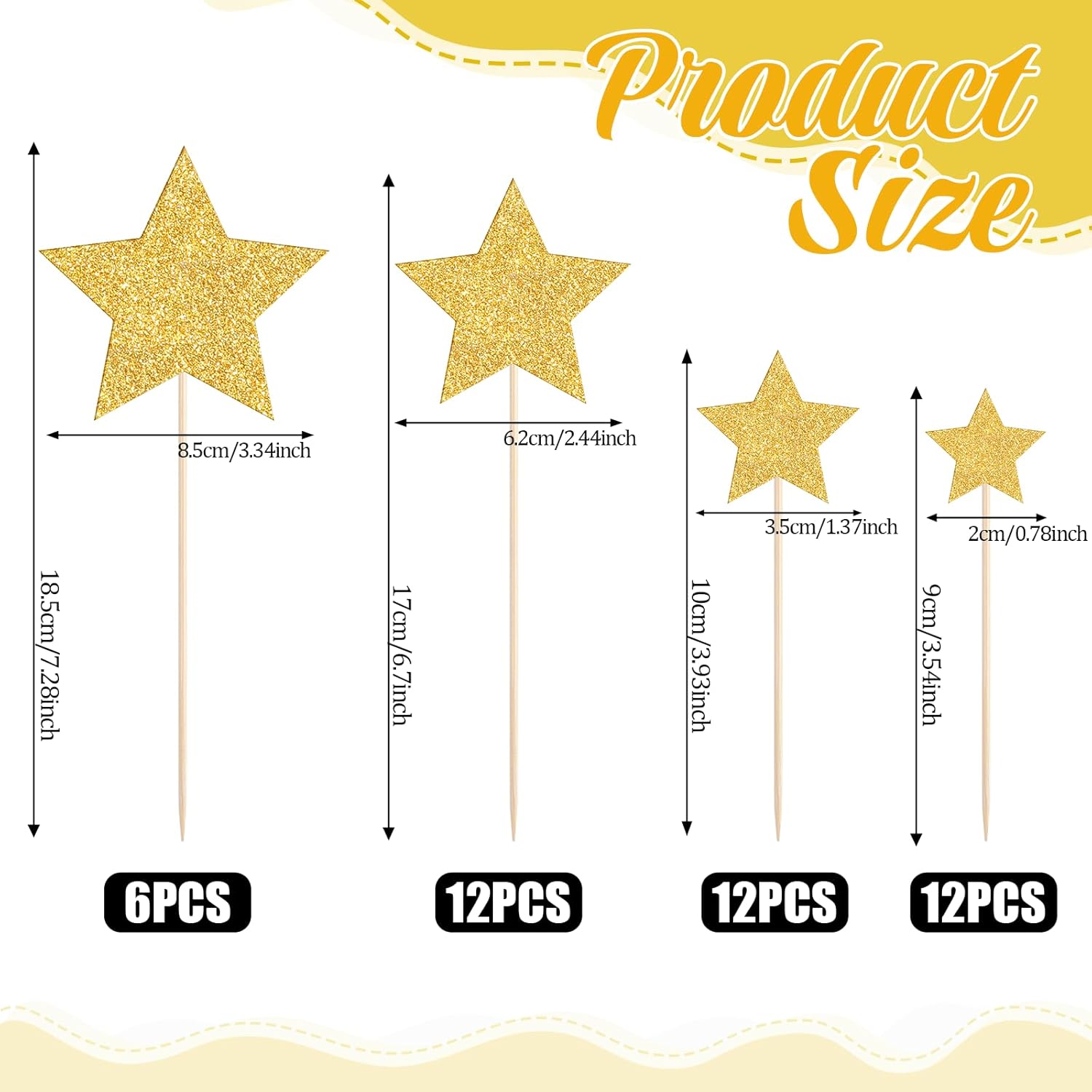 Stile carino e alla moda: queste decorazioni per cupcake a forma di stella hanno uno stile carino e divertente, e le stelle scintillanti possono rendere i tuoi cupcake più attraenti e gioiosi. Il loro design universale integra diversi temi di festa e combinazioni di colori, fornendo elementi decorativi coerenti su tutto il tavolo da dessert creando presentazioni visivamente accattivanti che gli ospiti ricorderanno. Materiale di alta qualità: realizzati in cartoncino glitterato e bastoncini di bambù, questi topper per cupcake a stella presentano un'eccellente durata con resistenza alla deformazione e allo sbiadimento. I bordi lisci senza sbavature garantiscono una manipolazione sicura, mentre la singola superficie glitterata brilla brillantemente sotto la luce, elevando efficacemente le decorazioni per feste e attirando l'attenzione degli ospiti. Praticità pronta all'uso: le decorazioni per torte pre-assemblate eliminano la necessità di preparazione fai da te, risparmiando tempo e fatica durante l'organizzazione delle feste. Basta inserire i bastoncini di bambù nei cupcake o nelle torte alle altezze preferite per ottenere effetti decorativi ottimali, rendendo questi articoli per feste ideali sia per organizzatori di eventi professionali che per utenti domestici. Set di dimensioni complete: la confezione include 42 decorazioni a stella dorate in quattro diverse dimensioni: stelle grandi (8,5 cm), stelle medie (6,2 cm), stelle piccole (3,5 cm) e mini stelle (2 cm). Questa varietà di dimensioni complete consente composizioni creative ed effetti di decorazione a strati, soddisfacendo diverse esigenze di decorazione della torta e esigenze di personalizzazione del tema della festa. Applicazioni versatili: questi topper per cupcake a forma di stella dorata sono progettati per molteplici eventi di celebrazione, tra cui feste di fidanzamento di nozze, addio al nubilato, baby shower e feste di compleanno per bambini. Le decorazioni per torte a stella possono essere utilizzate su cupcake, torte, gelati, frutta, biscotti e vari dessert per migliorare l'aspetto visivo e creare un'atmosfera festosa attraverso il loro aspetto scintillante.