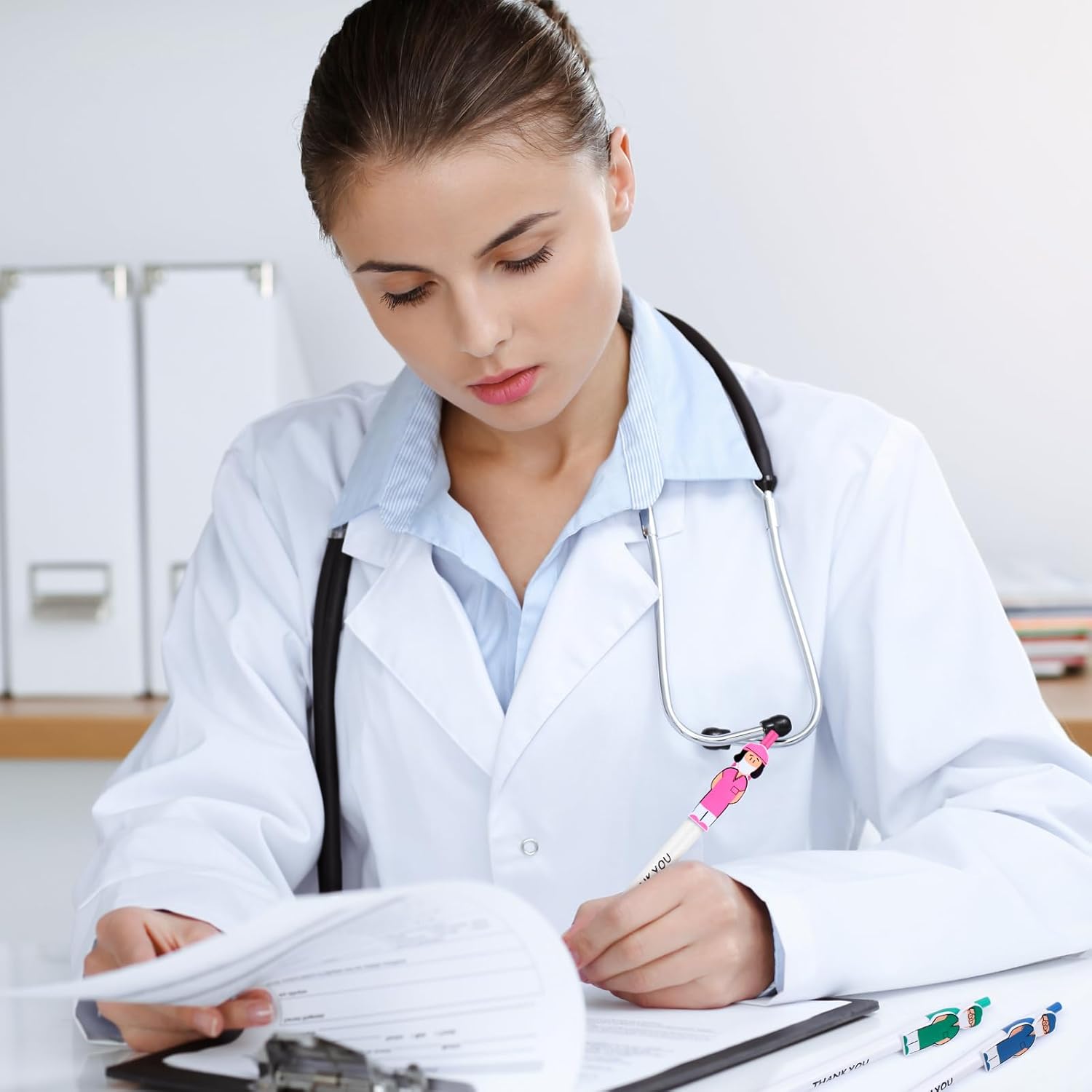 Contenuto della confezione: riceverai 42 penne motivazionali di apprezzamento per infermiere in 7 stili diversi, regali di ringraziamento assicurano che la quantità soddisferà le tue esigenze di utilizzo e sostituzione e puoi condividerle con la tua famiglia, amici e colleghi. Materiale affidabile: i regali delle penne da infermiera sono realizzati in plastica di alta qualità e inchiostro nero di alta qualità, abbastanza forti e robusti, comodi da tenere e non si rompono o deformano facilmente, il design della stampa li rende comodi da usare e le lettere sulla nostra penna per allattamento di ringraziamento possono essere salvate più a lungo, queste divertenti penne sono essenziali per il lavoro e lo studio. Dimensioni attraenti: queste penne da infermiera misurano circa 15 cm e punta da 1,0 mm (inchiostro nero), che possono essere facilmente tenute e lisce per scrivere, rendendo la tua esperienza di scrittura più confortevole, puoi facilmente metterle in astucci o sacchetti per cosmetici della maggior parte delle dimensioni, facili da riporre e organizzare. Design pratico: le penne a sfera per medici e infermieri hanno un design a clip per penna, possono agganciare le penne da infermiera su una tasca della camicia o sul taccuino e trasportarle facilmente, e simpatica penna a forma di infermiera divertente stampata "Grazie" per onorare medici dedicati infermieri e apprezzamento per il servizio di comfort e supporto che forniscono ogni giorno, queste affermazioni positive perfette per esprimere ammirazione e apprezzamento per ringraziare. Ampia applicazione: le nostre penne mediche sono perfette per esprimere gratitudine e benedizioni a colleghi, compagni di classe, insegnanti, amici e molto altro ancora. Le divertenti penne per infermiere sono anche regali creativi e premurosi per la settimana di apprezzamento del medico, la giornata degli infermieri, gli assistenti medici e gli operatori sanitari, la settimana di apprezzamento dell'infermiera, la cerimonia di laurea della scuola di medicina, la cerimonia di laurea della scuola di cura, il giorno del Ringraziamento, Natale e molto altro ancora. I regali per la settimana dell'infermiera sono anche un regalo significativo per medici e infermieri, il set di regali di apprezzamento può portare molto incoraggiamento a loro.