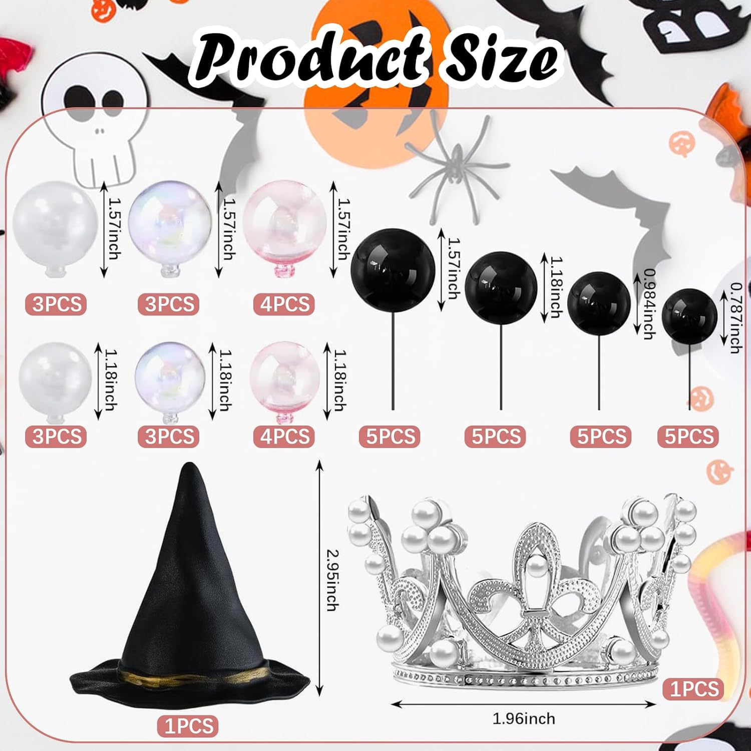 【Contenuto della confezione】: 1 cake topper a forma di corona + 1 cake topper a forma di cappello da strega + 40 mini palline. Il cappello nero da strega è alto circa 7,5 cm, la corona argentata è alta circa 5 cm, i palloncini neri sono alti circa 2~4 cm e le palline per decorare torte sono alte circa 3~4 cm. Diverse dimensioni possono soddisfare le diverse esigenze decorative. 【Materiale di alta qualità】: Il cappello da strega e la corona argentata sono realizzati in materiale plastico di buona qualità, mentre i mini palloncini sono realizzati in schiuma leggera. Sono resistenti e adatti per decorare torte o aree espositive per alimenti. 【Design speciale】: Classico cappello da strega a punta e corona argentata per un'estetica misteriosa. Aggiungi una classica pallina nera, bianca e rosa per esaltare lo stile di una festa o di un'esposizione di dessert. 【Ampia applicazione】: Questi adorabili topper a forma di strega sono perfetti per decorare torte, cupcake, gelati, frutta e altri dessert. Abbinali ad altre decorazioni di compleanno per creare un vivace momento di festa sul tuo tavolo dei dolci. Che festa da strega! 【Perfetto per ogni occasione】: Ideale per feste di compleanno, Halloween, feste a tema, matrimoni, baby shower o qualsiasi evento a tema magico; questi topper per torta conquisteranno i tuoi ospiti e renderanno la tua festa indimenticabile.