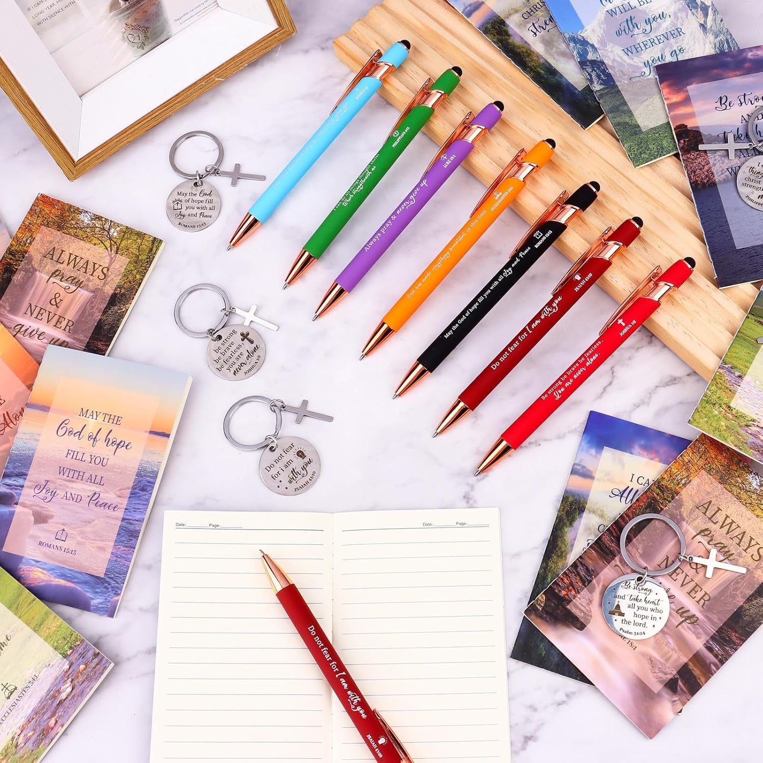 Contenuto della confezione: confezione da 48 pezzi. Include 16 penne bibliche + 16 quaderni + 16 portachiavi. Ci sono molti tipi di copywriting e stili. Sono davvero dispiaciuto, non intendeva offesa, ma credo che Gesù mi perdonerà! SEI TUTTI GENTI. Design unico della Bibbia: questo set cristiano viene fornito con bellissimi colori, testo ispiratore e caratteri interessanti, significativi e positivi; sono facili da catturare l'attenzione degli altri e portano facilmente un buon umore, rendendo la vita o il lavoro più interessante; diverse citazioni ispiratrici daranno incoraggiamento nella tua vita quotidiana e ti incoraggeranno a mantenere un atteggiamento positivo nei confronti della vita. Dimensioni ragionevoli: le dimensioni giuste e il design leggero sono facili da trasportare e riporre; si possono trasportare facilmente in altri luoghi, il blocco note con citazione della Bibbia misura circa 8,5 x 12 cm, la penna a sfera Christian Scritture misura circa 14,3 x 1 cm. Materiali di alta qualità: i quaderni religiosi sono realizzati in carta di qualità, sicuro e liscio al tatto; le penne motivazionali della Bibbia sono realizzate in metallo di qualità, affidabile e robusto, fornendo una piacevole esperienza di scrittura. Ottimo regalo: può essere utilizzato come regalo cristiano per la festa della mamma per chiesa, regali cristiani per la casa o piccoli regali cristiani per insegnanti o amici.
