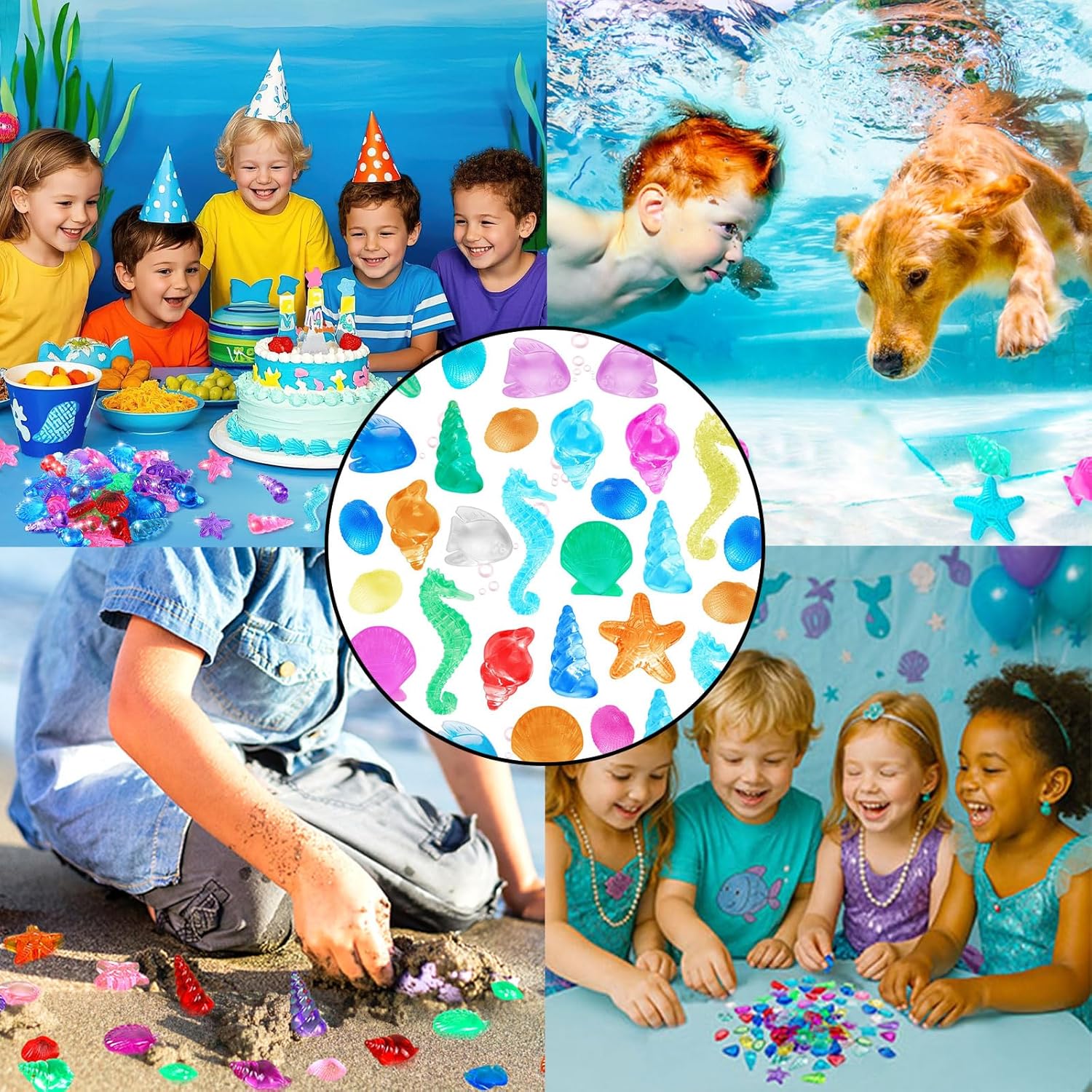 Giocattolo per piscina: 1 scatola con 45 gemme da immersione in diversi colori e forme. Le molteplici tonalità e forme di queste pietre da immersione sono progettate per catturare l'attenzione del vostro bambino e rendergli ancora più divertente in piscina. Materiali di alta qualità: le pietre da immersione realizzate in acrilico hanno bordi lisci, leggere ma resistenti, resistenti al calore, non stingono e riutilizzabili. Stimola l'interesse dei bambini per il nuoto e le immersioni: quando la luce del sole colpisce l'acqua, le gemme brillano e brillano, risvegliano la curiosità dei bambini e li stimolano a esplorare giocosamente in acqua, favorendo il loro piacere di nuotare e fare immersioni. AMPIA APPLICAZIONE: Immersione Gemme ideali per decorare feste in piscina all'aperto, mostre a tema mare, cacce al tesoro all'aperto, caccia di pietre preziose per bambini, addestramento subacqueo, giochi in spiaggia e molto altro ancora, promuovendo il legame genitore-figlio. Il set di giocattoli per piscina può anche decorare vasi, decorazioni per interni, vetrine e decorazioni da parete e dare ai vostri spazi abitativi colori vivaci. Il regalo perfetto: i gioielli da immersione intensificano la gioia delle avventure in piscina con i bambini. Sono ideali come regali per feste, compleanni, Halloween, Natale e altre occasioni e regaleranno sorprese gioiose.
