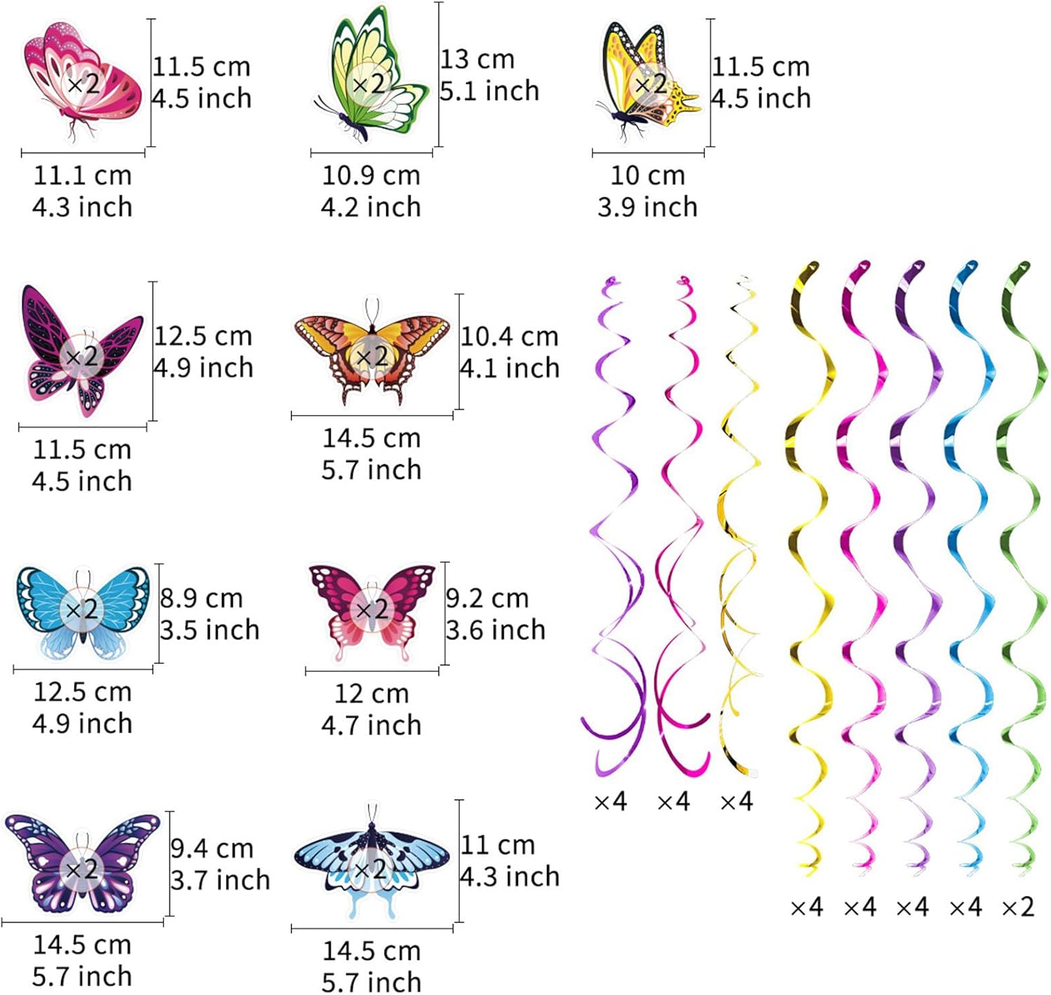 Per casalinghe, adulti e appassionati d'arte che amano aggiungere un tocco unico alle decorazioni della casa e alle feste Adatto per l'uso in salotti, camere da letto, studi o qualsiasi spazio interno, queste farfalle da appendere migliorano pareti, porte, finestre e espositori, infondendo il tuo ambiente con personalità e fascino artistico Che si tratti di feste di compleanno, baby shower o riunioni di festival, queste decorazioni a farfalla portano un colore e fascino, rendendo un'aggiunta essenziale al tuo kit di strumenti per la pianificazione degli eventi Realizzate in carta e PVC, queste decorazioni robuste e portatili sono facili da installare e resistenti all'usura, garantendo che rimangano un punto fermo nella tua collezione di forniture per feste Trasforma lo spazio delle tue feste con la decorazione a spirale da appendere a farfalla, presenta colori vivaci e intricati disegni a farfalla che creano un ambiente eccellente per qualsiasi celebrazione