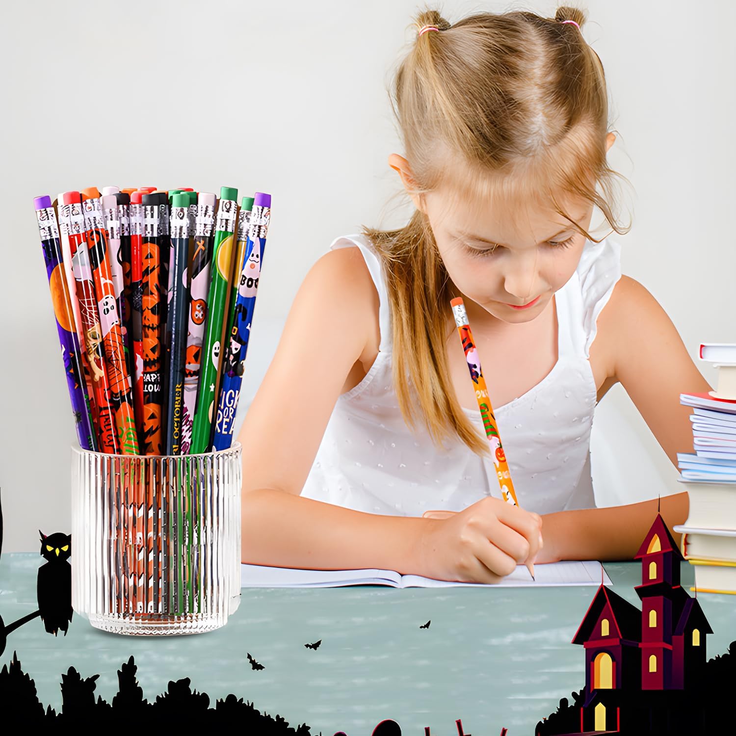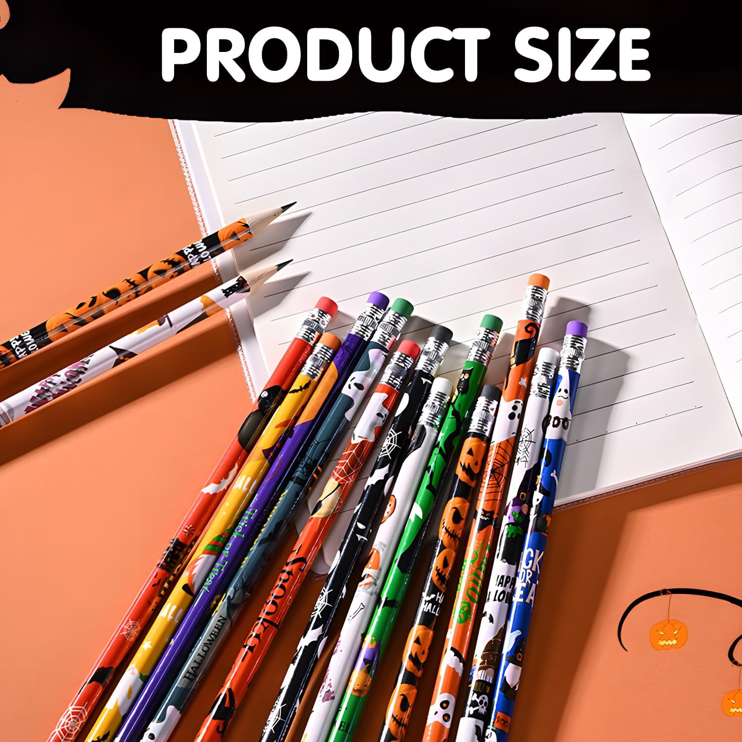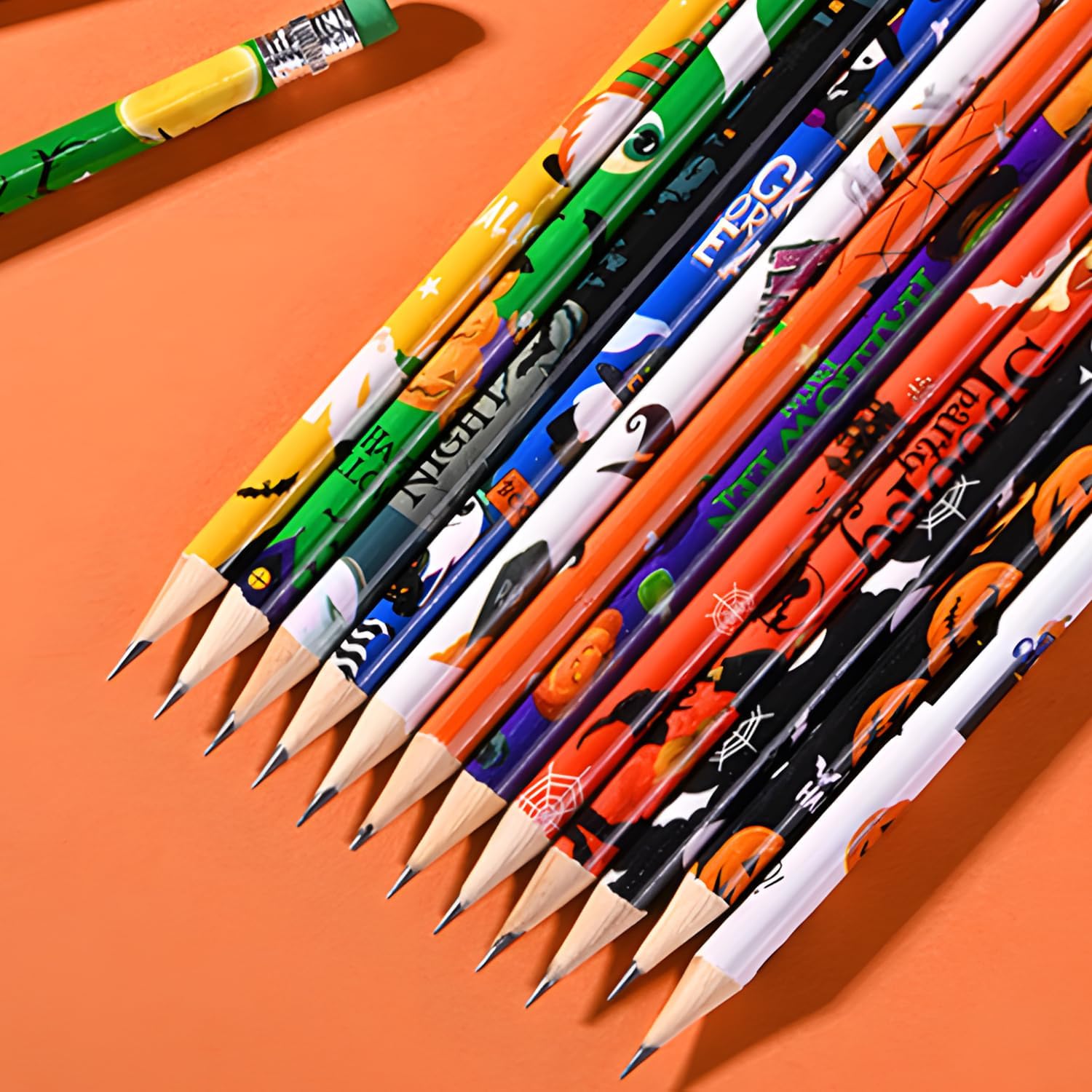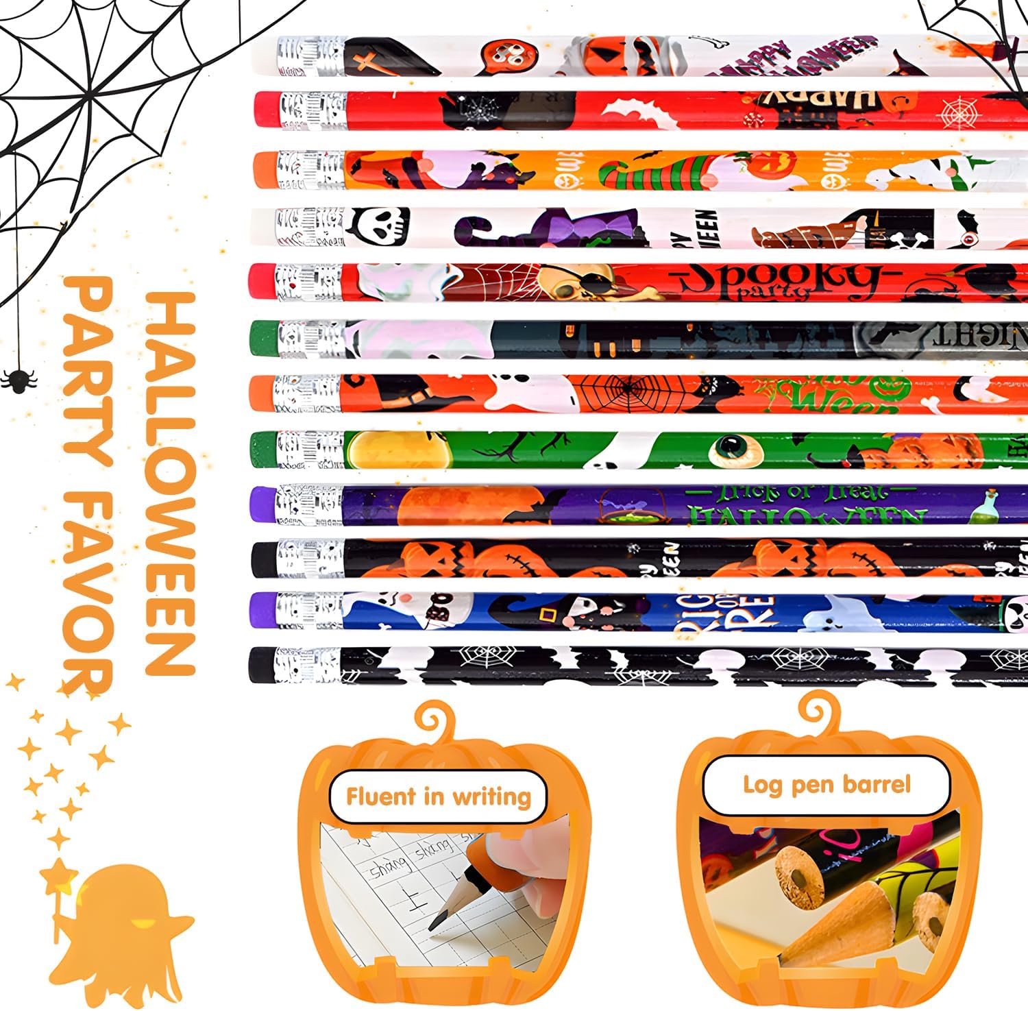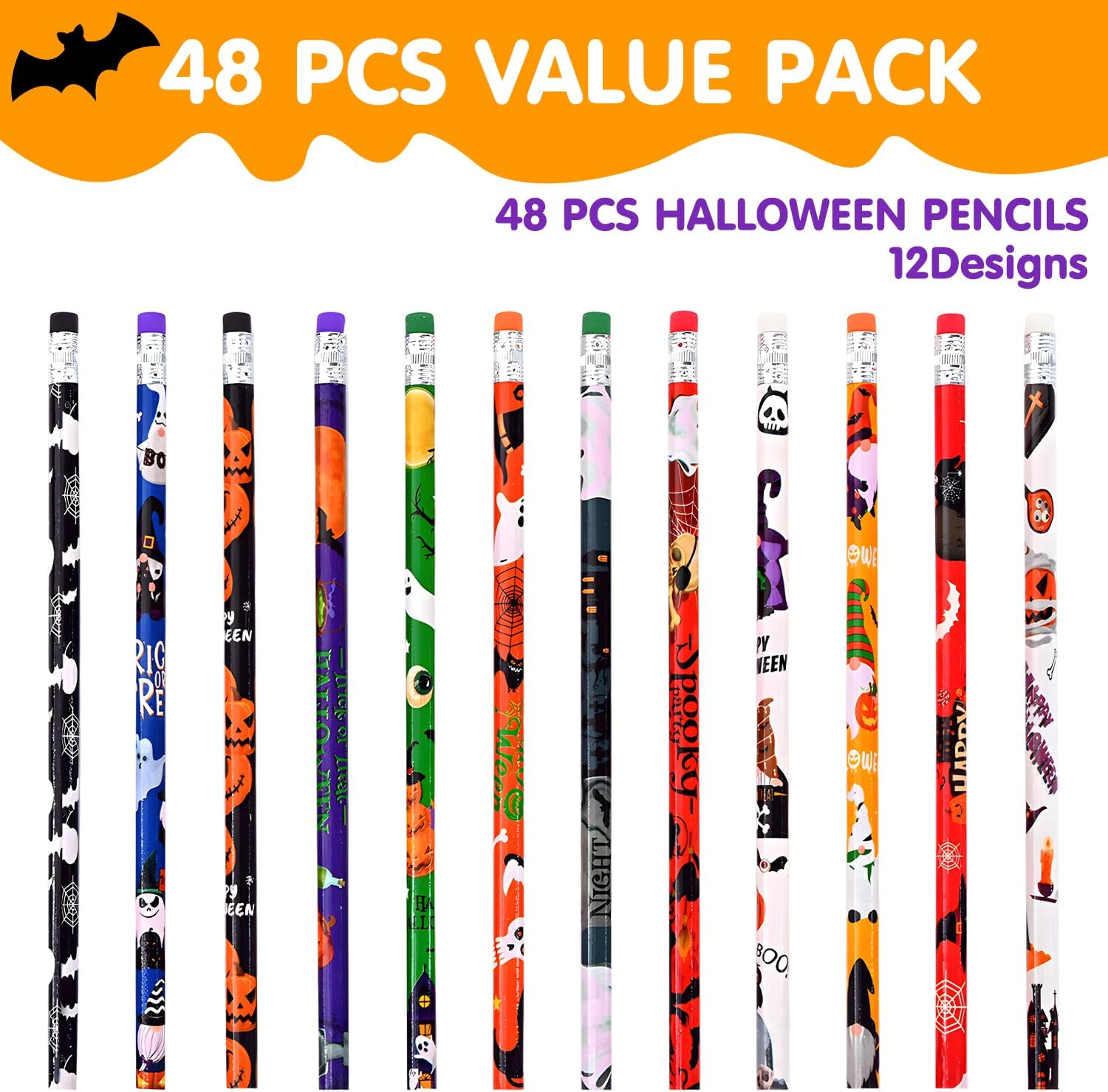 Set di 48 matite con 12 motivi di Halloween: il vostro set di matite MOTIBACK 48 matite con gomma da cancellare in 12 motivi spaventosi (come zucca, pipistrello, strega). Perfetto come materiale scolastico per bambini, imbottitura per sacchetti di Halloween o regalo di Halloween sostenibile. 【Ideale per i bambini: impugnatura morbida e sicuro】 Appositamente progettata come penna per imparare a scrivere e matita per bambini. Impugnatura morbida antiscivolo per una scrittura senza fatica, universale per mancini e destrorsi. Materiali atossici, sicuri per i bambini. Mina HB di alta qualità e durevole: realizzata in legno ecologico con mina HB infrangibile. Garantisce una scrittura liscia, facile da affilare e cancellare. Include gomme su ogni penna. Ideale come alternativa alle matite 2B per tratti più intensi. Perfetto per regali di Halloween e feste: come alternativa senza caramelle per trucchi o trattamenti, feste di Halloween, premi di classe o sacchetti regalo. Queste penne per Halloween promuovono la creatività durante la scrittura e la pittura. Pratica confezione grande e versatile: la grande quantità (48 pezzi) è perfetta da condividere con amici, familiari o gruppi di studenti. Versatile per scuola, ufficio e come regalo di Halloween per bambini.