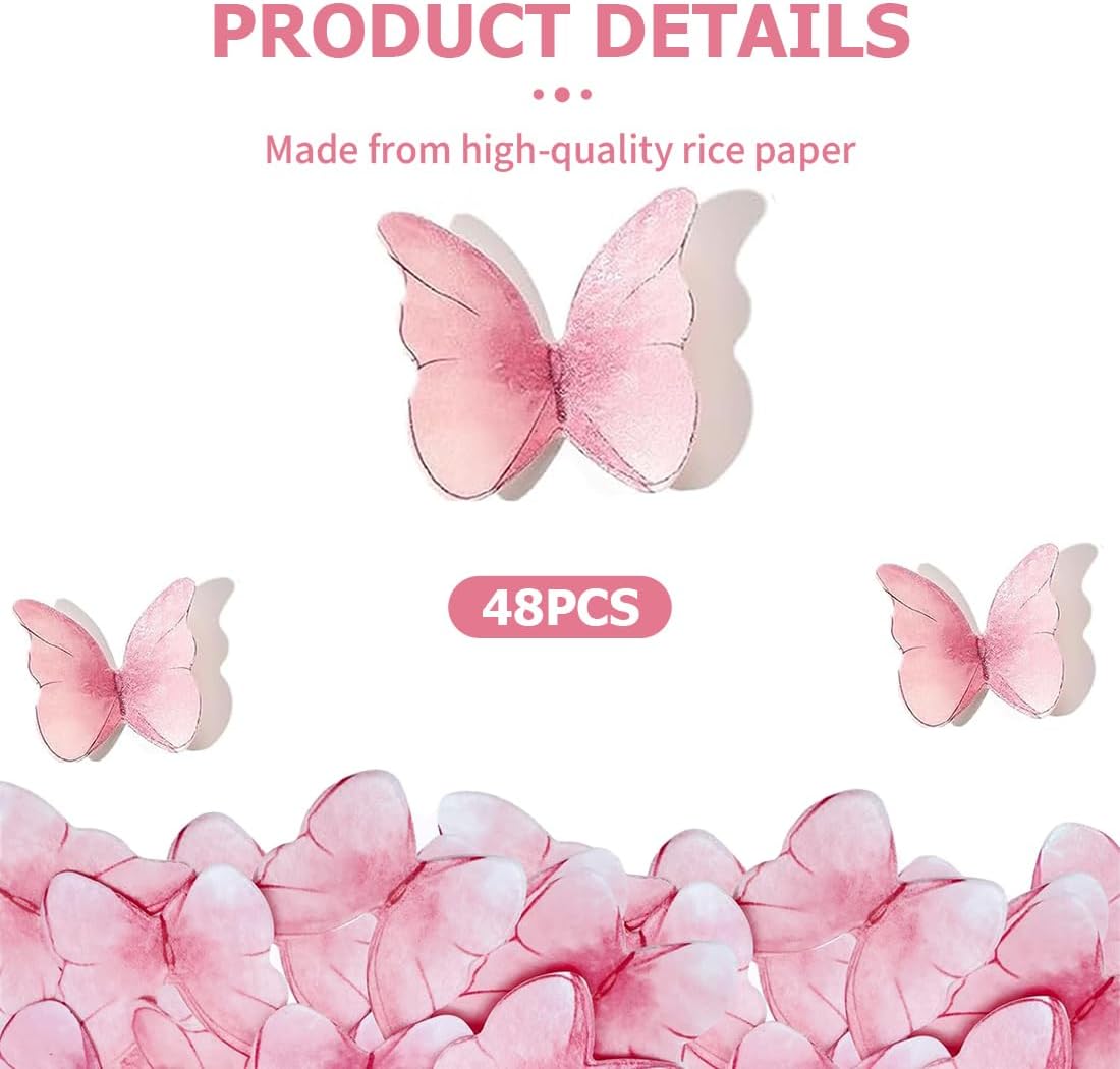 Sicurezza dei materiali: realizzate con carta di riso glutinoso di alta qualità, queste decorazioni commestibili possono essere utilizzate in tutta sicurezza per adornare torte, cupcake e altri prodotti da forno. Migliorano l'aspetto visivo delle vostre creazioni senza compromettere la sicurezza alimentare. Quantità generosa: ogni set contiene 48 decorazioni a forma di farfalla, offrendo una quantità sufficiente per soddisfare diverse esigenze di pasticceria. Che si tratti di decorare torte di grandi dimensioni o tanti piccoli dolcetti, potrete creare senza sforzo un'atmosfera ricca di fascino festivo. Superbo effetto decorativo: il delicato disegno della farfalla rosa è elegante e grazioso. Quando viene posizionato su torte, cupcake o altri dolci, ne esalta immediatamente l'aspetto visivo, rendendo il cibo più invitante e aggiungendo un'atmosfera romantica e dolce a feste, compleanni e altre occasioni. Utilizzo versatile: ideale per decorare prodotti da forno a feste di compleanno, matrimoni, tè pomeridiani e altro ancora. Che si tratti di dolci fatti in casa o di creazioni di pasticcerie professionali, queste decorazioni esaltano la consistenza e l'aspetto visivo complessivo. Facile da applicare: basta posizionare le farfalle direttamente sulla crema, sulla glassa o su altre superfici. Non richiede tecniche complesse, anche i principianti possono ottenere rapidamente eleganti effetti decorativi.