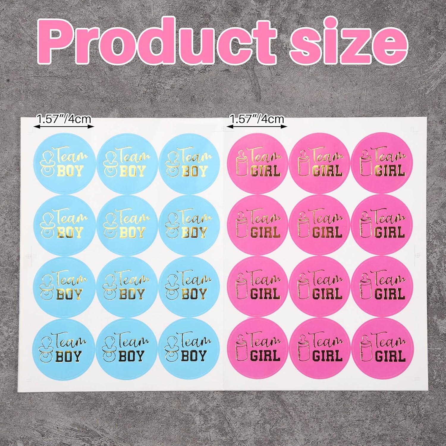 INCLUDE 48 FANTASTICI - viene fornito con 24 adorabili blu "Team Boy" e 24 adorabili rosa "Team Girl", design unico con bellissimi colori vivaci che rendono la tua festa più divertente! Ciascuno è perfettamente dimensionato a 1,57 pollici di diametro. MULTIUSO: puoi combinare questi con altre decorazioni di rivelazione di genere come cannone di coriandoli, palloncini, album di ritagli, banner sullo sfondo, perline, topper per cupcake, scatola, polvere, oggetti di scena per foto, caramelle , piatti, tovaglioli, ecc. Rendi la tua festa più interessante e divertente ALTA QUALITÀ - ALTA QUALITÀ - Questi sono di alta qualità stampati su carta adesiva di alta qualità con colori vivaci, gli sono molto facili da staccare e incollare. Questi di rivelazione di genere possono essere attaccati al petto, alle maniche, alla fronte, alle , incollati su qualsiasi superficie, ecc. GIOCHI EMOZIONANTI -- Lui o lei? Chiedi ai tuoi ospiti di giocare a giochi di previsione di rivelazione di genere. Chiedi loro di ottenere un adesivo blu per Team o un adesivo rosa per Team Girls. Metti i loro voti su un tabellone e vedi lo indovinerebbe . Inoltre, rendono perfette le decorazioni di invito per rivelare il genere se stai annunciando il sesso del tuo bambino in anticipo! Speriamo che adorerai i nostri per rivelare il bambino.