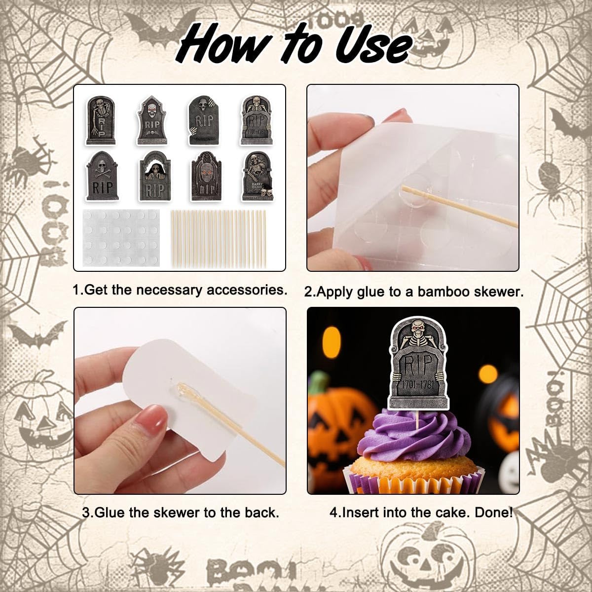 🍰【Decorazione per torta di Halloween】 Riceverai 24 Decorazioni per Torte di Halloween, inclusi 8 design, 3 per ciascuno, e 24 mini palline di gelato nere. La quantità e lo stile sono sufficienti per soddisfare le tue esigenze di decorazione di Halloween. 🍰【Alta qualità】 Le Halloween Torta Toppers sono realizzate in carta di alta qualità, con bellissimi motivi che non sbiadiscono, bordi lisci senza sbavature, sicure e affidabili, non si deformano o si rompono facilmente, leggere e portatili. Le palline sono realizzate in plastica. Dopo la festa, basta una semplice pulizia e potrai riutilizzarlo. 🍰【Design a tema lapide】 Le decorazioni per cupcake di Halloween a tema lapide utilizzano 8 diversi design a forma di lapide. Queste decorazioni per cupcake di Halloween sono spettrali e stravaganti, il che le rende una decorazione meravigliosa per una festa di Halloween spettrale e perfette come oggetti fotografici per migliorare l'atmosfera festiva. 🍰【Decorazione fai da te】 Questo Halloween Cupcake Topper include biglietti con motivo a lapide, adesivi a pois e bastoncini di bambù, che richiedono un assemblaggio manuale. Il montaggio è semplice: basta attaccare lo stuzzicadenti e gli adesivi sulla decorazione. 🍰【Ampiamente usato】Queste Halloween Party Torta Decor sono adatte a varie occasioni, come decorazioni per torte a tema cimitero, decorazioni di compleanno a tema horror, feste in maschera, feste in casa stregata e altre feste a tema. Puoi anche usarle su gelato, frutta, biscotti e altri dessert.