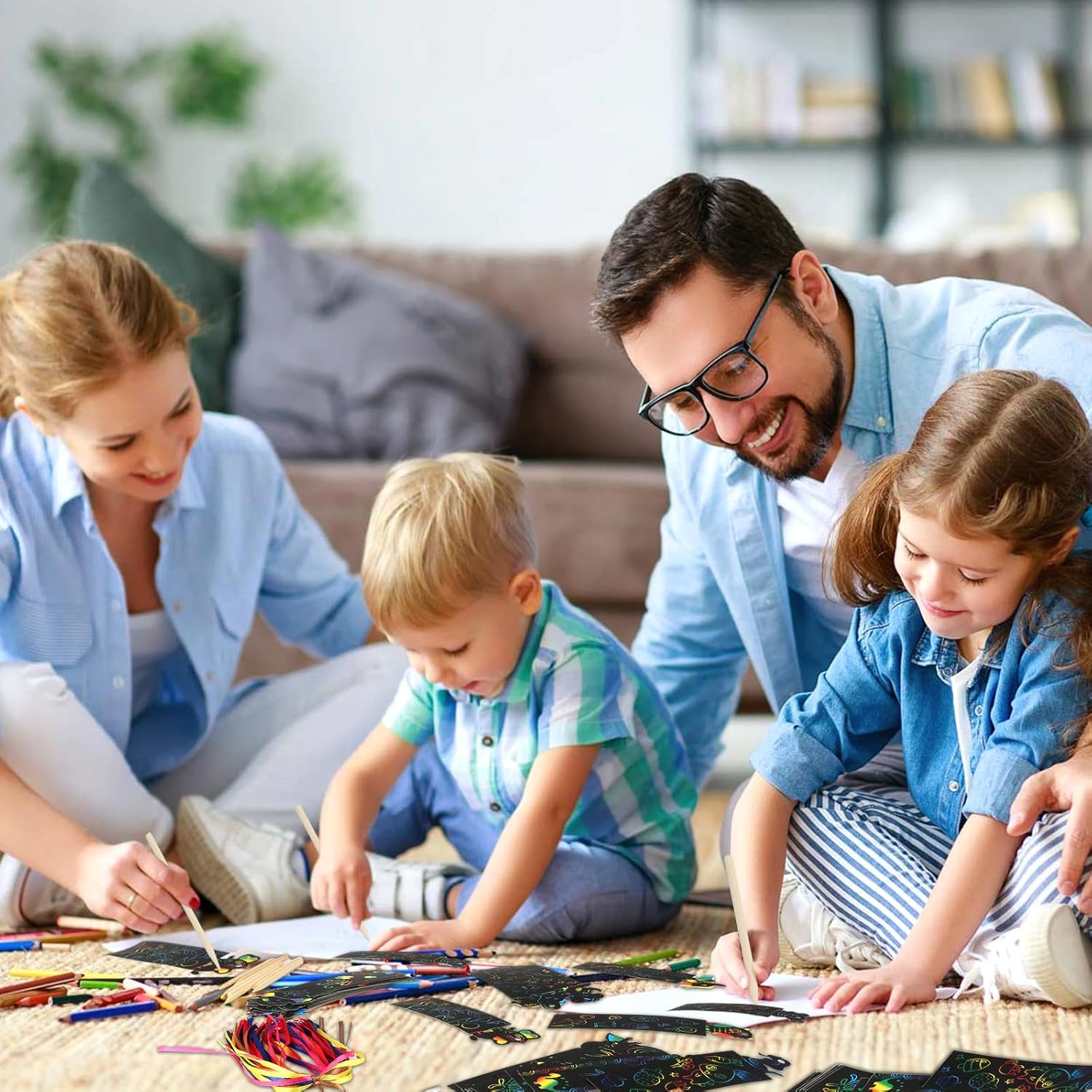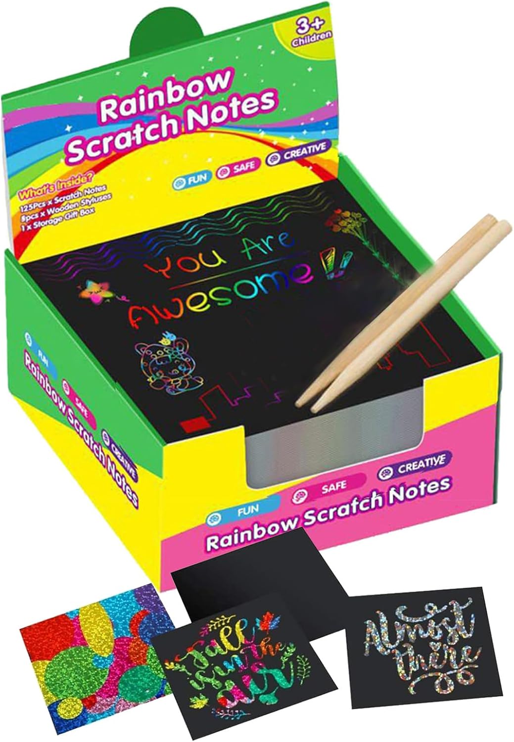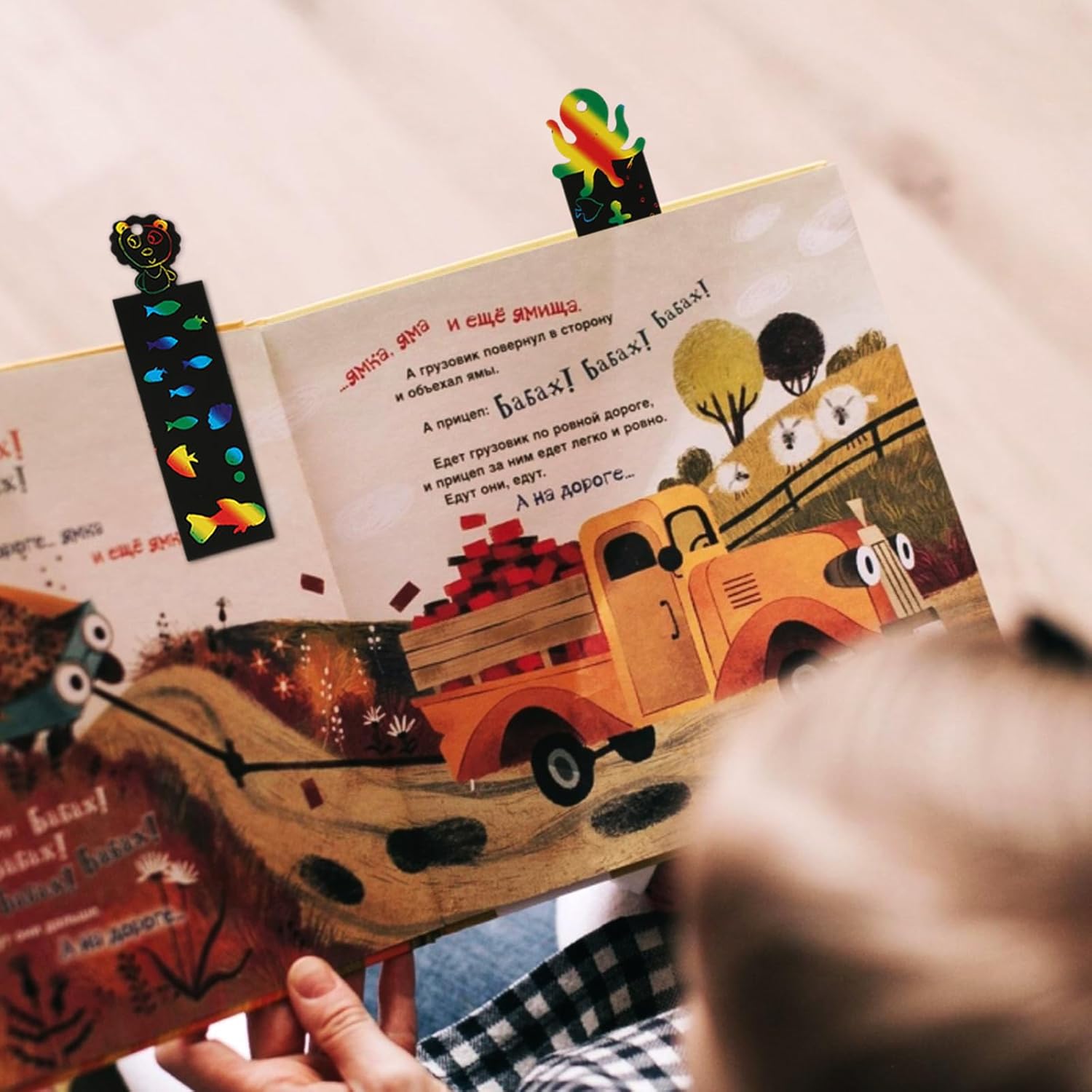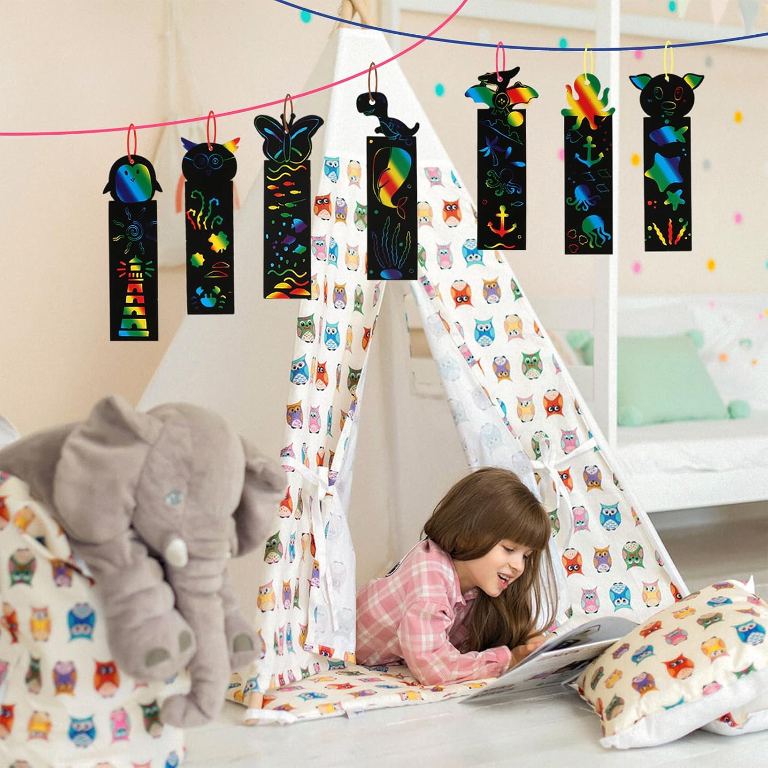 Set di carta tiragraffi: riceverete 48 fogli con segnalibri arcobaleno creativi, 36 motivi di animali con motivi vivaci e interessanti, 48 corde colorate e 24 bastoncini di bambù. Puoi facilmente grattare colori vivaci e bellissimi motivi. La quantità è sufficiente per soddisfare le esigenze quotidiane dei bambini. Materiale sicuro: la carta antigraffio per bambini è realizzata in cartone ecologico, che è sano, inodore, insapore, durevole e non facile da strappare, in modo da poter essere sicuri di poterlo utilizzare.La superficie è rivestita di nero e la parte inferiore è in un bellissimo colore arcobaleno. Il bastone di bambù è realizzato in bambù naturale, sicuro, liscio, senza sbavature, non fa male alla mano, leggero, comodo da usare. Facile da usare: tutto quello che dovete fare è graffiare la superficie del colore nero opaco con un bastone di bambù e vedrete i colori vivaci dell'arcobaleno sottostante. I bambini possono anche disegnare o scrivere sull'immagine del graffio. E c'è un piccolo foro su ogni graffio, in modo da poter utilizzare un nastro per appendere il graffio come decorazione. Puzzle fai da te: i segnalibri personalizzati possono coltivare l'interesse dei bambini nella pittura, promuovere la loro pazienza, migliorare la loro attenzione e immaginazione, in modo che ogni bambino possa graffiare un'immagine meravigliosa e creare le proprie opere d'arte. I bambini possono divertirsi a graffiare e dipingere mentre lavorano e colorano. Versatile: i bambini possono progettare tutti i propri segnalibri per creare ricordi duraturi. Le immagini per bambini possono essere utilizzate per creare biglietti da regalo per feste, scarabocchi, blocchi per appunti, progetti fai da te, lezioni artistiche, progetti scolastici e attività in classe, regali perfetti per ragazzi e ragazze a Natale, Pasqua, Halloween.