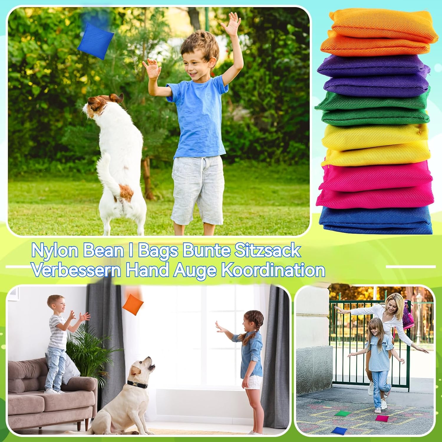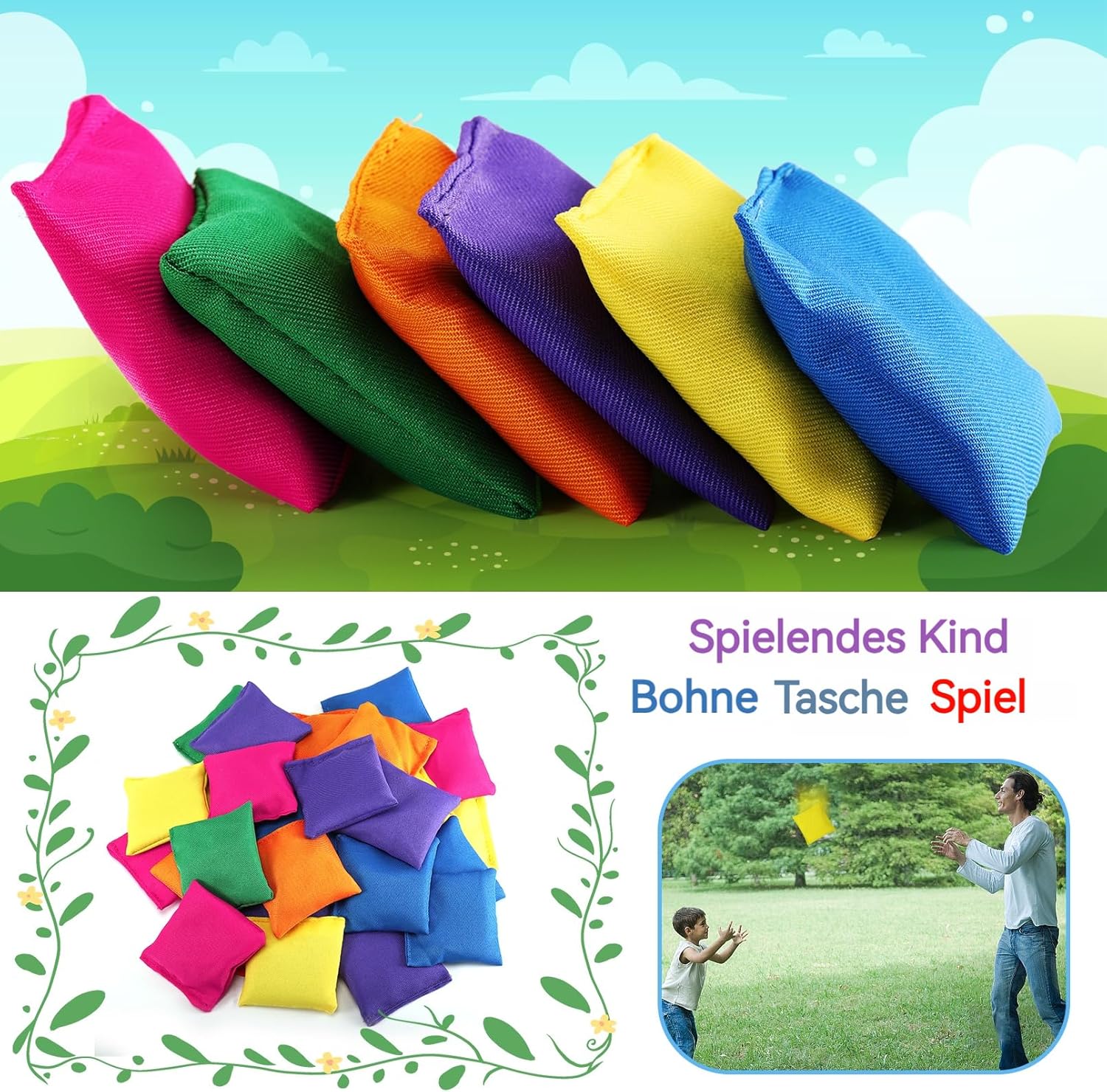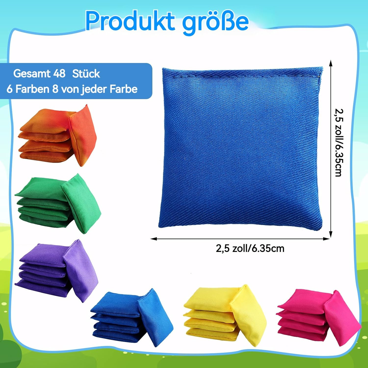 Colorful Bean Bags: La confezione include 48 sacchetti per fagioli, varietà di colori, tra cui giallo, arancione, rosa, viola, blu, verde. Enough quantity to meet your game needs and are perfect for helping kids join the fun. Qualità durevole: le borse colorate a forma di cornhole sono realizzate con una copertura in tela resistente, che non è facile da staccare o strappare, sicure e affidabili, pronte per essere tosate. Filled with ceramic granular materials, fit for all weather. Cultivation of Coordination Ability: aiuta a sviluppare la mano, coordinare gli occhi con queste borse per fagioli educative mentre si diverte allo stesso tempo e può anche esercitare il loro corpo per mantenere la salute. Giochi divertenti: queste mini borse per fagioli sono ideali per giochi in famiglia, giochi per feste o giochi di squadra. Sono perfetti per giocare in salotto, balconi, lawn, campi da spiaggia e scuola. Portate le borse per fagioli in qualsiasi luogo per un divertimento senza fine. Leggero: ogni borsa per fagioli è di 100 g, leggera, colorata e attraente e facile da trasportare. It is easy for your kids to pick it up and throw it.