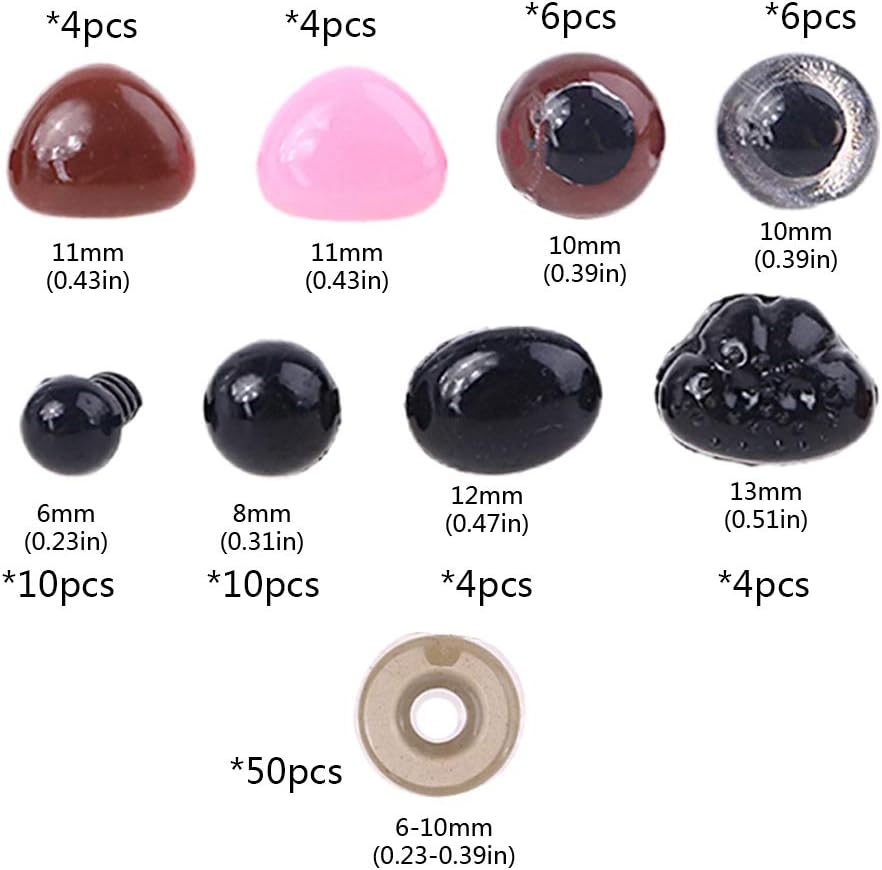 La confezione include: 6 occhi neri da 10 mm, 6 occhi marroni da 10 mm, 10 occhi neri da 8 mm, 10 occhi neri da 6 mm, 4 da 11 mm, 4 da 11 mm, 4 marroni da 13 mm, neri 4 da 12 mm, 50 rondelle da 6-10 mm ❉【Qualità】 Questi occhi e sono buoni sono sicuri da usare Ampia gamma di utilizzi: una buona selezione per tutti i tipi di fatti a mano, per realizzare bambole, giocattoli di peluche Facile da usare: gli occhi neri sono facili da montare, inserire gli occhi nei fori aperti e installare rondelle dall'interno; non sono necessari strumenti professionali, facili da installare da appassionati di tutte le età. Le rondelle possono far cadere gli occhi Suggerimento: queste rondelle sono molto resistenti, basta scegliere le rondelle giuste e posizionarle dove si desidera. piccole parti, non per bambini sotto i 3 anni Occhi per la creazione di giocattoli morbidi/giocattoli lavorati a maglia bambole animali di peluche