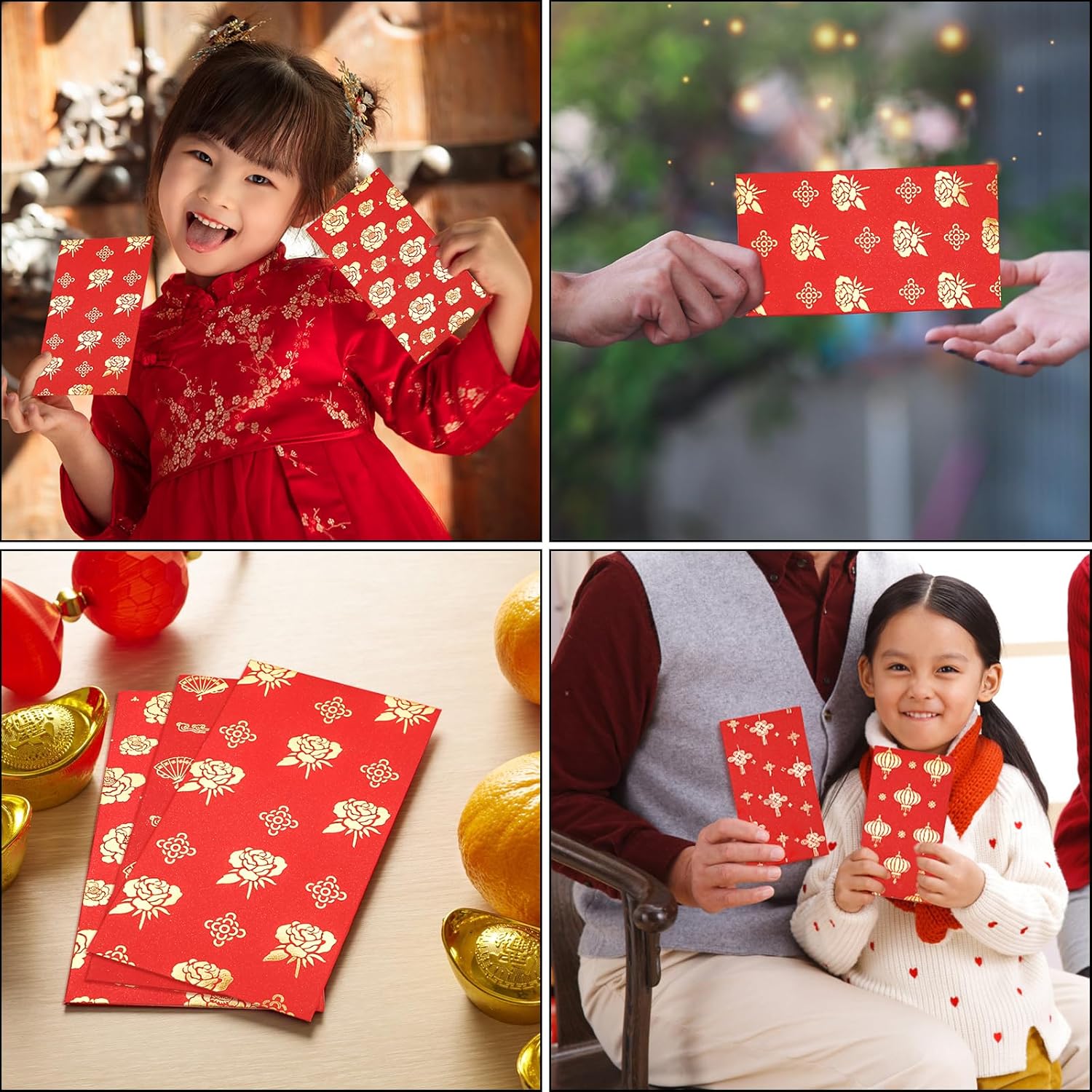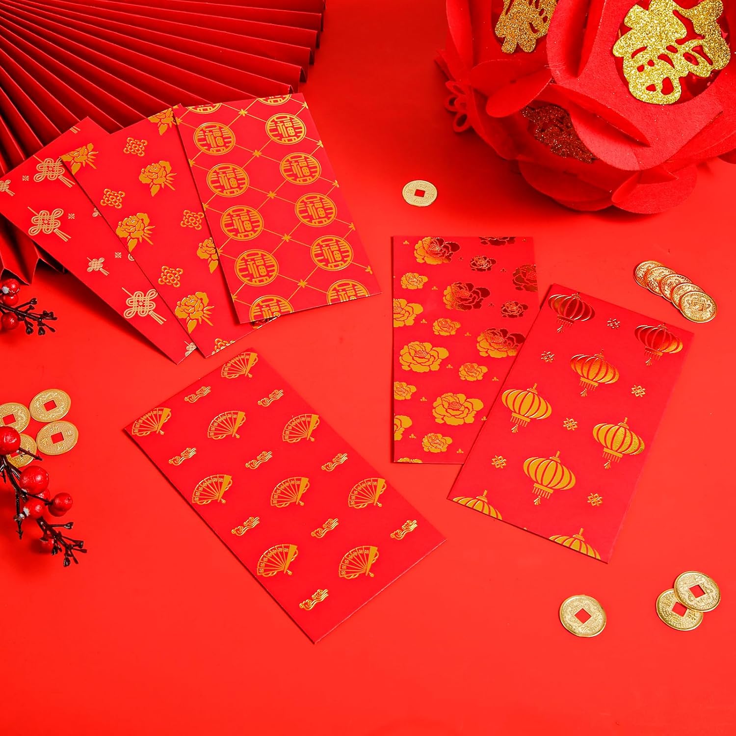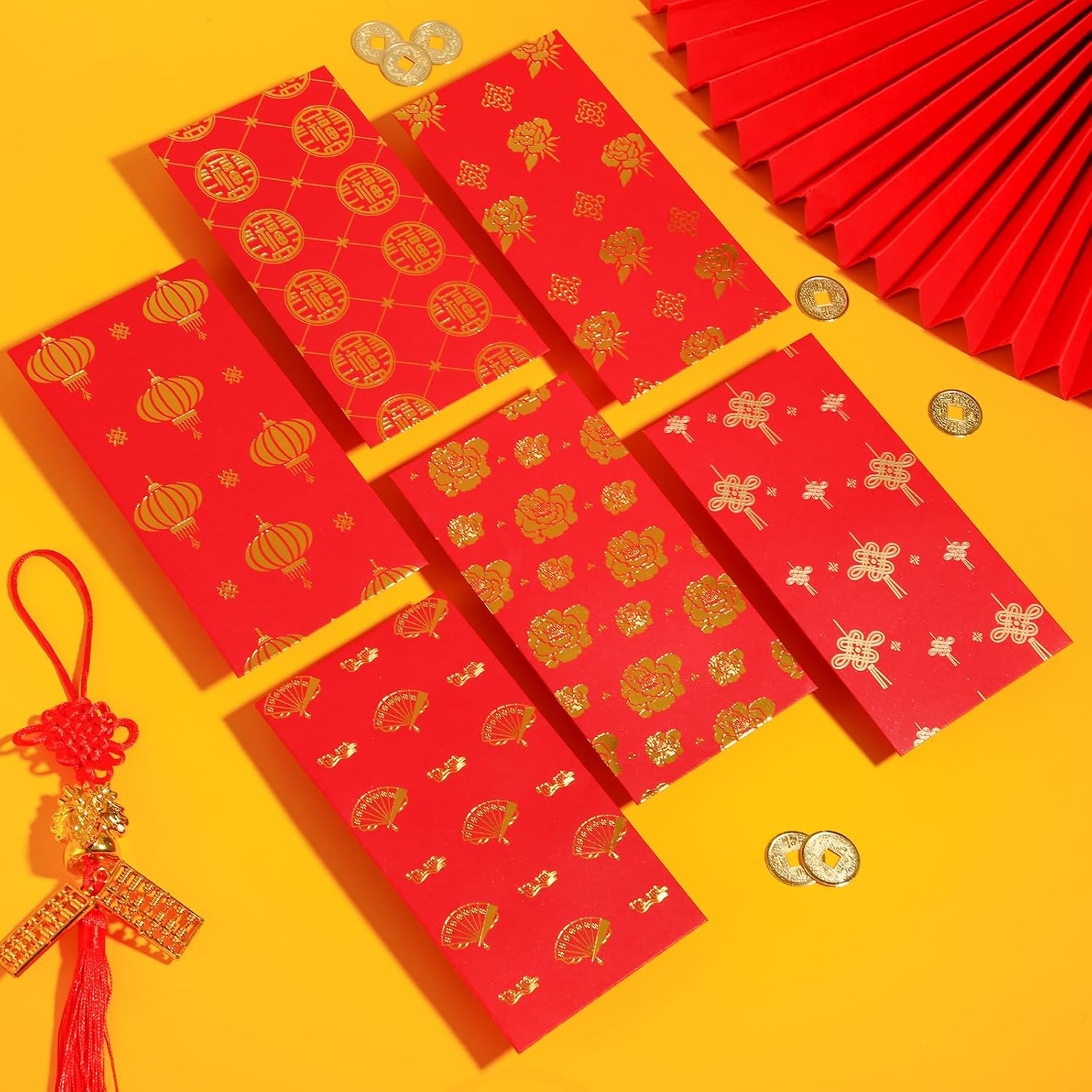 Contenuto del prodotto: riceverai 48 pezzi di buste rosse cinesi con 6 design, 8 di ciascun design, quantità sufficiente per soddisfare le tue varie esigenze per diverse occasioni. Materiale premium: la nostra involucro di denaro fortunato è realizzato in materiale di carta di qualità premium, confortevole da toccare e affidabile, non facile da rompere o strappare.La foglia d'oro brillava sulla carta.L'apertura è sigillata inserendo nella scanalatura, quindi non è necessario alcun nastro o colla. Dimensione del prodotto: la busta rossa misura circa 9x16,8 cm, dimensioni adeguate per contenere banconote senza pieghe. Design classico: queste buste rosse cinesi sono decorate con elementi dorati, come peonie, lanterne, fan, nodi cinesi, ecc. Ogni modello contiene emozioni cinesi, augurando al destinatario buona fortuna.Il retro è vuoto per includere il tuo messaggio personale e personalizzato. Ampia applicazione: le nostre buste rosse sono adatte per il capodanno cinese, il Natale, i matrimoni, le feste nuziali, i compleanni, le cerimonie di laurea e altre occasioni, esprimendo i tuoi più profondi desideri per la tua famiglia e i tuoi amici.