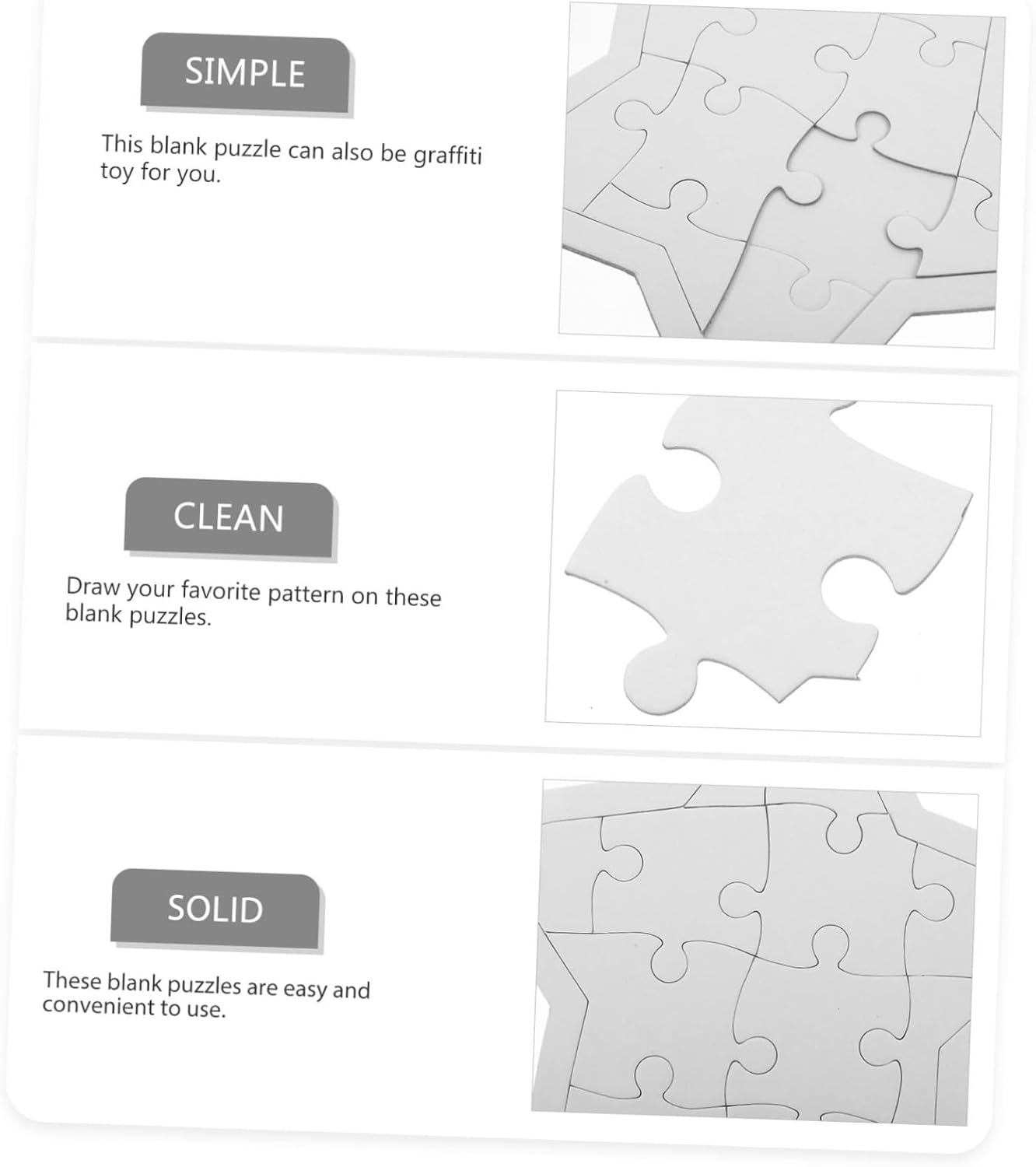 Materiali sicuri: questi puzzle vuoti sono realizzati con materiali cartacei, garantendo la sicurezza dei , molto robusti, materiali artigianali fai da te, giocattolo puzzle Disegna puzzle vuoti: promuove la concentrazione, la pazienza, le capacità di risoluzione dei problemi, l'impegno in attività artistiche, puzzle vuoti giocattolo Facile da usare: leggero e portatile, il che lo rende comodo da trasportare e utilizzare ovunque per i , puzzle vuoto fai da te, puzzle vuoto Utilizzo versatile: ideale per casa, scuola o viaggi, offre un intrattenimento per i nell'uso quotidiano, puzzle vuoti artigianali, prodotti fai da te in bianco Tavola vuota: presenta una dimensione, offrendo ampio spazio per l'espressione creativa, puoi usare facilmente questi puzzle vuoti, puzzle vuoti, puzzle vuoti artigianali