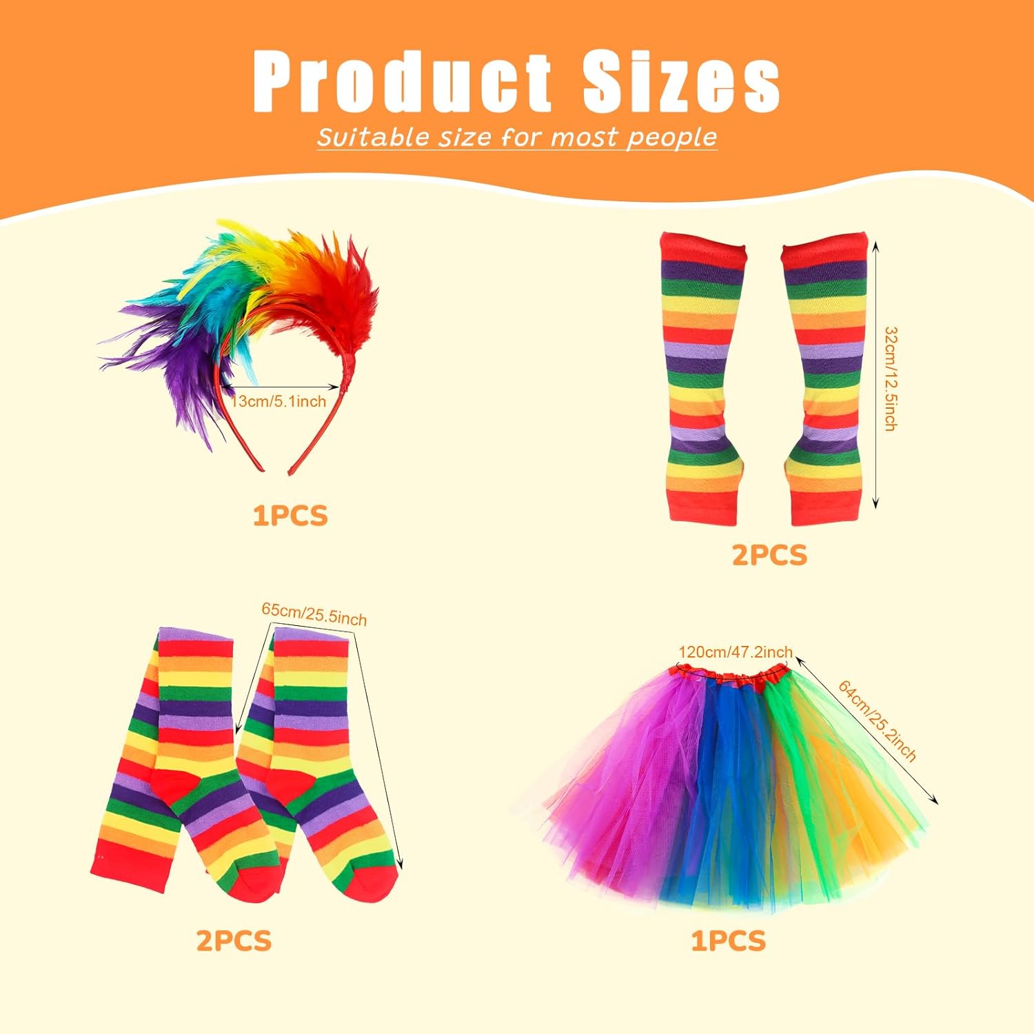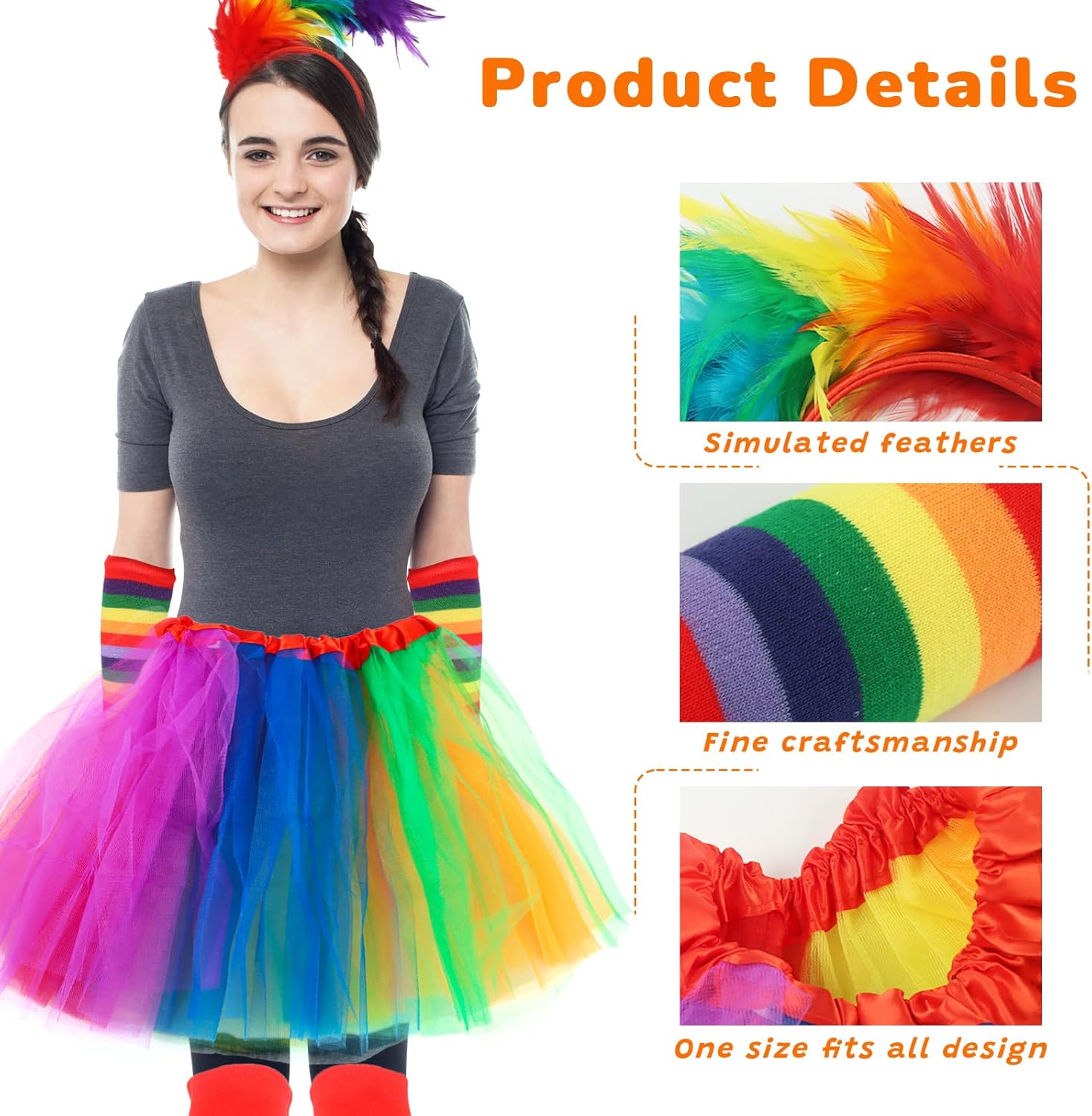 ❤️🔥【Carnevale Cosplay Costume:】Riceverete un costume da donna arcobaleno, il set comprende una gonna di tulle arcobaleno, una fascia di piume colorate, calze al ginocchio arcobaleno e guanti senza dita. Adottando un design a blocchi di colori arcobaleno ad alta saturazione, con piume e altri elementi di moda, è facile creare un look di carnevale accattivante e diventare il fulcro della festa. ❤️🔥【Alta Qualità:】Tessuti selezionati di alta qualità in poliestere + spandex, squisita fattura, delicati sulla pelle, morbidi e aderenti al corpo, leggeri e traspiranti con elasticità, movimento libero senza vincoli, adatti per lunghi balli o carnevale all'aperto. ❤️🔥【Abbigliamento Classico:】Tutù arcobaleno + fascia per capelli con piume + polsini arcobaleno + calzettoni arcobaleno, look classico da discoteca al neon. Dopo la festa, questa gonna di tulle arcobaleno può essere indossata da sola con altri abiti, sia come abito quotidiano che come abito da ballo o da vacanza, passando facilmente da uno scenario quotidiano, al festival, alla vacanza e ad altri scenari. ❤️🔥【Design Unico:】Ci sono 7 combinazioni di colori: rosso, giallo, arancione, verde, verde, cestino e viola, con cuciture ordinate e solide e doppie cuciture rinforzate. Il leggero copricapo di piume è comodo da indossare e si abbina perfettamente al tutù per garantire la durata e migliorare il senso generale di glamour, aggiungendo un tocco di fascino alle vostre attività di festa. ❤️🔥【Vintage Rainbow Costume Set:】Taglia media, si adatta alla maggior parte delle curve del corpo delle donne asiatiche, e il design è molto accattivante. Adatto a tutti i tipi di festival e feste. Come la festa a tema clown, cosplay, costumi di carnevale, fancy dress, stile discoteca al neon, gli abiti da ballo, vacanze in viaggio, performance in spiaggia e così via.