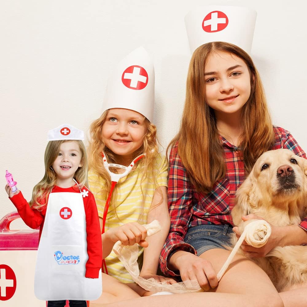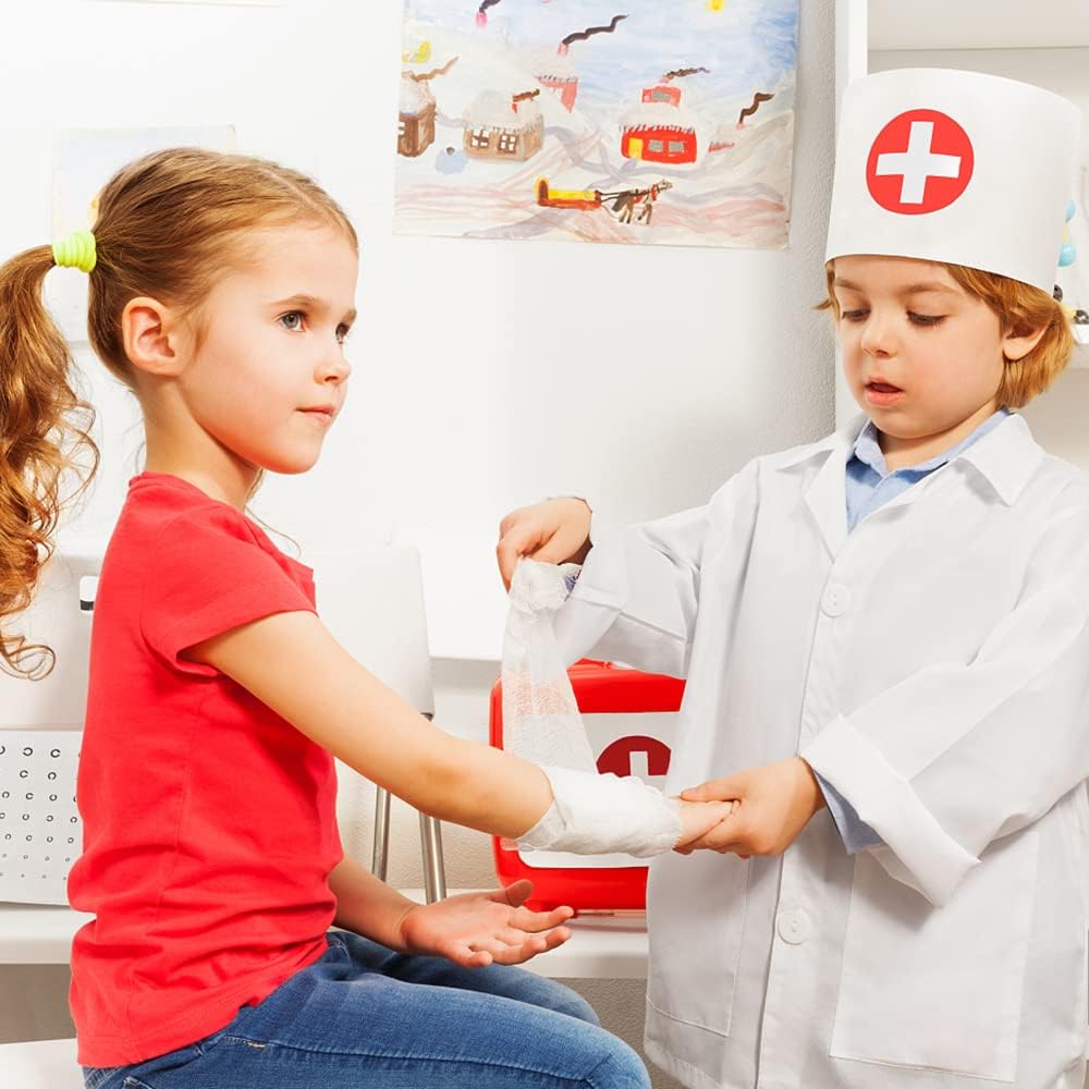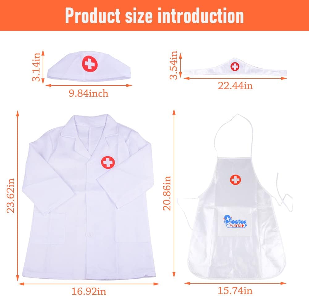 Morbido e Delicato Sulla Pelle Costume da Medico per Bambini è leggero, traspirante, morbido e delicato sulla pelle. I bambini non si sentiranno soffocanti quando lo indossano, tengono i bambini a proprio agio mentre giocano. Design Dalla Forma Realistica Costume da Medico per Bambini contiene 1 vestito da dottore, 1 grembiule da infermiera e 2 berretti. I bambini possono usare questo Costume da Medico per Bambini per scatenare la loro immaginazione e giocare a giochi da dottore con amici o familiari. Realizza il sogno del dottore di tuo figlio. la Festa Deve Camicia Dottore Giocattoli Costume è l'ideale per le feste di trucco, vicino a una riproduzione uno a uno della scena reale. È molto adatto come regalo per bambini a carnevale, carnevale, Halloween, Natale, compleanno e così via. Specifiche di Prodotto Materiale: PVC, cotone poliestere colore bianco Peso della confezione: circa 0,14 kg Dimensione del vestito medico: circa 60 * 43 cm Dimensioni del grembiule da infermiera: circa 53 x 40 cm Dimensione del cappello: circa 25 x 8 cm Pacchetto Contiene 1 * vestito da dottore 1 * grembiule da infermiera 2 * cappelli Avviso: Misurazione manuale, ci sarà un errore di 2-3 cm. DAJASD - Promesso Siamo disposti a fornire il miglior servizio per ogni cliente, se avete domande, non esitate a contattarci, vi risponderemo per la prima volta.