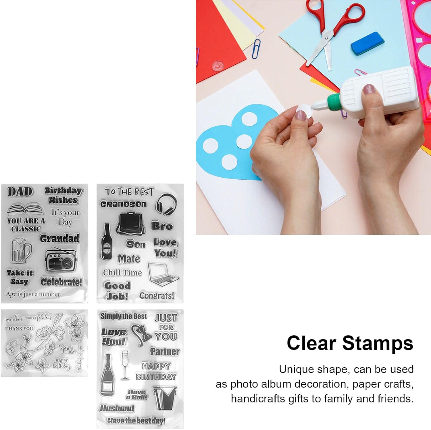 [Materiale di qualità premium] Questi francobolli chiari sono realizzati con materiale TPR di alto grado che offre ogni volta impressioni nitide e pulite. Il materiale durevole ma flessibile mantiene la sua forma attraverso un uso ripetuto pur essendo completamente sicuro e non tossico. A differenza delle alternative più economiche, i nostri francobolli non si rompono o si deteriorano, garantendo prestazioni di lunga durata per tutti i tuoi progetti di creazione. [Design riutilizzabile] Sperimenta la comodità dei francobolli che si attaccano ripetutamente senza perdere l'adesione. Il materiale appositamente formulato consente di riposizionare i francobolli più volte mantenendo una perfetta chiarezza. Questa caratteristica ecologica li rende perfetti per gli artigiani che apprezzano la sostenibilità senza compromettere la qualità o le prestazioni. [Applicazioni versatili] scatenano la tua creatività con francobolli che funzionano perfettamente per la produzione di carte, lo scrapbooking, il journaling e vari mestieri di carta. Il design trasparente consente un posizionamento preciso, rendendoli ideali per design a strati e motivi intricati. Compatibile con inchiostri, vernici e polveri in rilievo per infinite possibilità creative. [Caratteristiche intuitive] Progettate per artigiani di tutti i livelli di abilità, questi francobolli presentano un semplice processo di applicazione con risultati eccellenti. La superficie chiara ti consente di vedere esattamente dove stai timbrando, eliminando le congetture. Sono facili da pulire e mantenere, assicurandosi che rimangono in perfette condizioni per il tuo prossimo progetto. [Set di crafting completo] Questo set di 4 pezzi fornisce tutto ciò che serve per iniziare a creare bellissimi disegni fatti a mano immediatamente. Ogni francobollo offre motivi unici perfetti per decorare carte, inviti, buste e album fotografici. La ponderata selezione di design rende questo set un eccellente per gli appassionati di artigianato e i principianti.