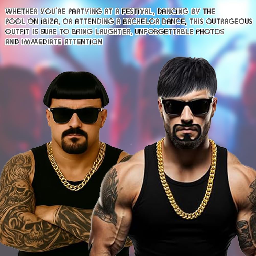 🌟 Diventa il capo finale della festa: gira la testa e ruba i riflettori con questo divertente set di accessori Ibiza Rave Boss - il kit di costumi definitivo per le vacanze dei ragazzi, i festival e le cerivoli! 🌟 DETTAGLI DEL COSTIMO: Include una parrucca corta in ciotola nera - potrebbe essere necessario tagliare per il look desiderato, capra audace, catena d'oro grossa e un paio di occhiali da sole neri - tutto il necessario per completare il leggendario look. 🌟 PERFETTO PER STAG DOS E FESTIVALI - Porta le battute e ruba lo spettacolo in qualsiasi evento questo costume è fatto per il massimo di risate e momenti indimenticabili 🌟 PARTY-READY LOOK: Che tu stia facendo un festival o ballando in piscina a Ibiza, questo set di accessori ti regala risate istantanee e foto indimenticabili. 🌟 REGALO PERFETTO: Questo kit di costumi Hip Hop è favorito da persone che amano lo stile retrò, gli accessori di costume degli anni 80 e 90. Abbastanza per le vostre esigenze di abbigliamento hip hop, adatto per uomini, adolescenti, donne e bambini. Puoi darlo come regalo di compleanno o vacanza per i tuoi amici, famiglia e così via.