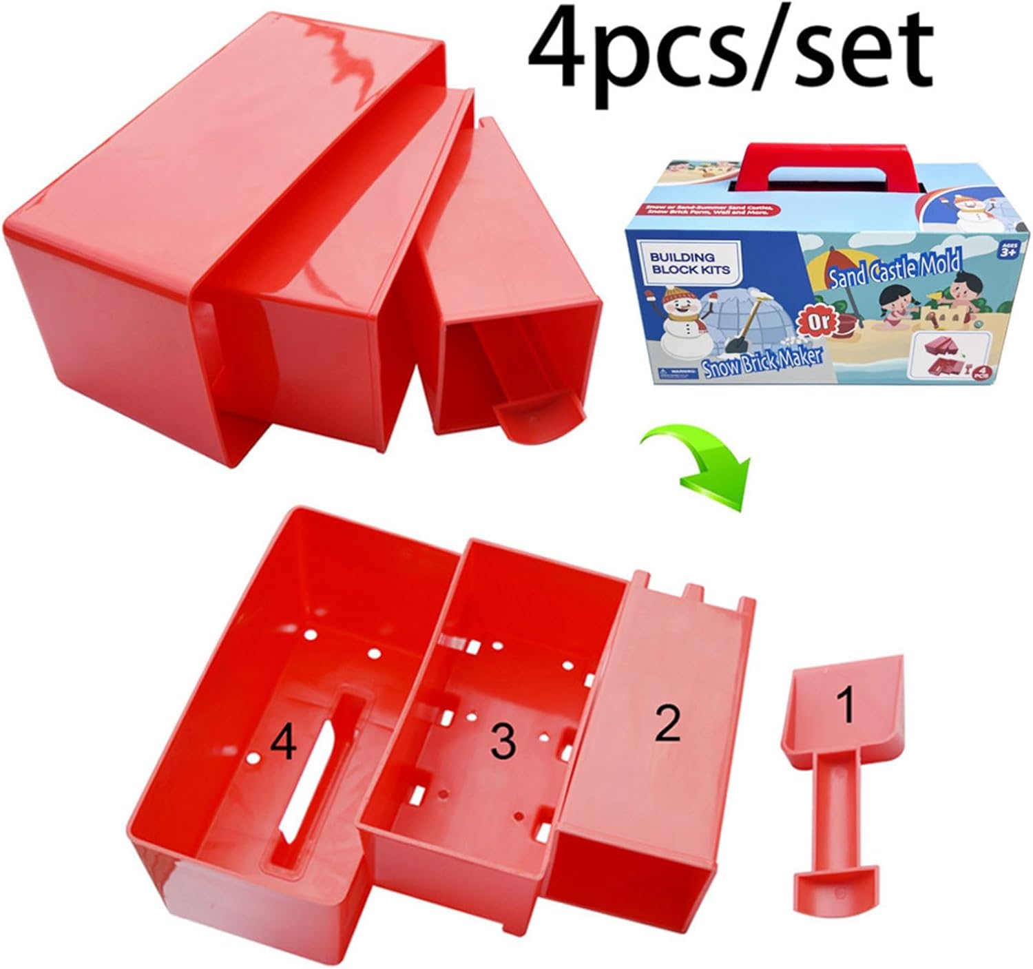 Perfetto per l'uso in cortili, case di neve o stazioni sciistiche, con cui è possibile costruire fantasiosi castelli di neve, pareti e altre strutture di neve creative. Ideale per gli appassionati di inverno di tutte le età, soprattutto per la famiglia e i bambini che amano fare attività sulla neve. Con i suoi colori vivaci e il design user-friendly, questo kit da costruzione per neve da spiaggia è perfetto per qualsiasi avventura sulla neve per garantire ore di intrattenimento e creatività. Utilizzare plastica selezionata. Questi stampi sono facili da pulire e hanno un design compatto che li rende portatili e facili da riporre, perfetti per la costruzione creativa della neve. Crea facilmente pietre di neve con il set Block Maker Set e progetta per migliorare l'inverno all'aperto per la famiglia e i bambini.