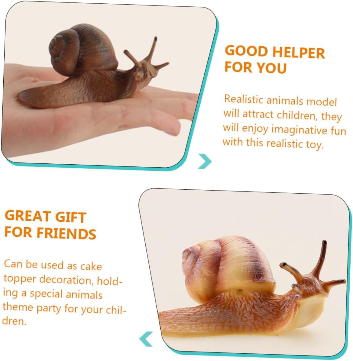 Decorazione per acquario: realistica e simulata, aiuterà i a sviluppare la loro e a far conoscere loro lumache in gioco, decorazione per torta Oggetto didattico scientifico: può essere utilizzato come per compleanni e premi per , oppure come decorazione per torte e bomboniere, oggetto didattico per Modelli animali per l'istruzione: sono dotati diversi tipi lumache, supporti didattici aiutano a insegnare ai a riconoscere varie lumache, decorazioni per torte a forma animali Decorazioni per torte a forma animali: ideali per scopi educativi, giochi creativi, progetti scolastici, statue da giardino e per terrari, supporti didattici sugli animali Decorazione a forma lumaca da giardino: consente creare un'atmosfera e apprendimento e aumentare l'interesse dei per la conoscenza, statuina per decorare la torta
